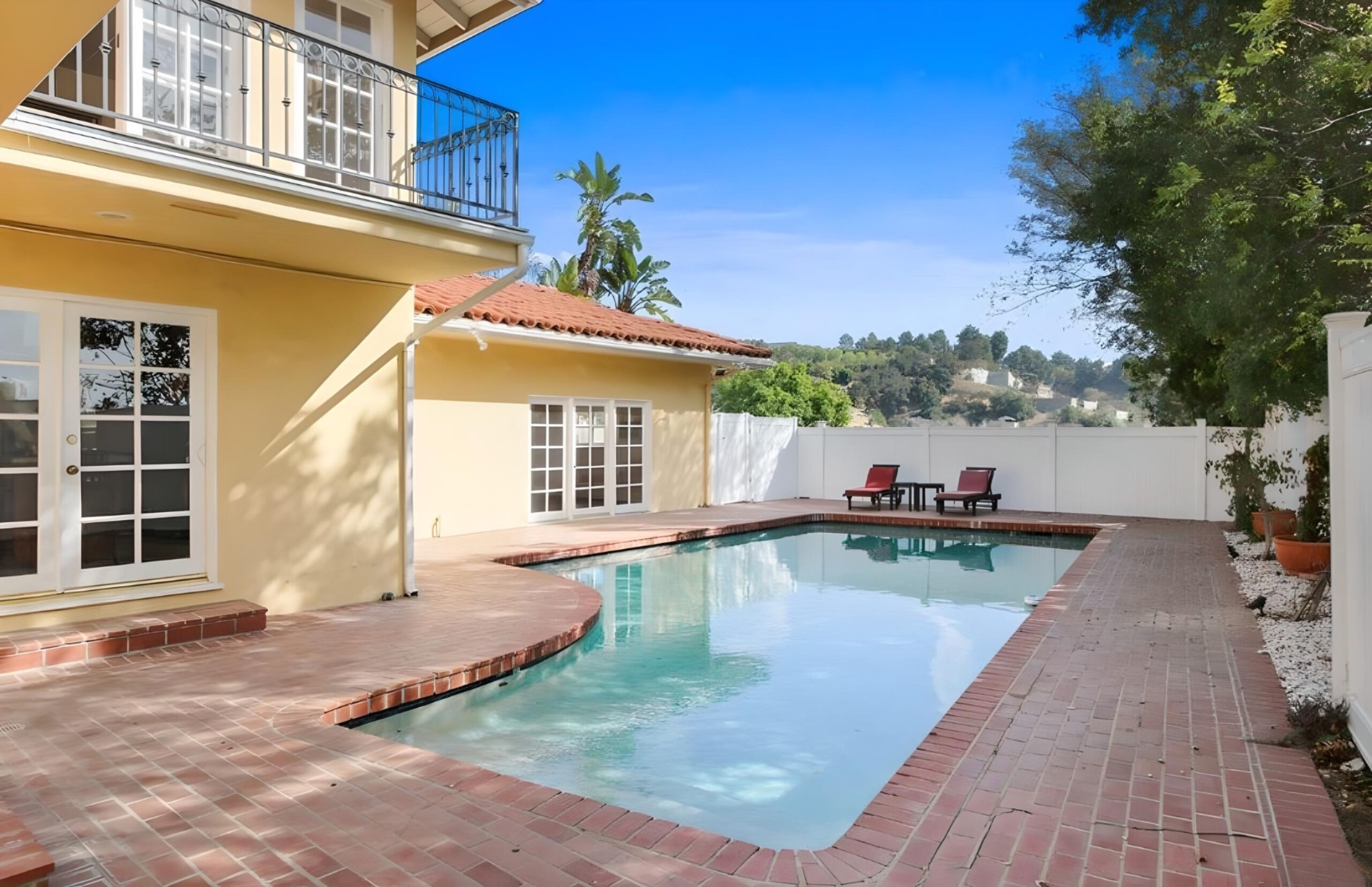 Charming Mediterranean oasis in the prestigious BHPO. Adjacent to a cul-de-sac street, this gated property offers an amazing backyard with an in ground pool, a converted detached garage space for a studio room or a gym. An open floor plan on the main floor with red oak hardwood floors and a beautiful kitchen. An additional den is included for extra room for your guest with a wet bar. Upstairs includes three bedrooms including the master suite with Juliet balcony overlooking the canyon views. The backyard includes an inviting gazebo to entertain guests. Minutes away from Rodeo Drive and other attractions in Beverly Hills.