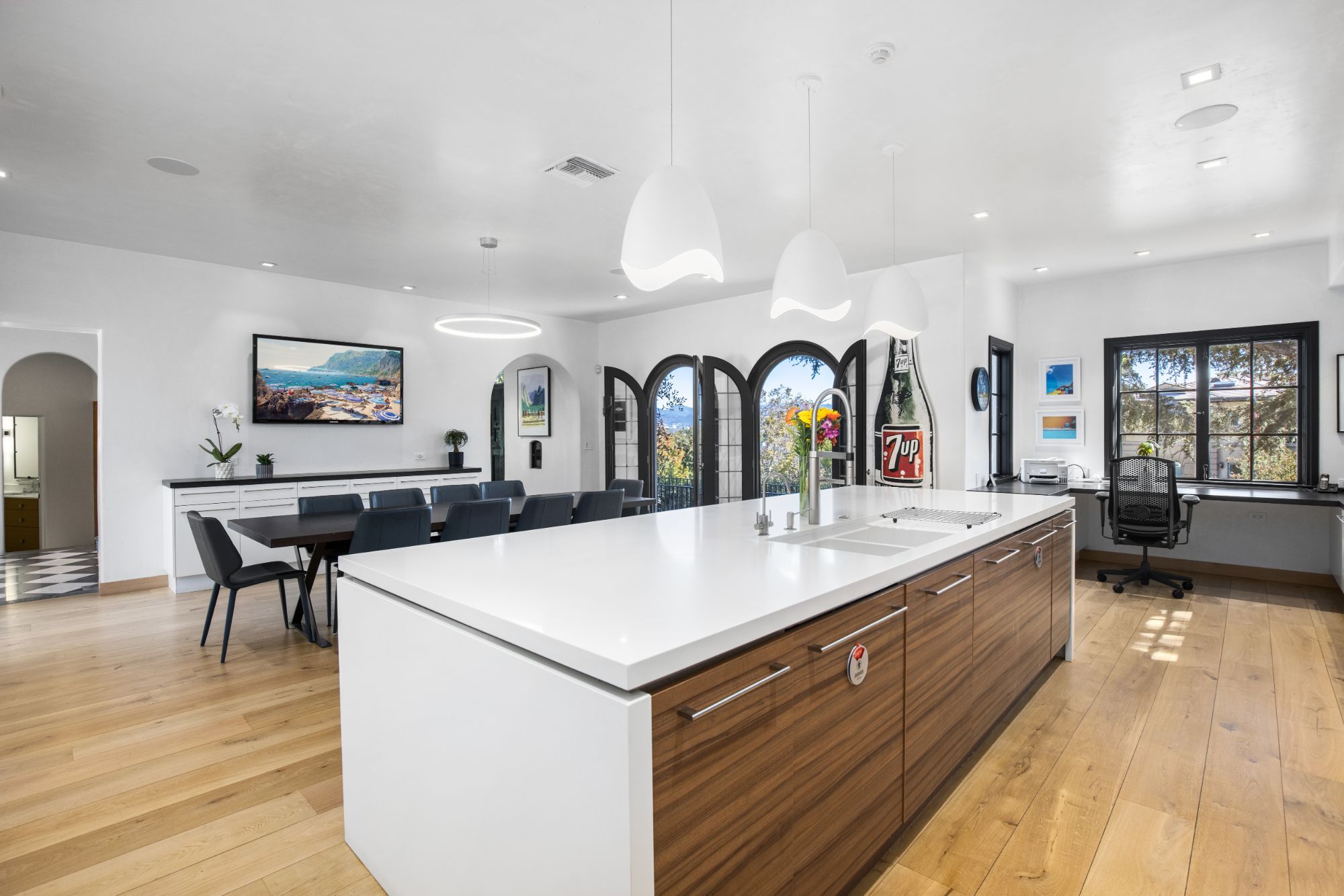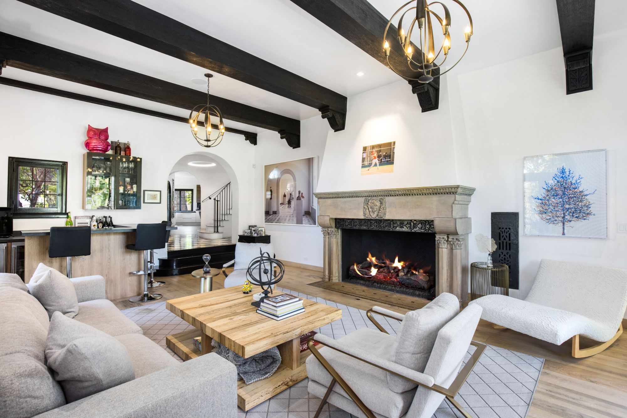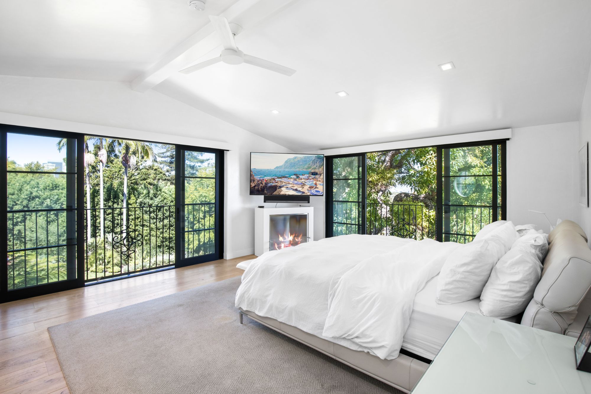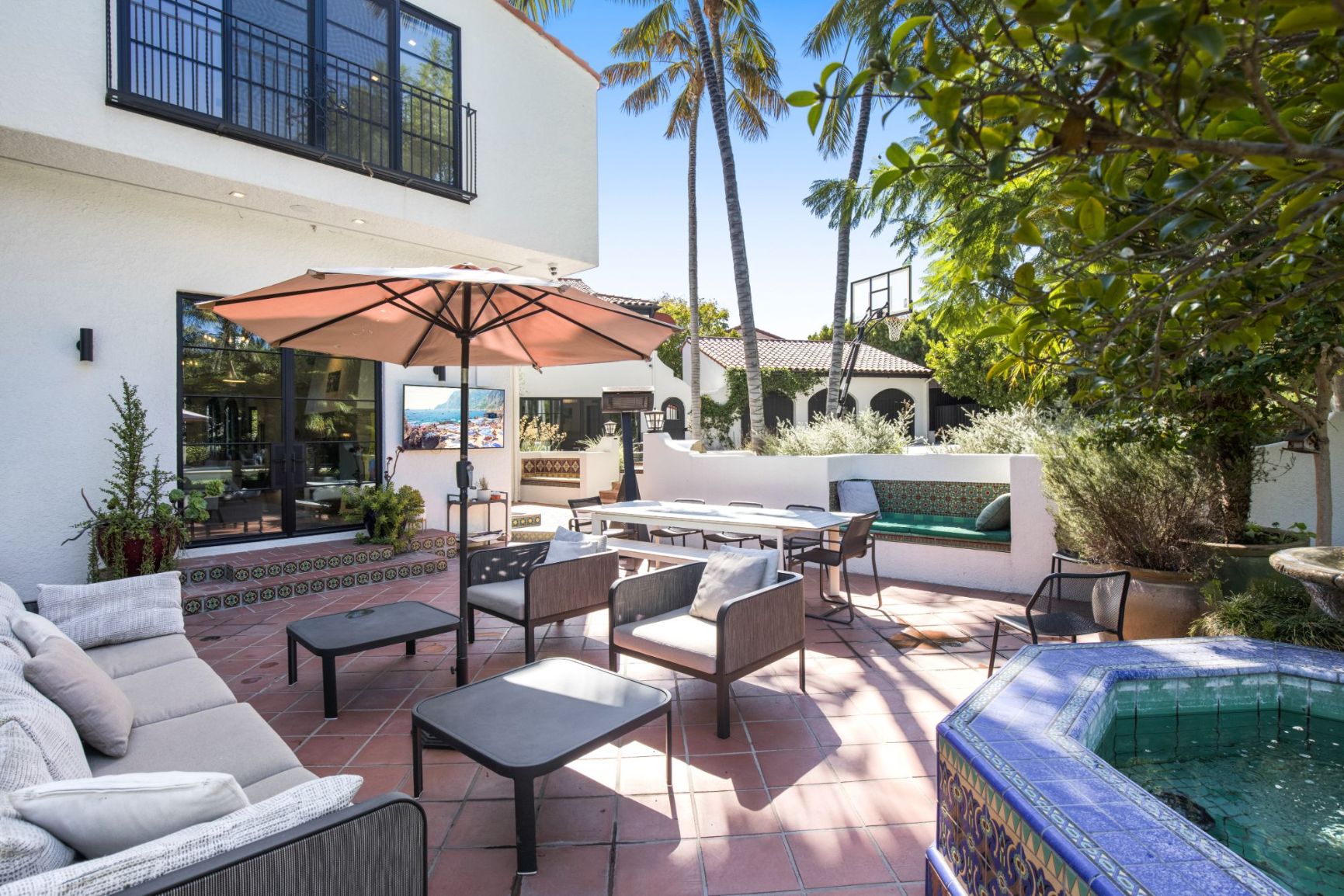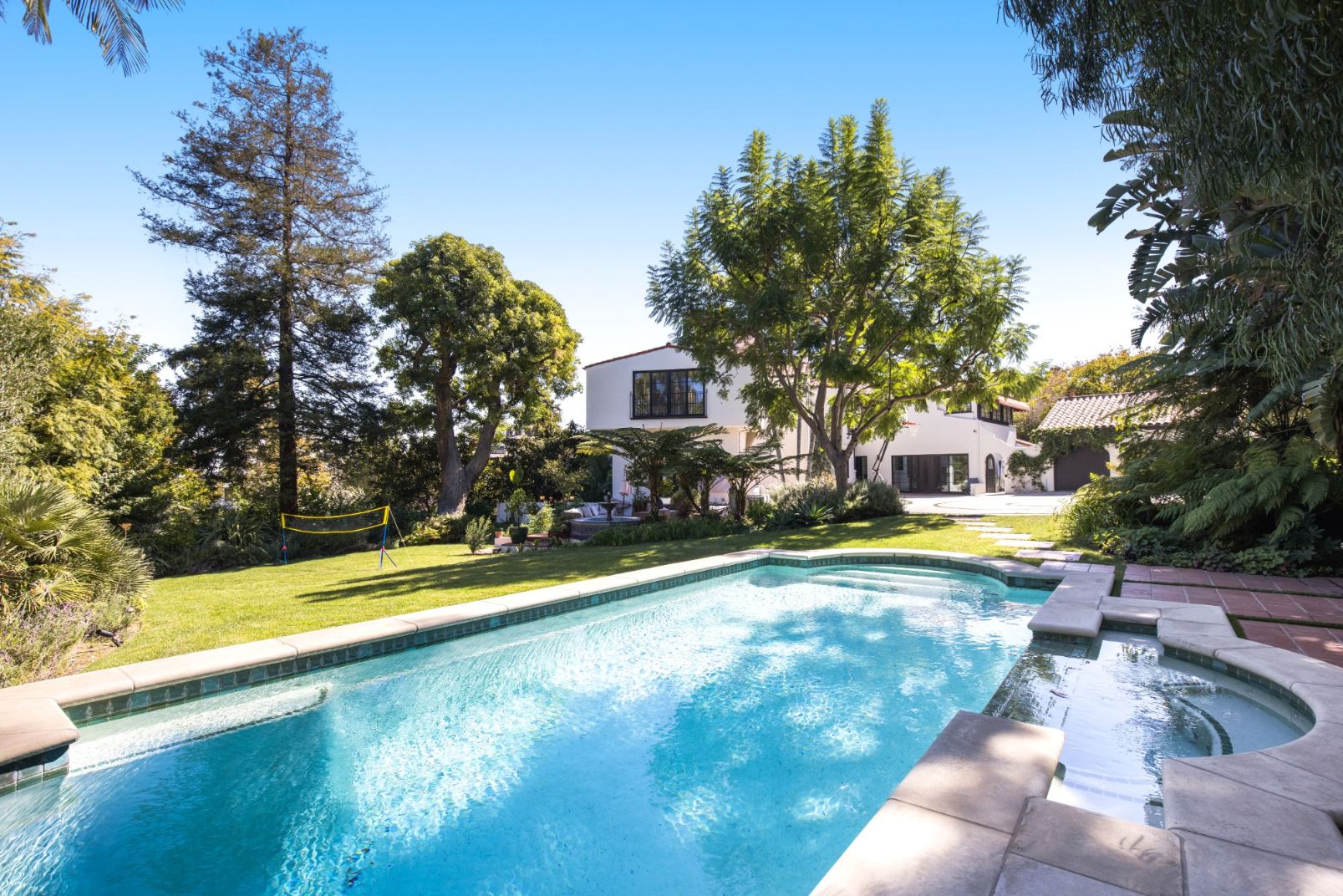 One of the largest properties in Cheviot Hills set on an oversized TRIPLE prime lot lined with palm trees, this Santa Barbara style, fully renovated Cheviot Hills estate is your own one-of-a-kind sanctuary w/ views of Dtla & the Hollywood sign and a private 8-car driveway entrance. 5 minutes from Beverly Hills, Century City & freeways. Historical significance & modern luxuries culminate in this rare pedigreed home. Gated with a large motor court, a dramatic foyer leads to sensational interiors w/ exposed beams, Venetian matte plaster walls throughout, white oak floors, wood-accented bar, cinematic fireplaces, & stunning chandeliers. The gourmet kitchen is outfitted w/ open floor plan & top-of-the-line appliances, including a Sub-Zero fridge, tile works & large windows for natural light. Large steel-cased windows unveil a resort-like outdoor entertaining oasis with expansive grassy yard, mature trees, pool/spa, & lounge areas. Upstairs features 4 en-suite bedrooms w/ sweeping views of the mountains to the city. The primary suite features a luxurious home-spa w/ heated bathroom floors & a sizable soaking tub facing the verdant vista. Large basement w/ bed, bath, & washrooms. The guest unit can be made into a perfect home office or gym. An opportunity to own a home this caliber rarely comes to the market & wont last long.