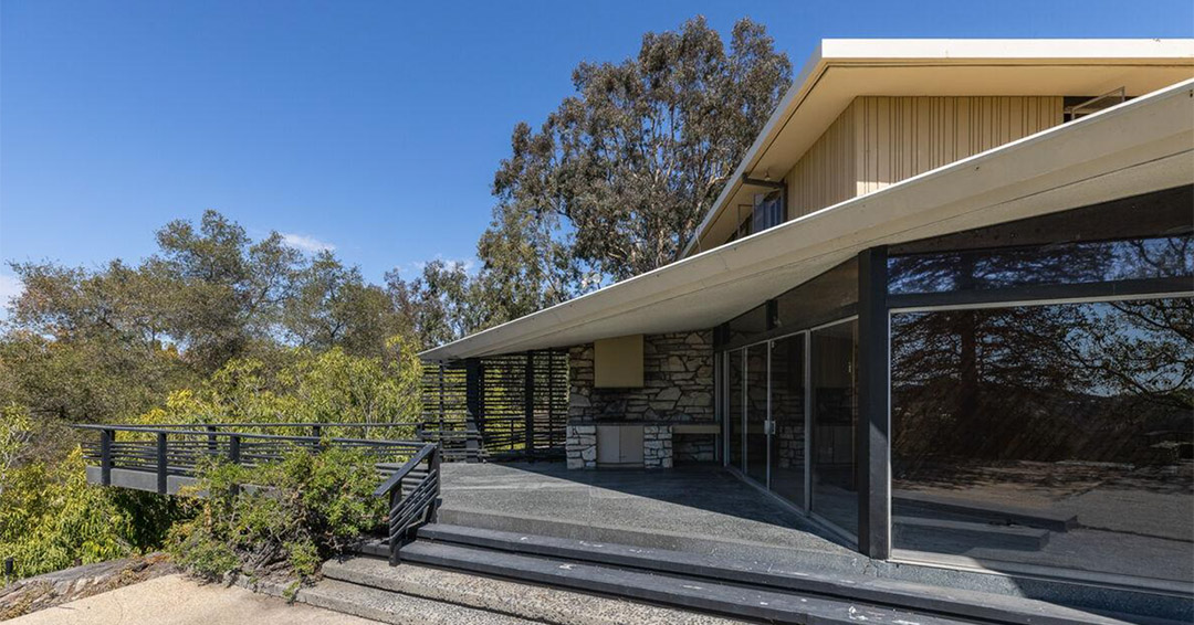 Perched atop a private 2.9-acre hillside with expansive views, the former estate of legendary Hollywood actor by renowned architect William S. Beckett offers rare and incredible restoration opportunity. The multi-structure compound accessed via a gated, long winding driveway, beckons endless possibilities. The main house, reminiscent of Neutra and Lautner, boasts sweeping extended rooflines. The primary suite wing features breathtaking views and a two-story private library and lounge. A separate study opens to the cantilevered black terrazzo deck. The three-story creative studio/guest house, is equipped with a professional screening room, additional bedroom/office, an elevator, clubhouse, and spa area with massive viewing decks and terraces overlooking the tennis court. Beyond the enchanting estate, a private gate lends access to Franklin Canyon trails. This is your chance to restore this legendary pedigree property - plans available upon request.