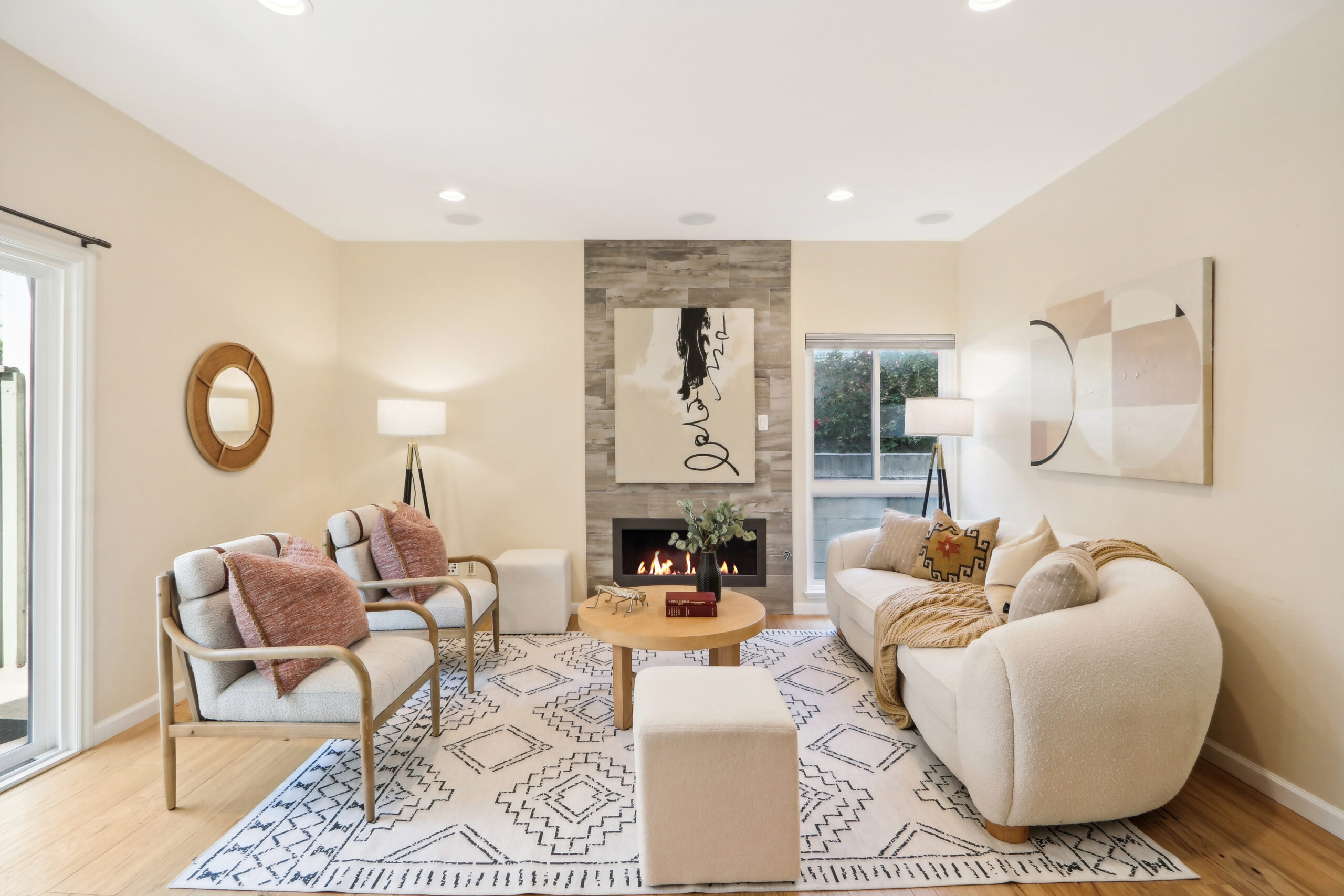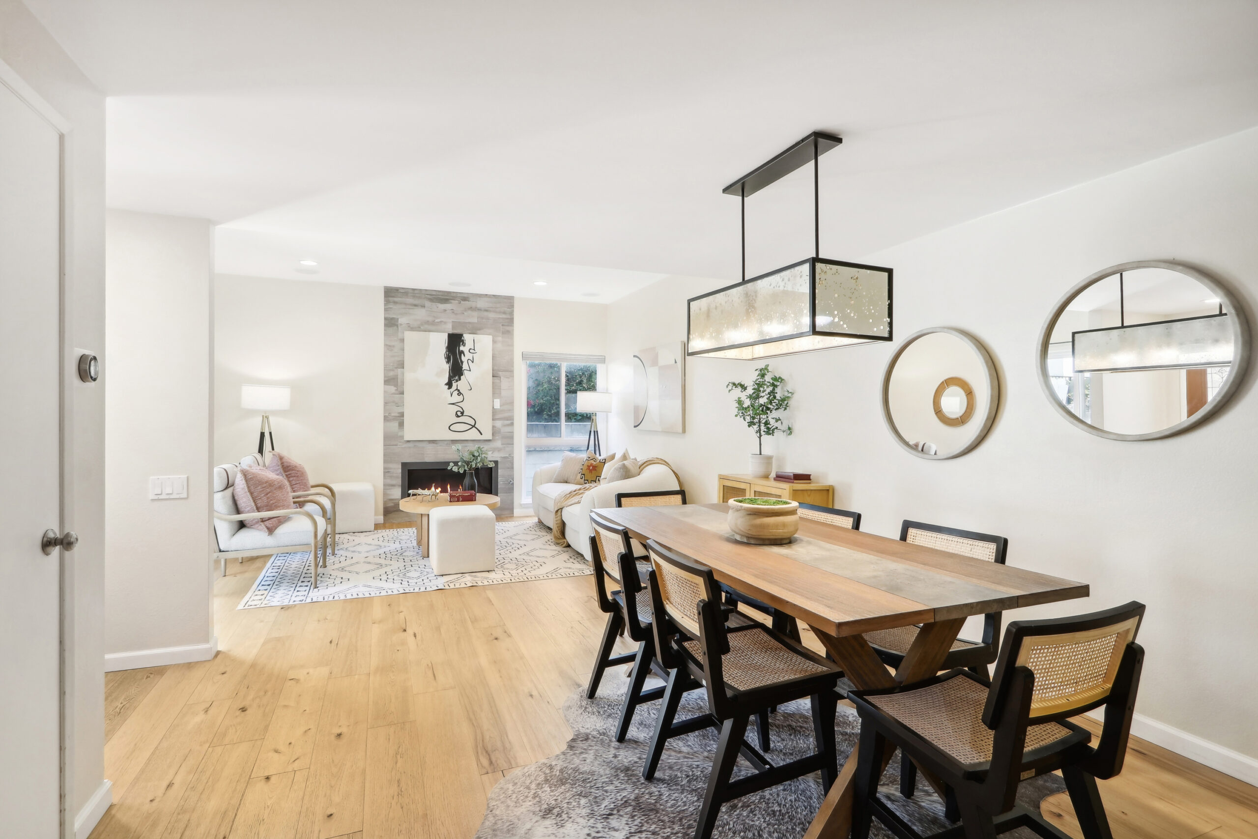 This beautifully remodeled 3-bedroom end-unit townhome is located in the desirable Lincoln Middle School district. The cozy kitchen is equipped with a Thermador stove, ample counter space, and flows effortlessly into the main living area, which features hardwood floors and a built-in home entertainment system. A convenient half bath is also located on the main floor. Enjoy the warmth of a modern gas fireplace along with central air and heating for year-round comfort. Upstairs, you ll find a dedicated washer and dryer area, two additional bedrooms, and the expansive master suite with high ceilings and a walk-in closet. The private patio provides a peaceful outdoor retreat. The home includes two side-by-side parking spaces and a storage locker in the gated parking garage. Conveniently situated within walking distance to Bristol Farms, Erewhon, Douglas Park, and Milo & Olive.