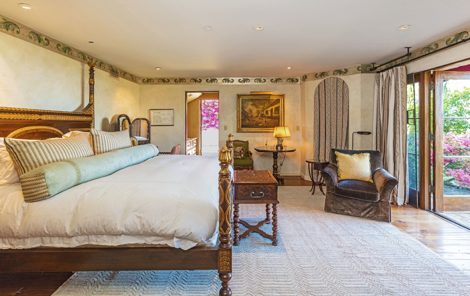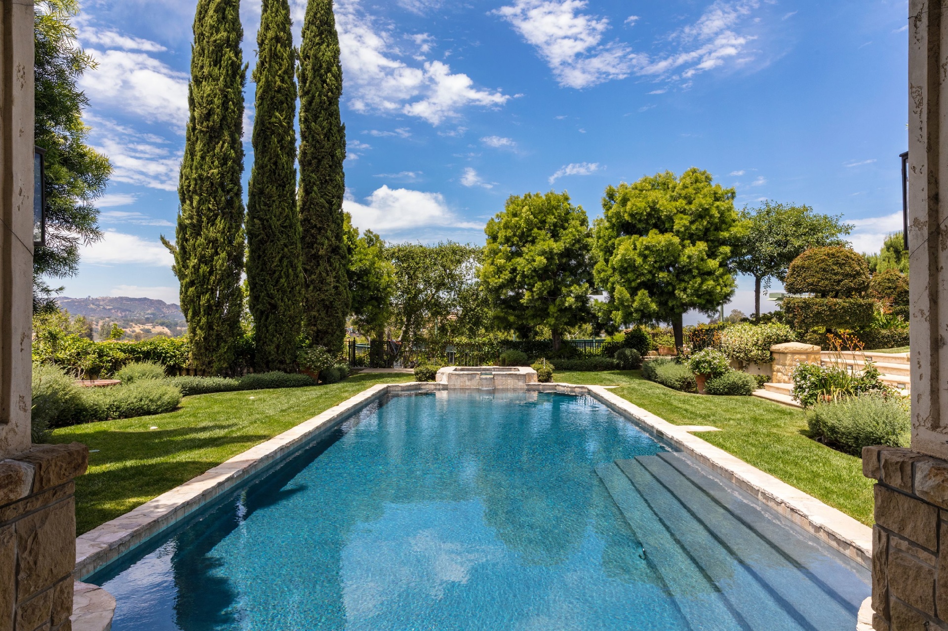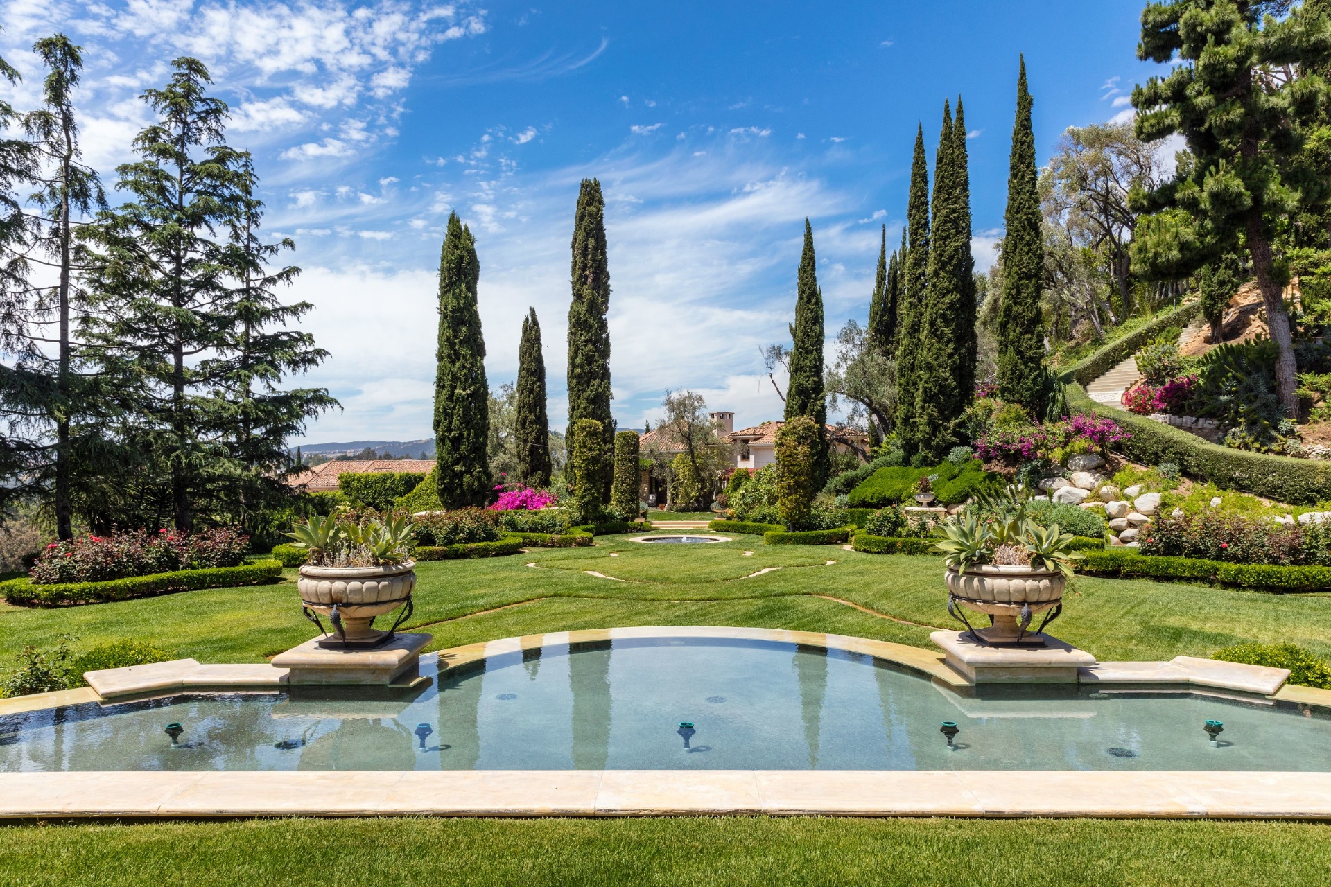 Nestled over 5 verdant acres in the hills of Bel Air rests this hidden estate, transporting all who enter to the enchanting countryside while moments from the city. Offering total privacy for the most discerning, property sits at the end of a quiet cul-de-sac within an exclusive enclave, behind gates that open to a motor court flanked by the magnificent main house & cascading water feature/upper pavilion. The extensive grounds, comprising of 2 legal parcels (each 2+ acres w/separate APNs), encompasses 2 detached guest houses (1,000 & 3,000 sqft), N/S tennis court, pool cabana & lush expanses of lawns, gardens & paths leading to secreted troves w/soaring views. The main dwelling, w/high ceilings and bright, light-filled spaces, is perfectly proportioned to accommodate large-scale entertaining and nurture harmony in everyday living. A sense of warmth pervades throughout, complemented by rich detailing & panoramic views while offering all the amenities of a premiere, first-class estate.