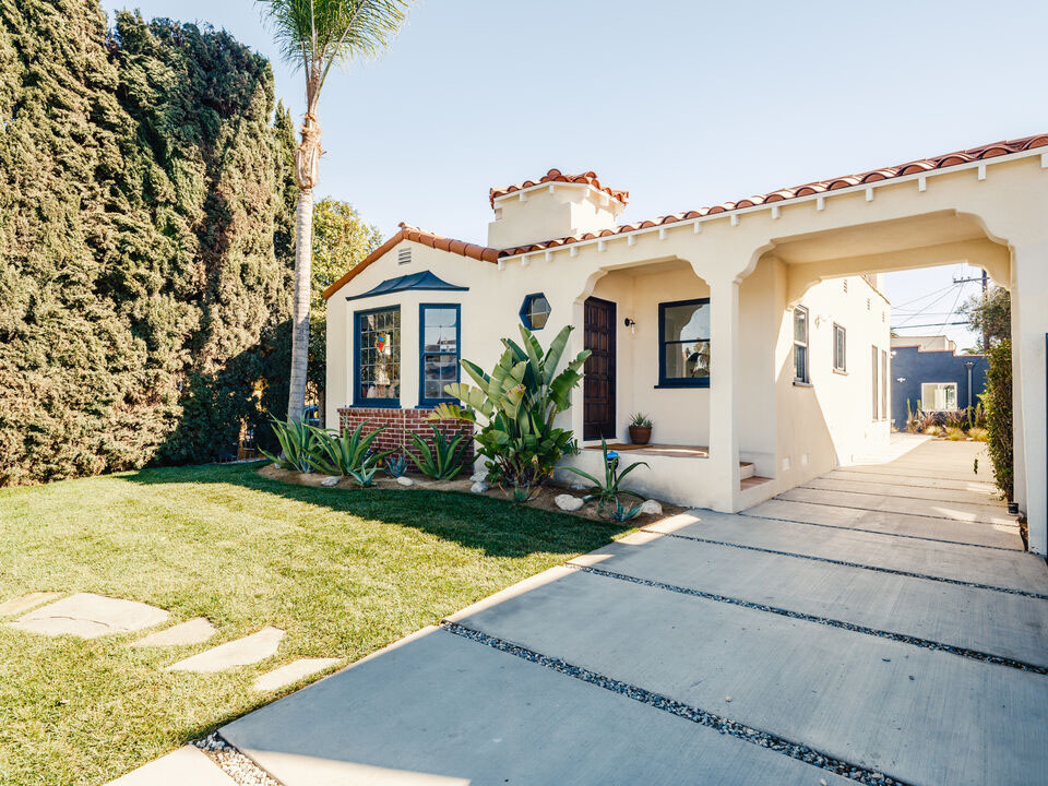 Impeccable Spanish retreat nestled in highly sought after West Adams, brimming with classic details and masterfully renovated by boutique rehab firm Marc Sid, bringing new life and spectacular updates to this breathtaking home. Beyond a private gated entry and sprawling front lawn, a Saltillo tile patio welcomes you into a bright sun-soaked living room with original stained glass bay window. Handsome oak floors lead you into the lovely dining area and newly updated chef's kitchen with Bosch and Fisher & Paykel appliances. Main home features 3 bedrooms + 2 fully renovated bathrooms including a dreamy primary suite with vaulted ceilings, spa-like bath, track ladder leading up to a roomy storage area and double doors opening out to a spacious covered deck. Zen yard with new dg landscaping, gravel patio perfect for dining al fresco under twinkle lights, and an array of native plantings make this drought tolerant oasis like your own Joshua Tree escape! New detached ADU with 1BR, 1BA + kitchen; perfect income opportunity, home office or guest house for in-laws! New 4-car paver driveway, automatic car gate, updated electrical, plumbing and MUCH more. Just minutes from Highly Likely Cafe, Homestate, Alta, Mizlala & many other beloved eateries and shops. Welcome home!