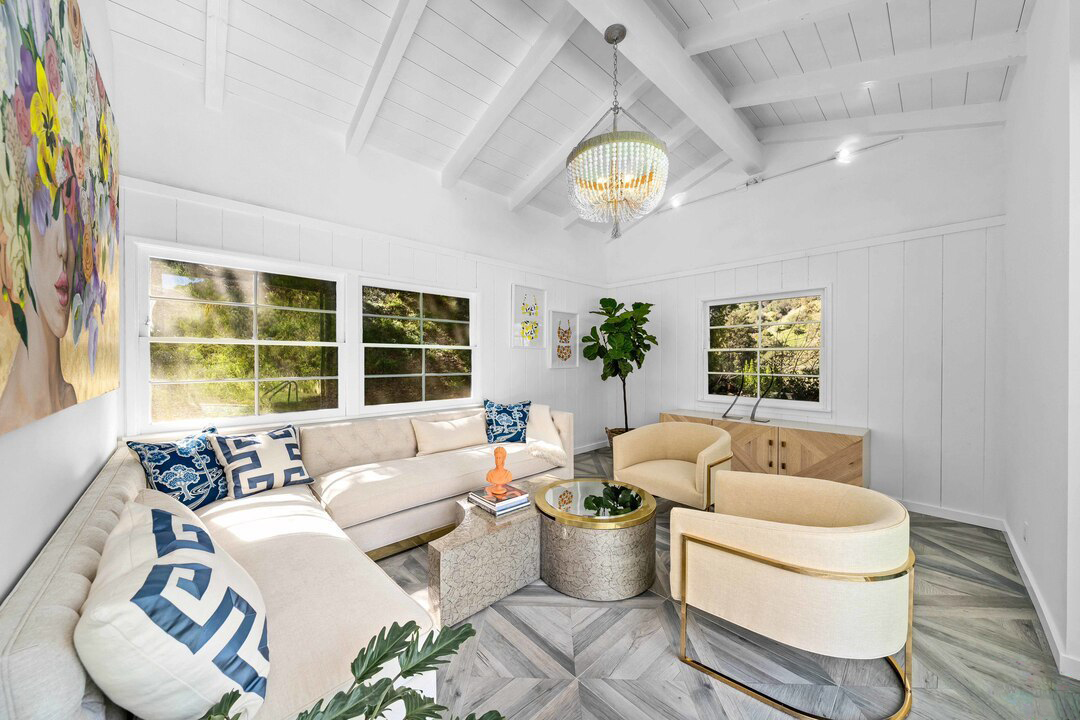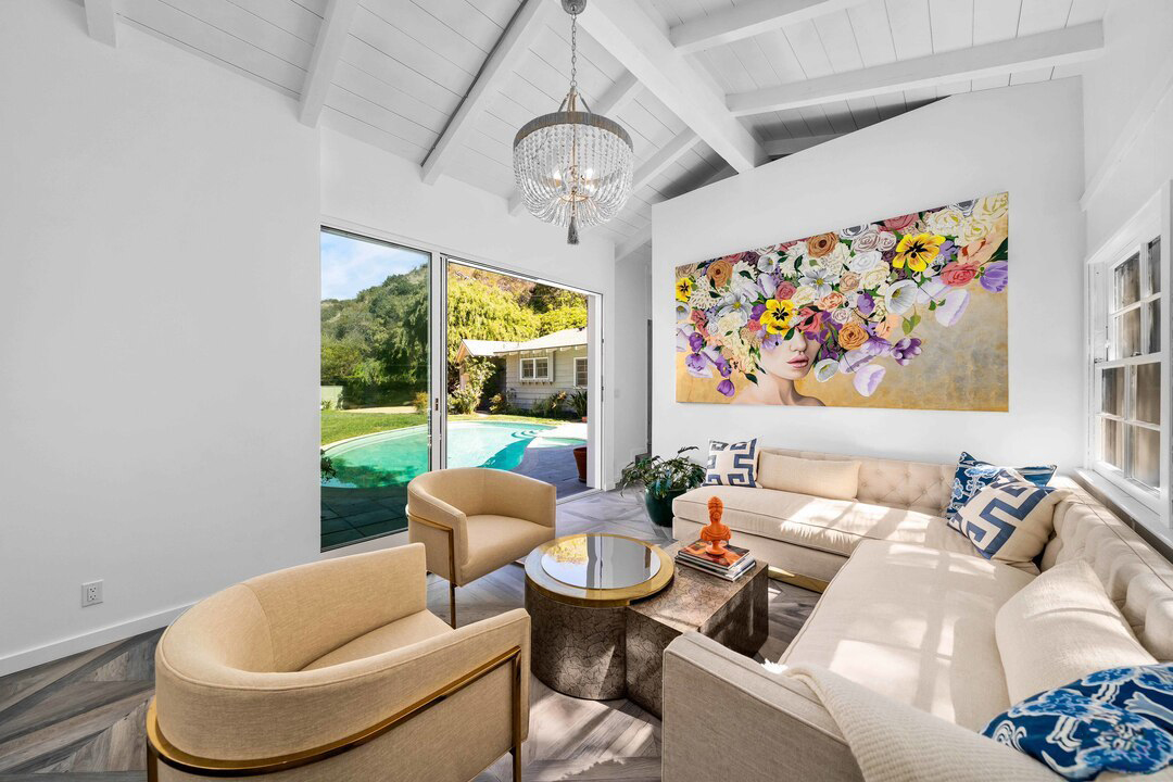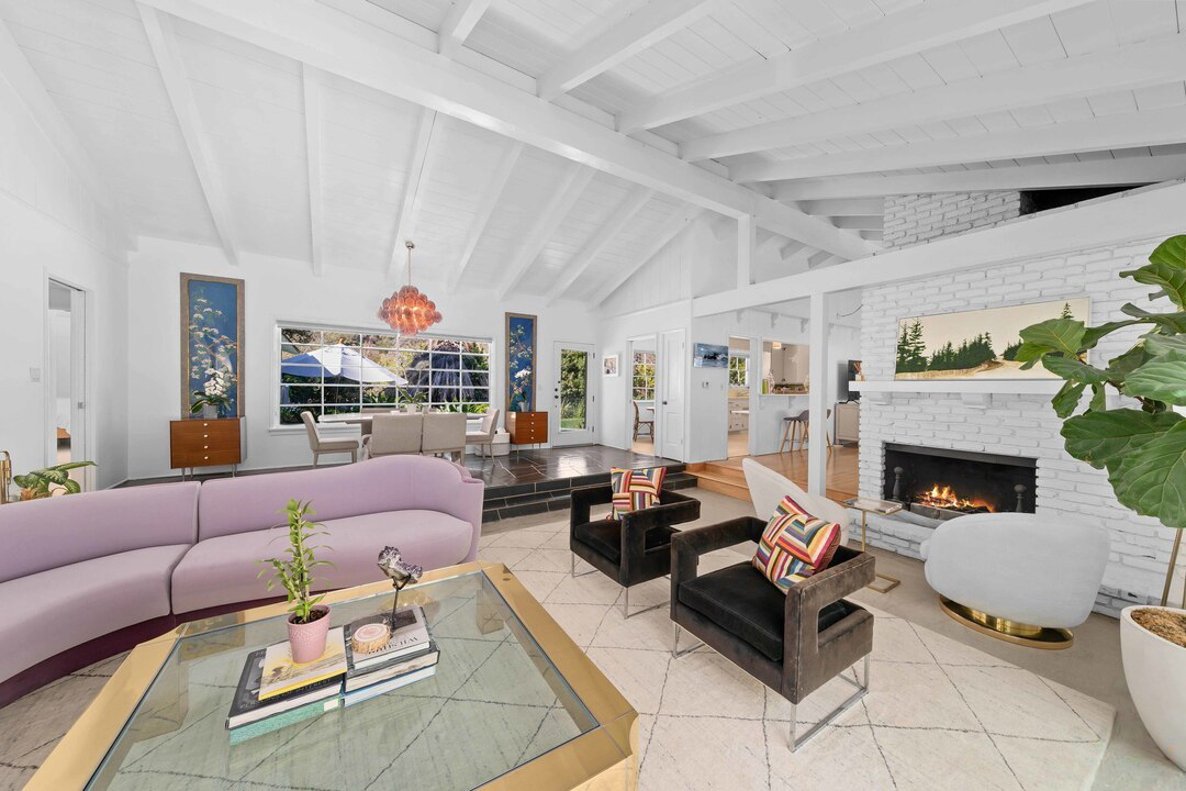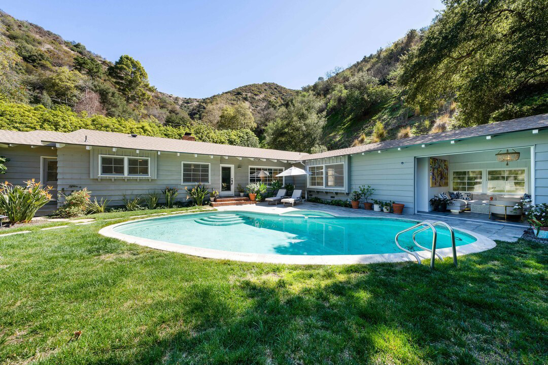 Location, location, location! A private gated single story country estate in a pastoral setting w great mid-century touches and tasteful recent updates is ready for move in. This 3 bed 2 bath home sits on 1.04 acres and delivers tremendous indoor/outdoor entertainment opportunities and large grass covered lawns. Upon entering the home you are greeted by tall vaulted ceilings, walls of glass, a two- sided fireplace and open concept living spaces. The master bedroom offers captivating views from the window seat, a beautifully updated bath area, and walk-in closet. The light-filled second bedroom enjoys a sophisticated new bath area and overlooks the rear yard area and stone steps to a private hillside respite. The third bedroom has been converted to a functional den entertaining room with glass walls that open to the inviting pool area. This story book property offers the perfect combination-a serene getaway yet just minutes to Brentwood Village, the Country Mart, Schools, hiking trails and the best of Southern California living.