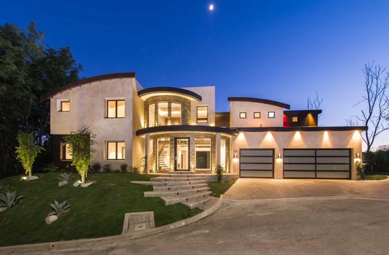 Stunning 2-story modern. Upon entrance to the 5 bedroom, 6 bathroom home, you are greeted by a commanding 20ft foyer with curved architectural staircase seamlessly flows into an expansive living room with hand-picked Douglas Fir wood vaulted ceilings, massive disappearing Fleetwood doors & wet bar accessible from the lushly landscaped backyard with canyon views. The sleek kitchen is equipped with top-of the-line Miele appliances, Scavolini Scenery Italian cabinets & waterfall center island that opens to the dining room. The main floor is complete with a lower bedroom, master suite & office. Upstairs features a master retreat & additional guest suite separated by an architectural walkway leading to a bonus entertainment room with full bar & powder room. The impressive home is pre-wired for smart-home Lutron lighting, high-end Definitive Technology speakers throughout & designer slabs & tiles by Ann Saks/Walker Zanger.