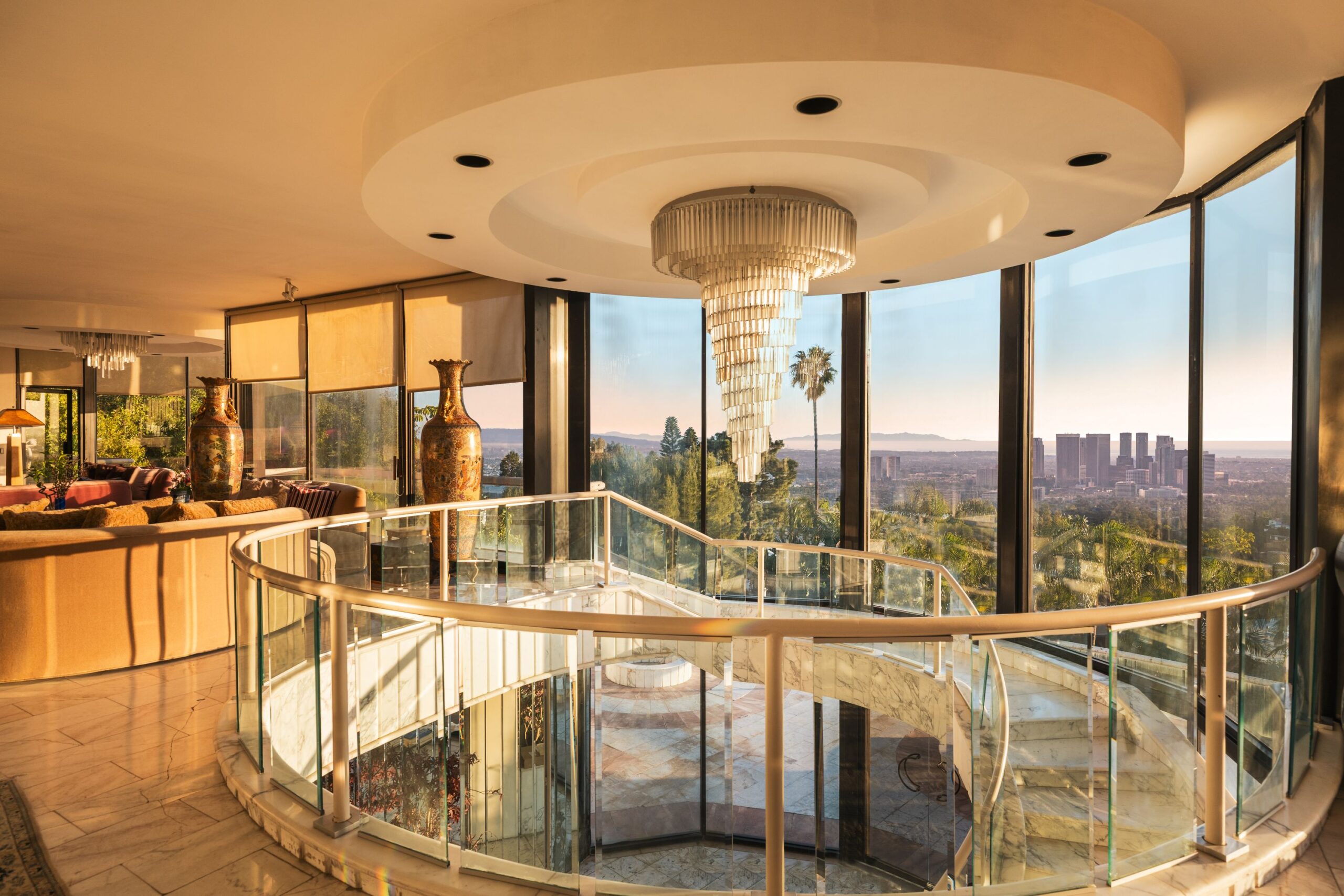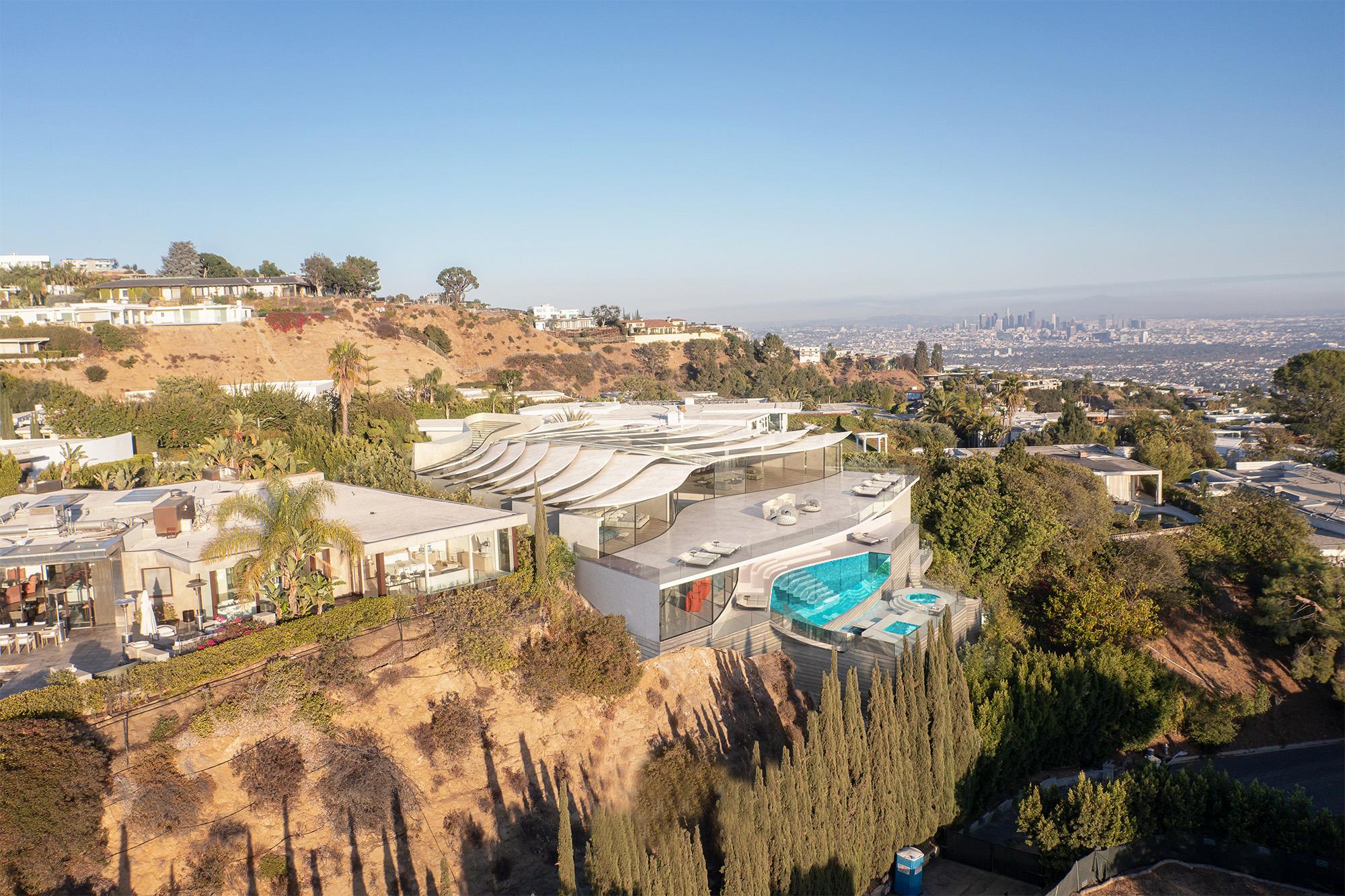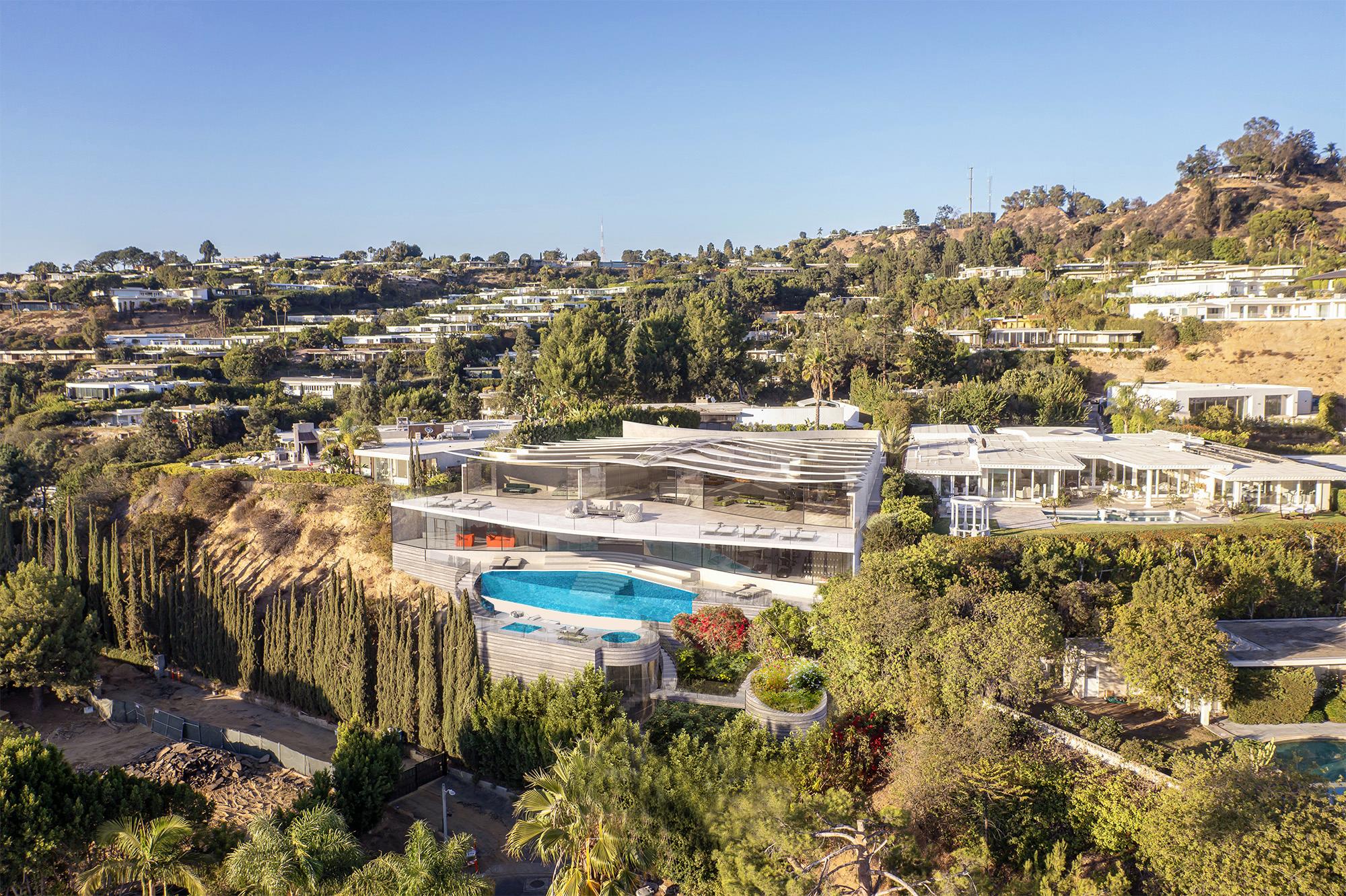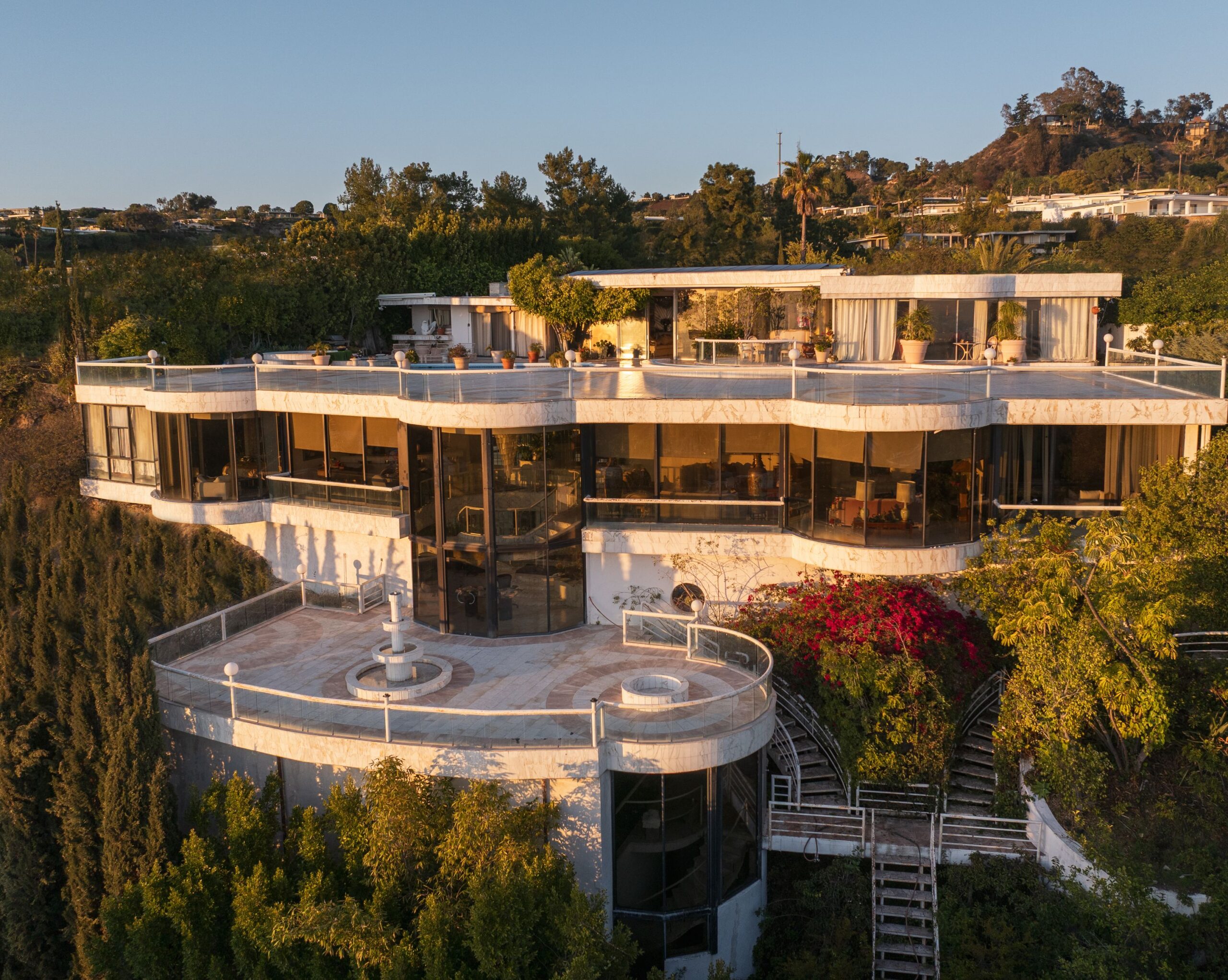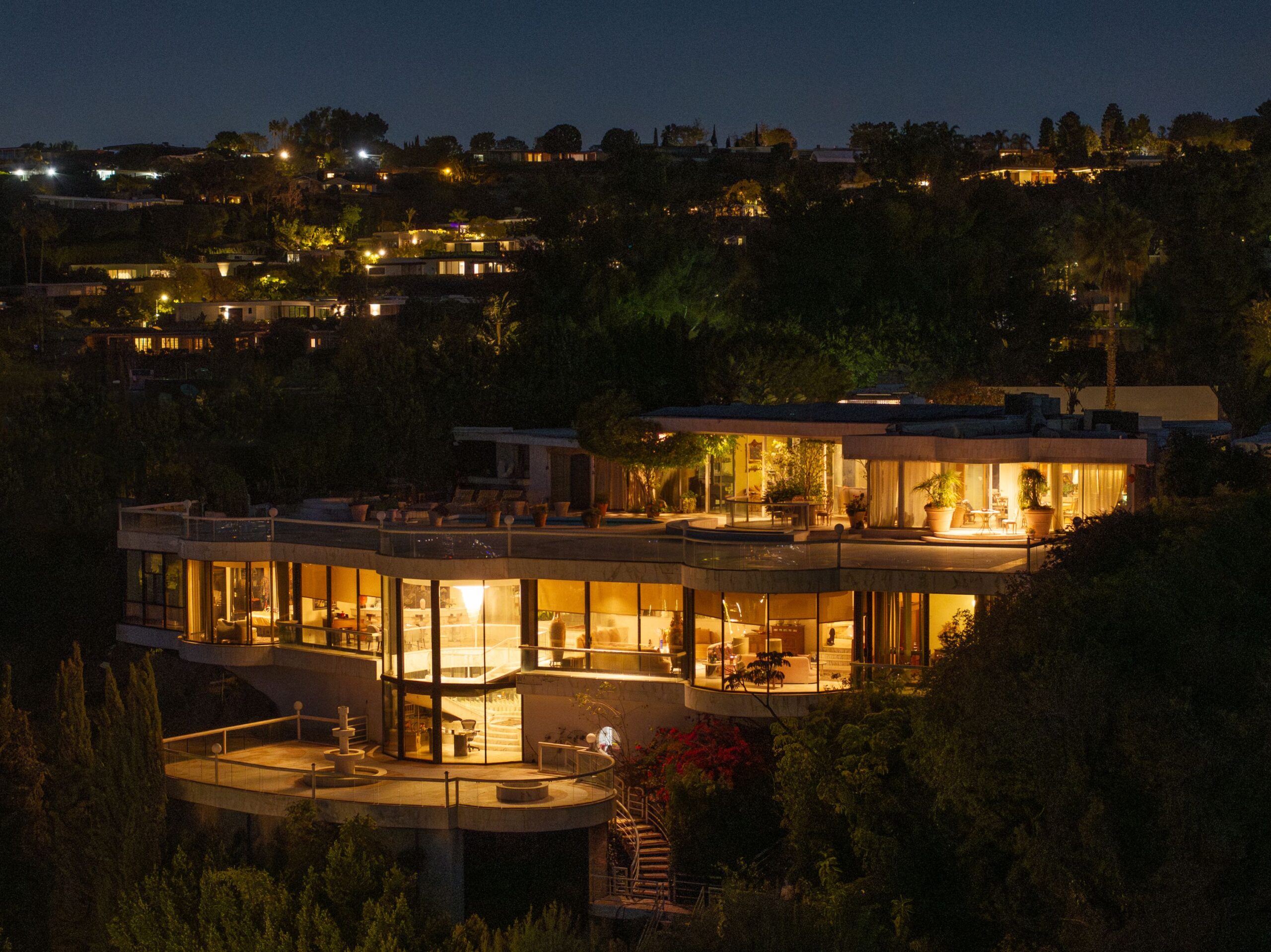 Perched on a promontory lot at the top of one of Trousdale Estates' most coveted cul-de-sacs, 305 Trousdale Place presents a rare opportunity to own a multi-level estate with breathtaking, unobstructed views from Downtown LA to the Pacific Ocean. The grandfathered-in structure built 80 feet into the hillside consists of an approximately 10,000 SF residence featuring 5 bedrooms, 7 bathrooms, expansive terraces, a pool, and an indoor racquetball court, all framed by floor-to-ceiling glass. Reflecting classic Mid-Century Modern design, the home offers an open floor plan with a spacious great room, dining area, kitchen, primary suite, guest suites, library, and a separate guest house below. Included in the sale are conceptual plans by renowned architect Michele Saee, AIA, envisioning "The Butterfly House", a striking approximately 7,990 SF design with the potential to expand to approximately 18,000 SF (subject to city approval). With its distinctive building envelope, unique lot shape, and rare terrain and topography, this property offers an unparalleled opportunity to reimagine an architectural gem on one of LA's most iconic view lots. A true trophy property for a discerning buyer or visionary developer.