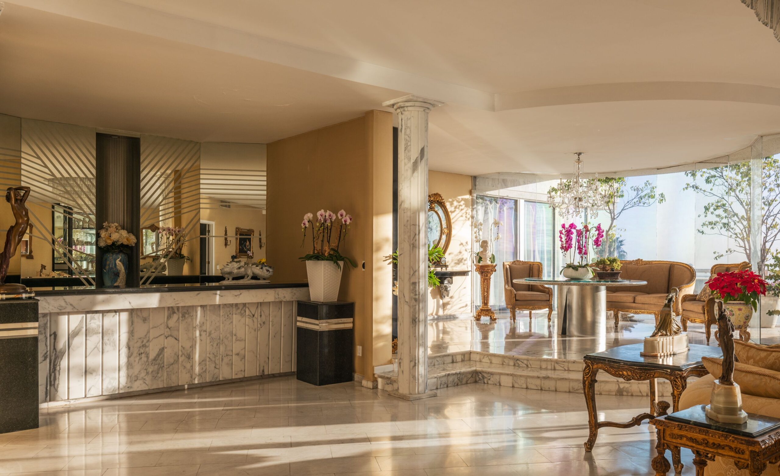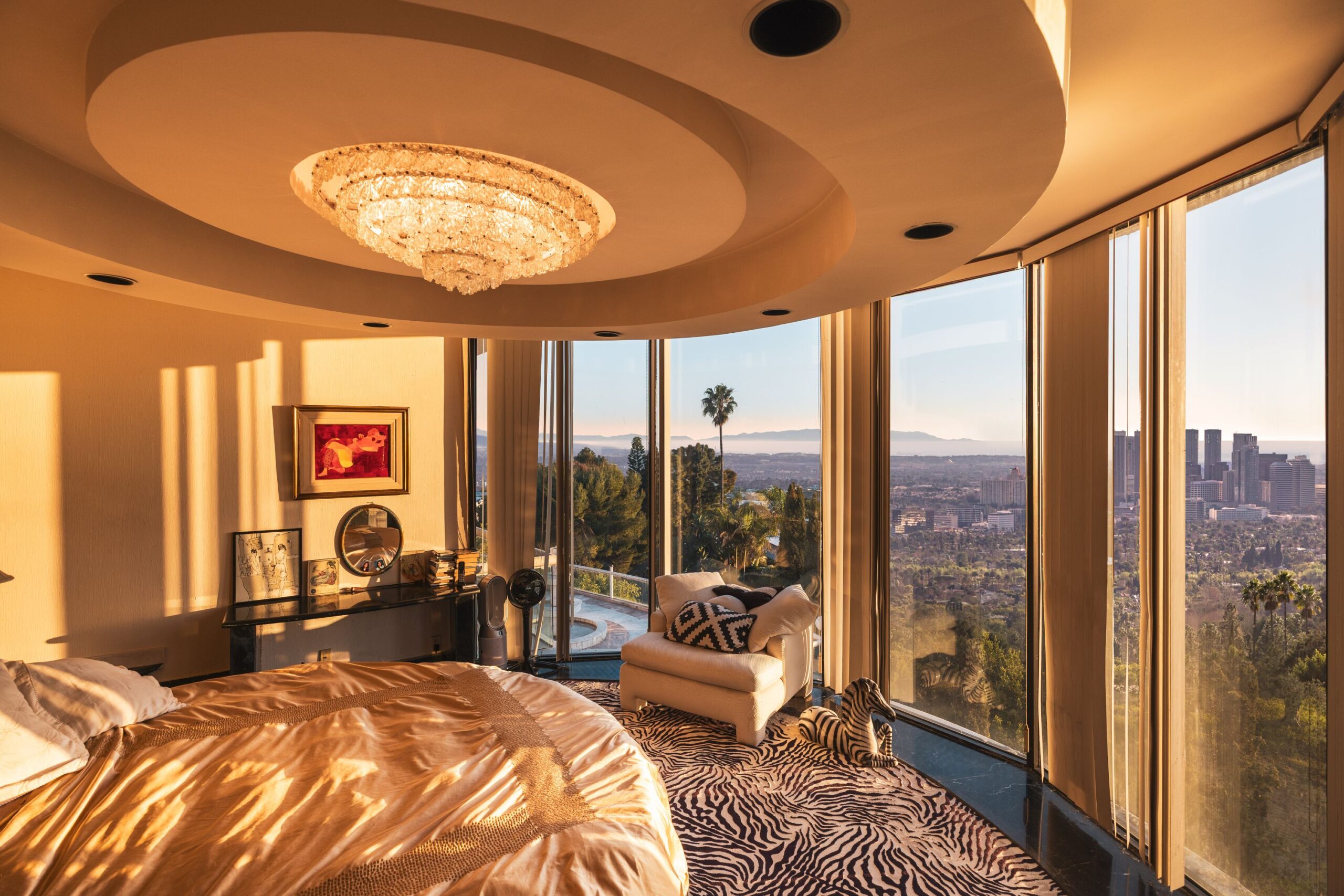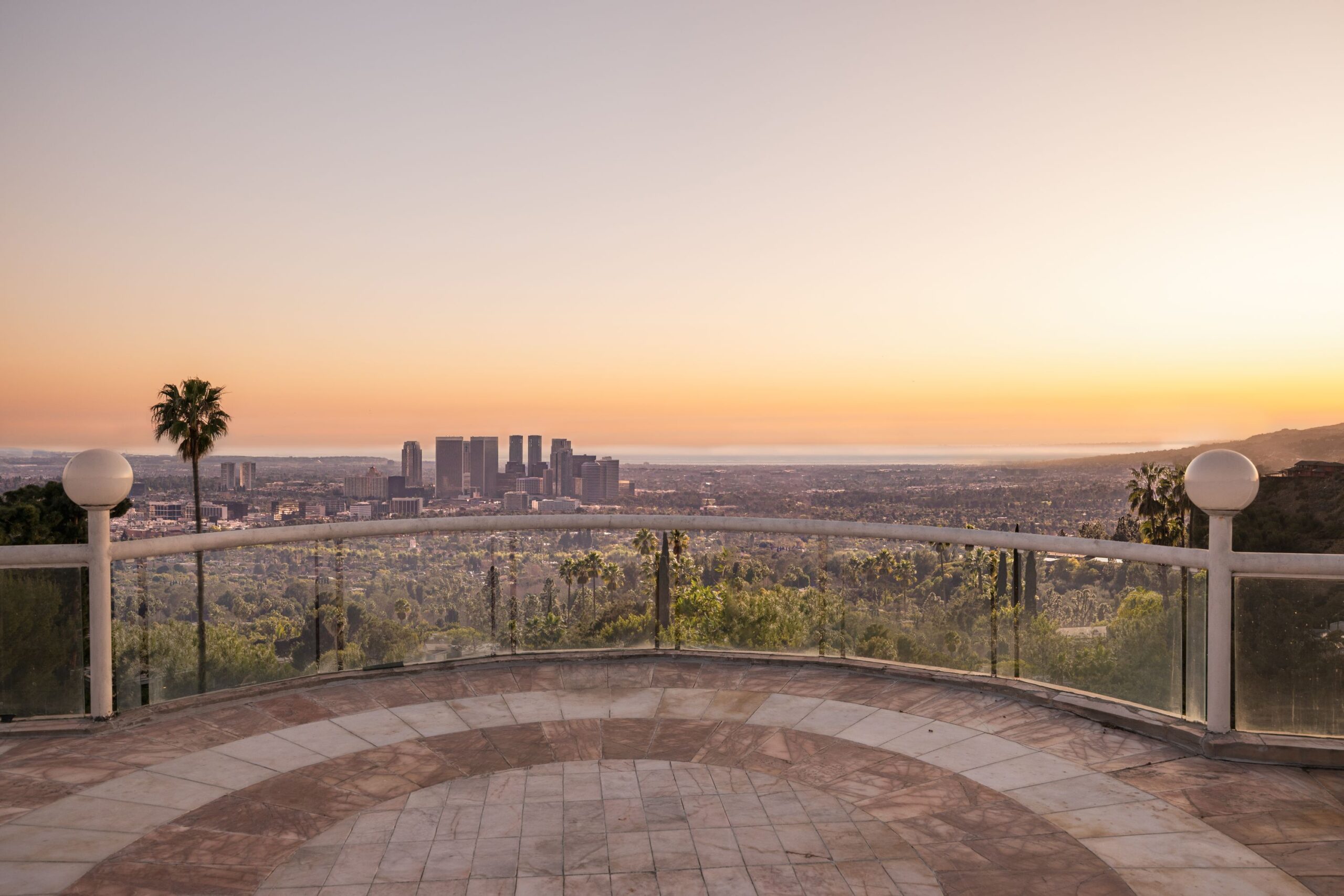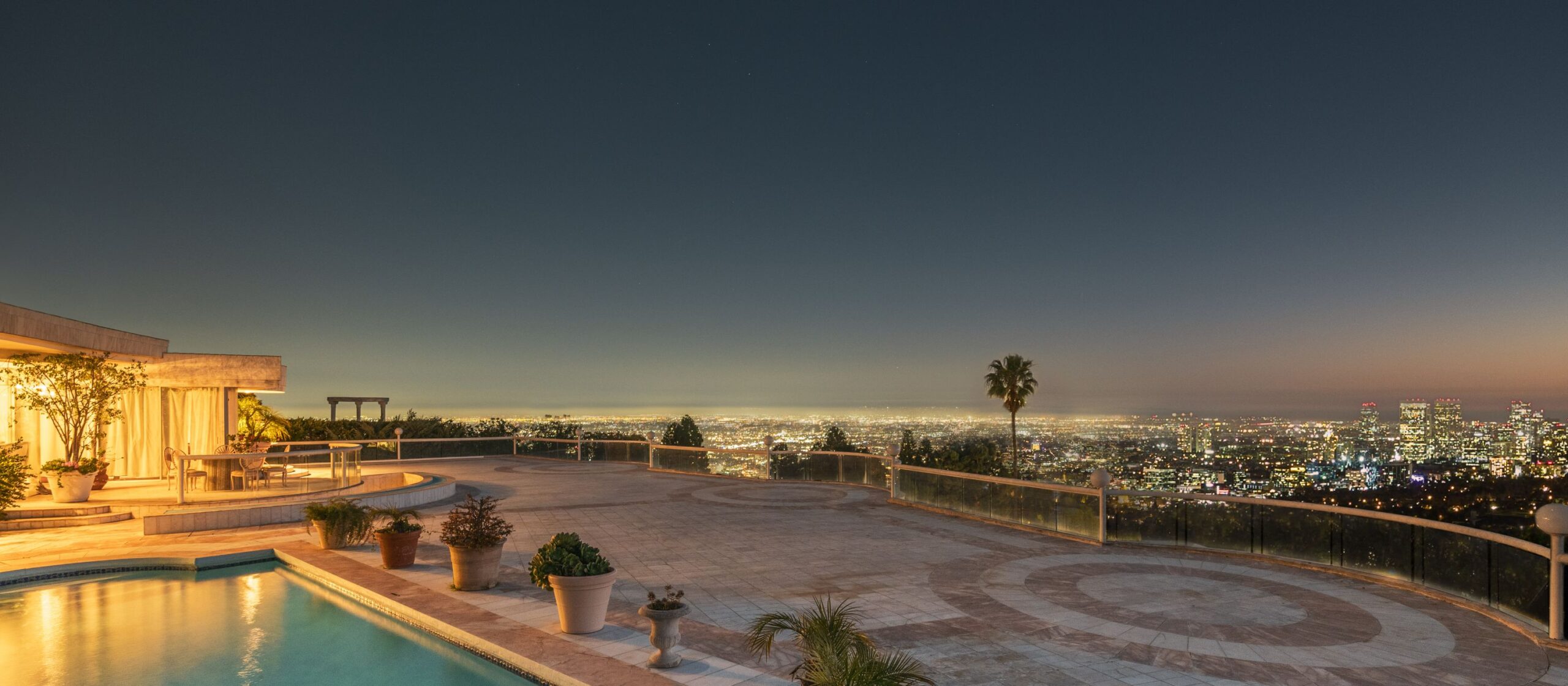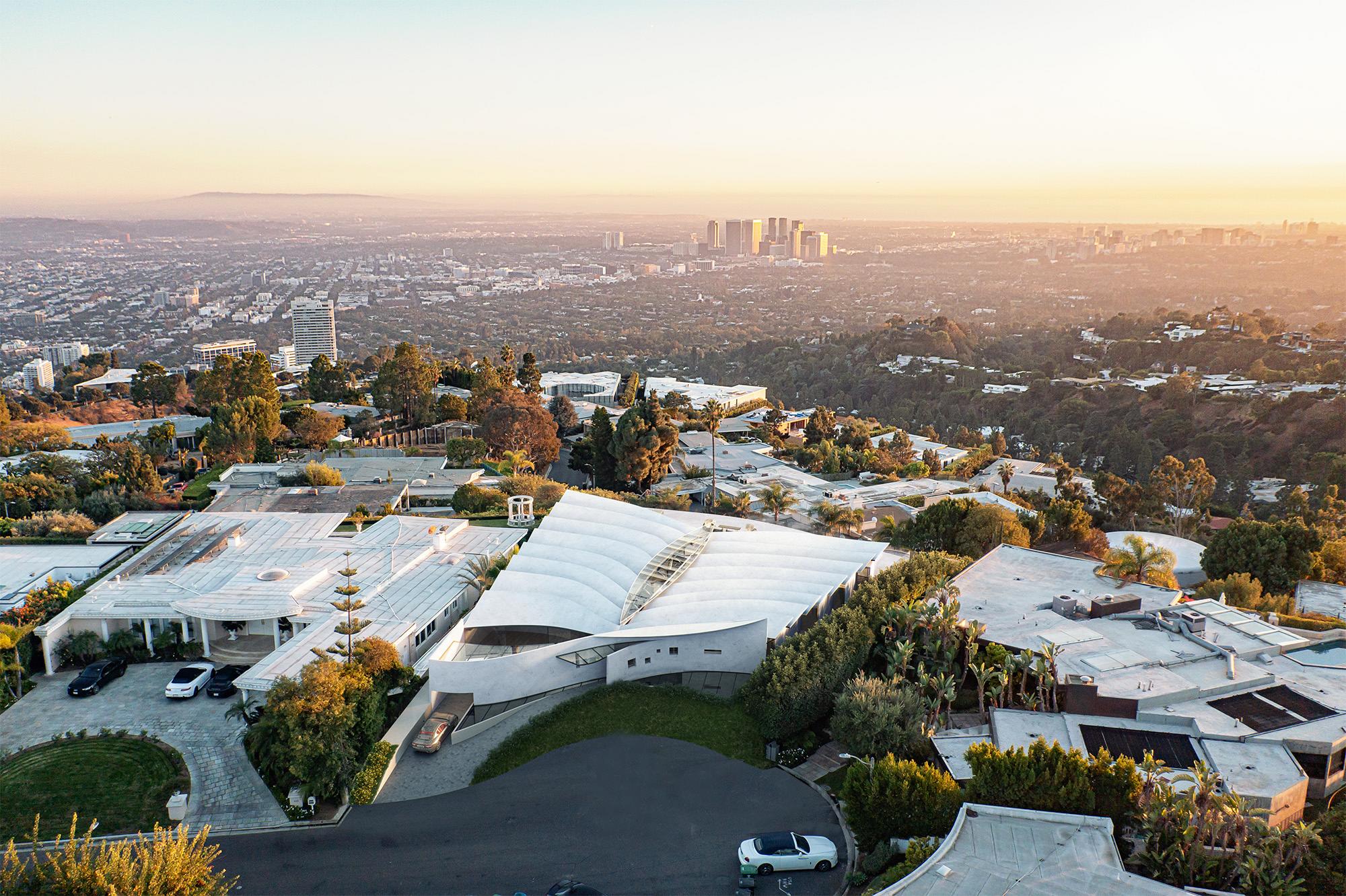 Perched on a promontory lot at the top of one of Trousdale Estates' most coveted cul-de-sacs, 305 Trousdale Place presents a rare opportunity to own a multi-level estate with breathtaking, unobstructed views from Downtown LA to the Pacific Ocean. The grandfathered-in structure built 80 feet into the hillside consists of an approximately 10,000 SF residence featuring 5 bedrooms, 7 bathrooms, expansive terraces, a pool, and an indoor racquetball court, all framed by floor-to-ceiling glass. Reflecting classic Mid-Century Modern design, the home offers an open floor plan with a spacious great room, dining area, kitchen, primary suite, guest suites, library, and a separate guest house below. Included in the sale are conceptual plans by renowned architect Michele Saee, AIA, envisioning "The Butterfly House", a striking approximately 7,990 SF design with the potential to expand to approximately 18,000 SF (subject to city approval). With its distinctive building envelope, unique lot shape, and rare terrain and topography, this property offers an unparalleled opportunity to reimagine an architectural gem on one of LA's most iconic view lots. A true trophy property for a discerning buyer or visionary developer.