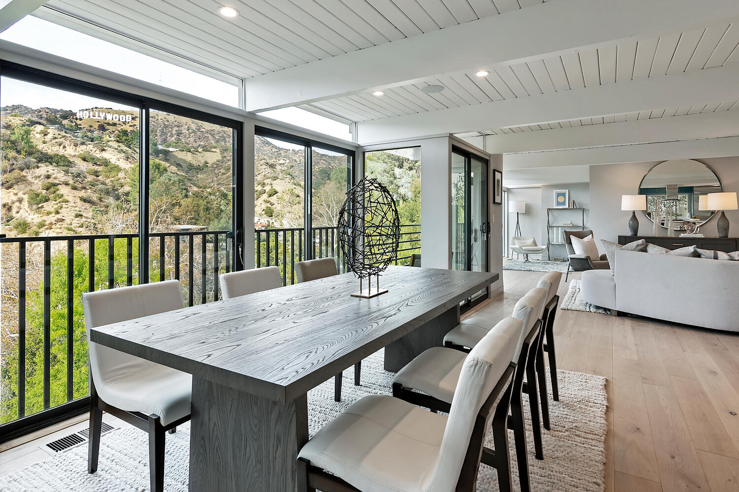 Discover luxury and tranquility in this flawlessly transformed, mid-century post and beam in prime Beachwood Canyon with spectacular canyon and Hollywood sign views. Open floor plan and walls of glass fill this hillside oasis with natural light and sweeping vistas. Airy and sun-splashed living room, chef’s kitchen, breakfast bar, and dining space flow together seamlessly. Beautiful outdoor entertaining features include an incredible lounge with a double-sided fireplace made for cozy nights under the stars. Two bedrooms and two and a half baths with a bonus space that could serve as a 3rd bedroom or office. This beautiful home fulfills all your needs for domestic comfort.