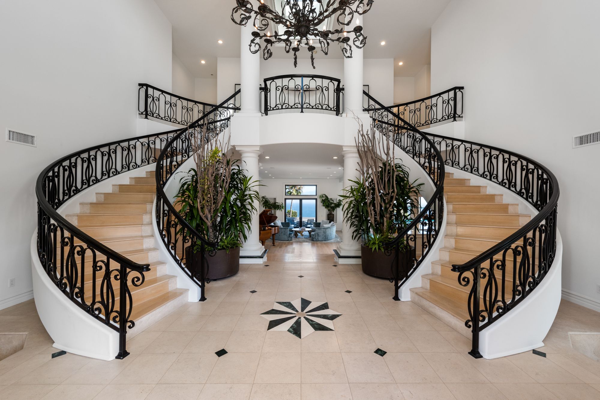 Perched on the coveted Encinal Bluffs of Malibu with panoramic Pacific Ocean views. The newly renovated home is on approx. 4.35 acres and boasts a grand entrance with a double staircase that leads to a light-filled great room with ocean vistas and a custom aquarium. French doors open to a large patio with firepit to dine alfresco and enjoy the Malibu sunsets. The sunlit kitchen boasts top-of-the-line Sub-Zero & Wolf appliances. The primary suite has oversized windows to enjoy the view, a walk-in closet, and a dry sauna. An additional 4 bedrooms provide ample space for family and friends. The latest and greatest amenities including a theater and gym. The expansive grounds include a swimming pool, spa, sand volleyball court, skate park, vegetable garden, and parking for 30+. This private Malibu oasis is moments away from the best beaches, shopping, and dining and is a true coastal masterpiece with unparalleled ocean views.