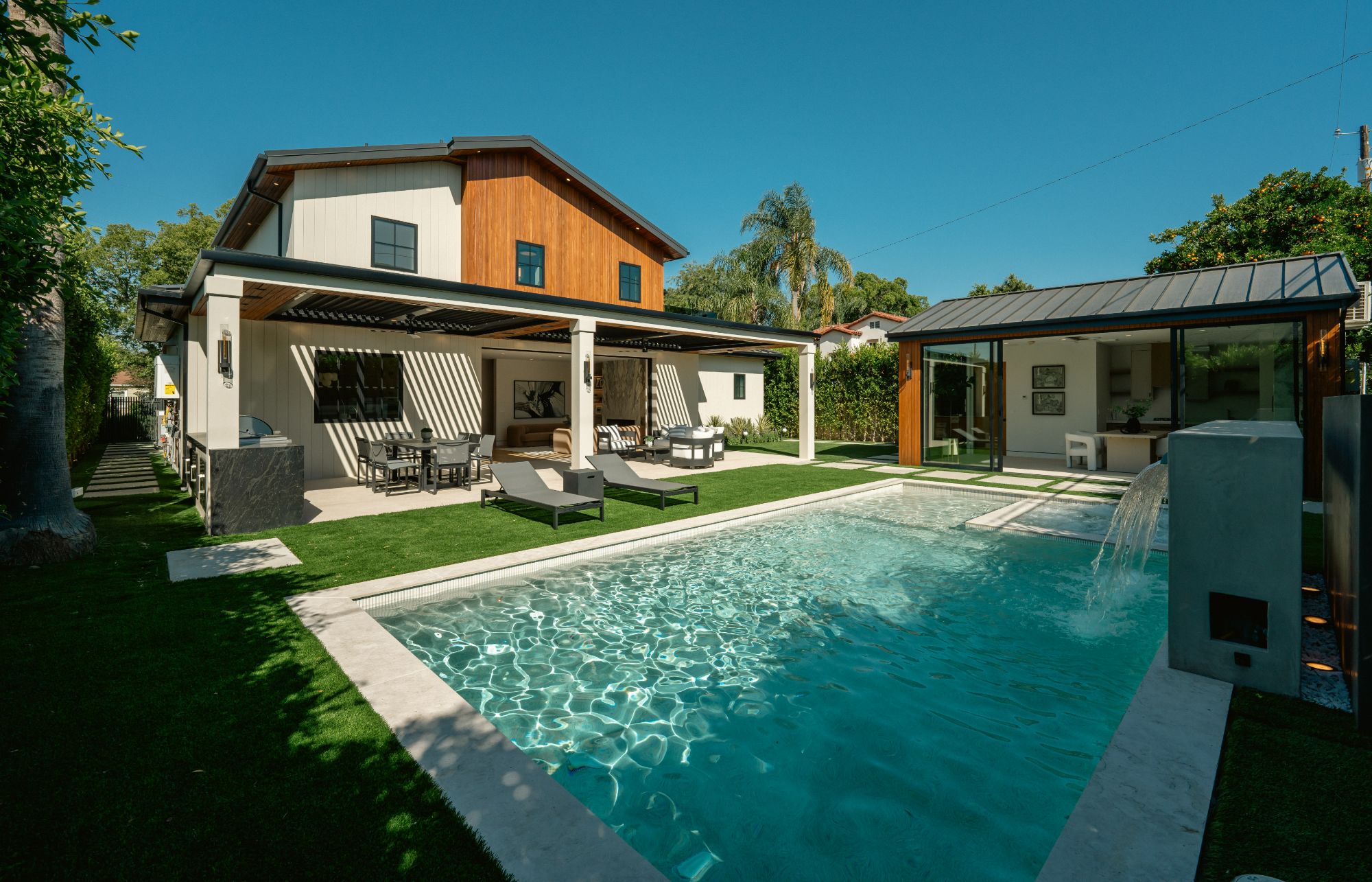 Welcome to an unparalleled modern luxury living experience! Nestled in Burbank's vibrant Media District, this brand-new construction epitomizes sophistication and elegance. The main house boasts 3,600 square feet of exquisitely designed living space, complemented by a charming 400-square-foot guest house. Featuring 5 spacious bedrooms and 6 beautifully appointed bathrooms, this home is crafted for ultimate comfort and style. Enjoy peace of mind with a state-of-the-art security system equipped with over 12 cameras, and experience seamless audio with integrated speakers in every room, including the patio. The property also offers 800 square feet of covered patio and balcony space, perfect for entertaining or unwinding. Additionally, a 400-square-foot garage provides ample space for vehicles and storage needs. Emphasizing sustainability, the home includes solar power systems for both the main house and the ADU, promoting an eco-friendly lifestyle. Don't miss the opportunity to embrace modern living at its finest in this sophisticated Burbank residence, where luxury, sustainability, and convenience harmoniously converge to create the ultimate haven for discerning homeowners. All of this within Burbank, renowned for its excellent schools and exceptional city services. Bordering Toluca Lake and Burbank, this property is conveniently close to major studios like Warner Bros. and Disney, as well as Saint Joseph Hospital. The main house features four en-suite bedrooms, and there's a guest house complete with a kitchen and bathroom. Enjoy the proximity to all the great shops and stores that Toluca Lake has to offer.