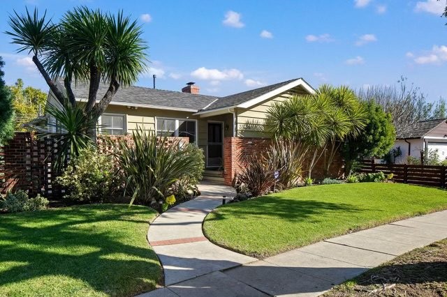 Welcome home to this inviting, light-filled, updated single-story home in the heart of coveted Mar Vista!! Be greeted upon entry by the spacious living room accented by hardwood floors, built-ins, and a white brick fireplace. Host a large gathering of family & friends or an intimate group in the generous dining area while taking in the beauty of a private backyard with a tiled patio, lush landscaping, & spa. Head outdoors through sliders to an ample yard leading to a bonus room with a beamed ceiling & French doors, perfect for a home office, a children's playroom, or a yoga/workout/art studio, attached to the 2-car garage. Additional home features include a primary suite with access to the backyard & a newly remodeled ensuite bathroom, central heat & air (HVAC), central alarm system, Ring, 200 amp electric, abundant closet space w/built-ins, mature landscape, new carpet installed Summer 2022, guest bathroom remodeled 2021, outdoor lighting, close proximity to award-winning Mar Vista Elementary School, Whole Foods, bagel shop, Starbucks, nail salon, Ralph's, restaurants, freeway access and much more! Move in and start enjoying!