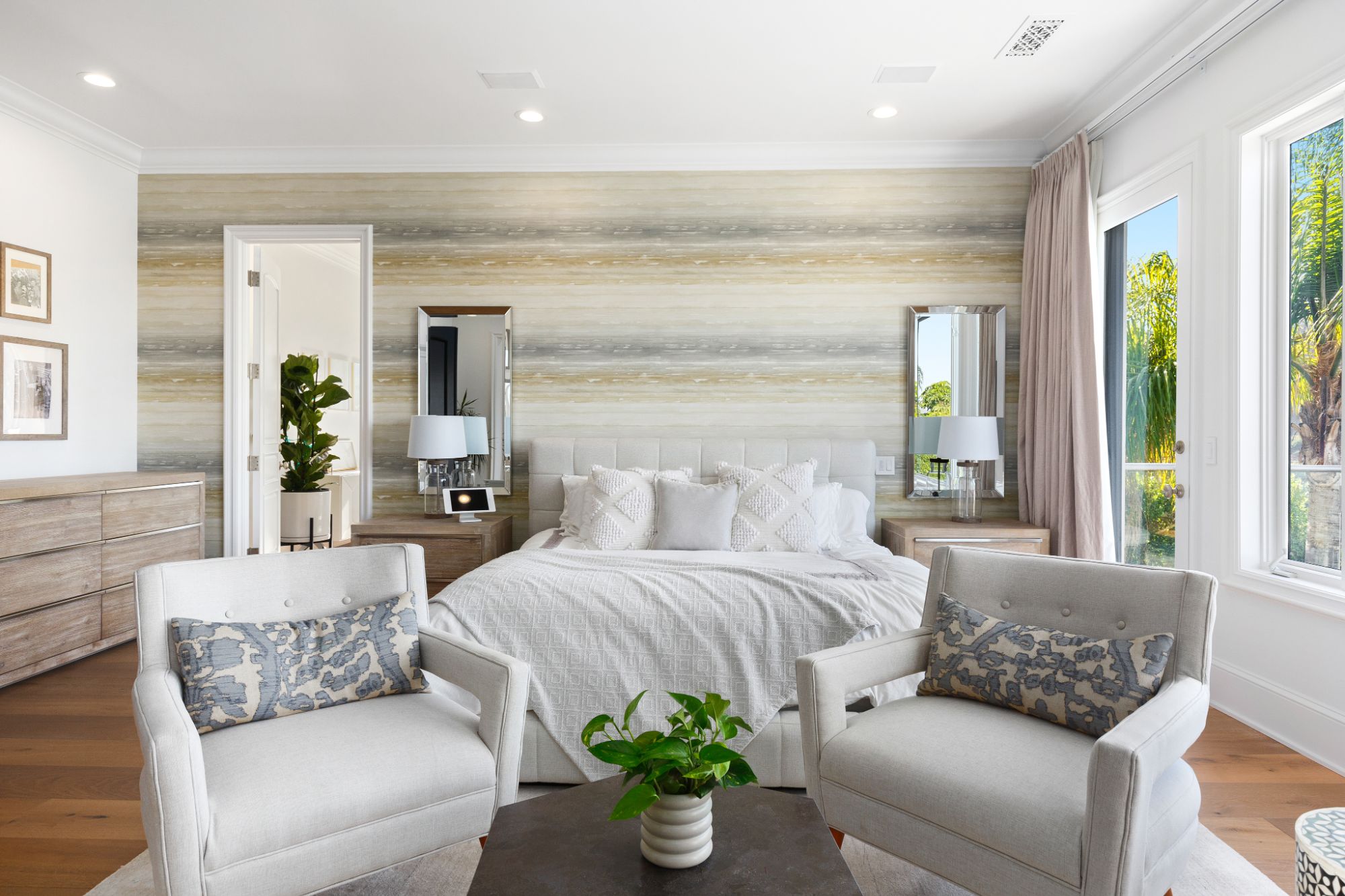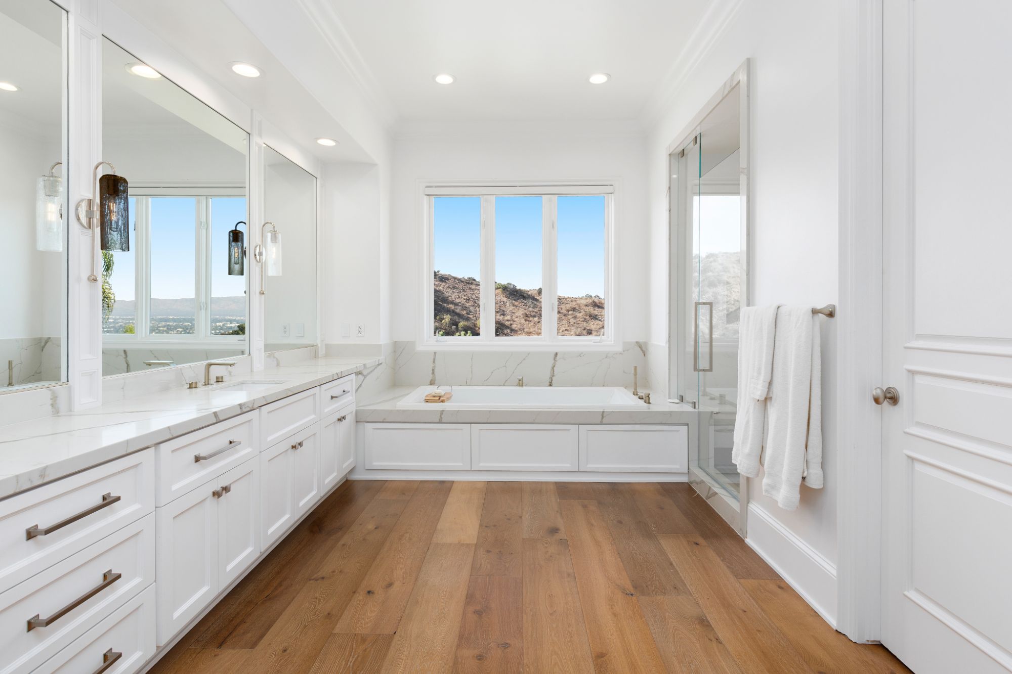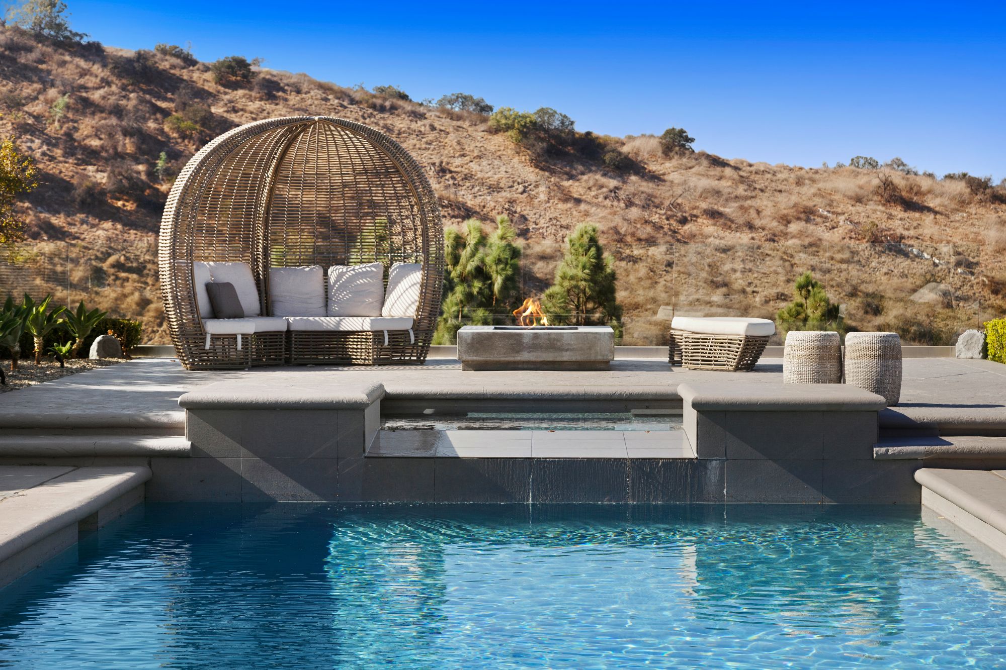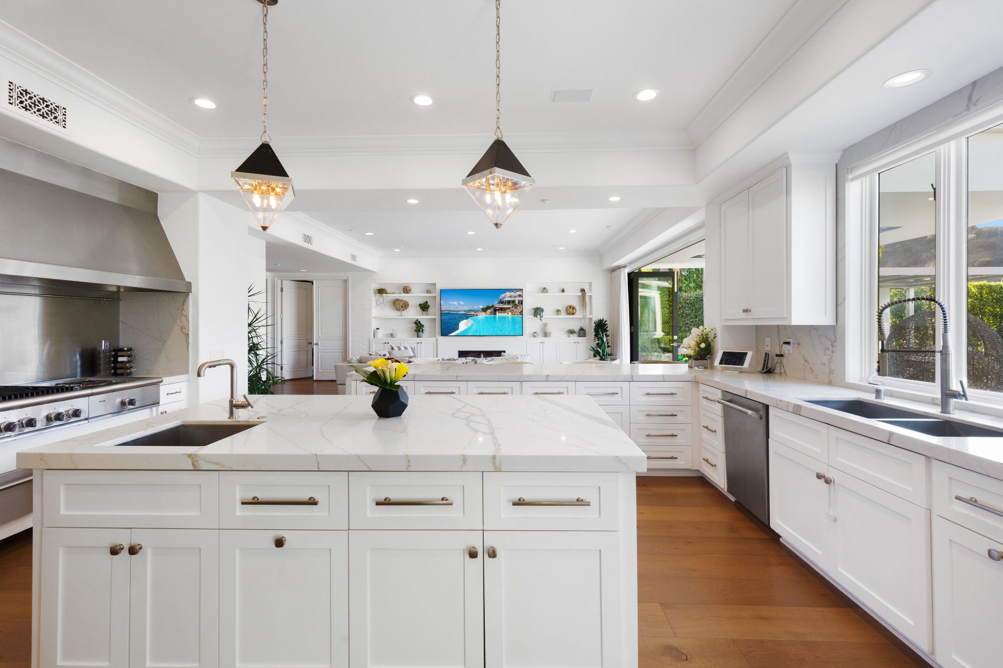 Gorgeous home set in the guard-gated Mulholland Estates community of Beverly Hills with panoramic views of the valley. Steel encased glass doors welcome you into this home that has been fully renovated with high-end contemporary finishes. Spacious two-story foyer and formal living room with double-height windows to maximize natural light. Kitchen features high-end stainless-steel appliances including 2 Sub-Zeros and a 10-Burner Viking stove. The kitchen blends seamlessly into the breakfast nook and family room, which opens to the backyard. Main level also offers formal dining room and one ensuite bedroom. The second level has three bedrooms, home office, and expansive primary suite with fireplace, walk-in closet, and private deck with views. The backyard has a lush flat grassy area, pool, spa, cabana with fireplace, BBQ, and incredible views. Have the best of both worlds when you live between the west side and the valley in the ultra-exclusive Mulholland Estates.
