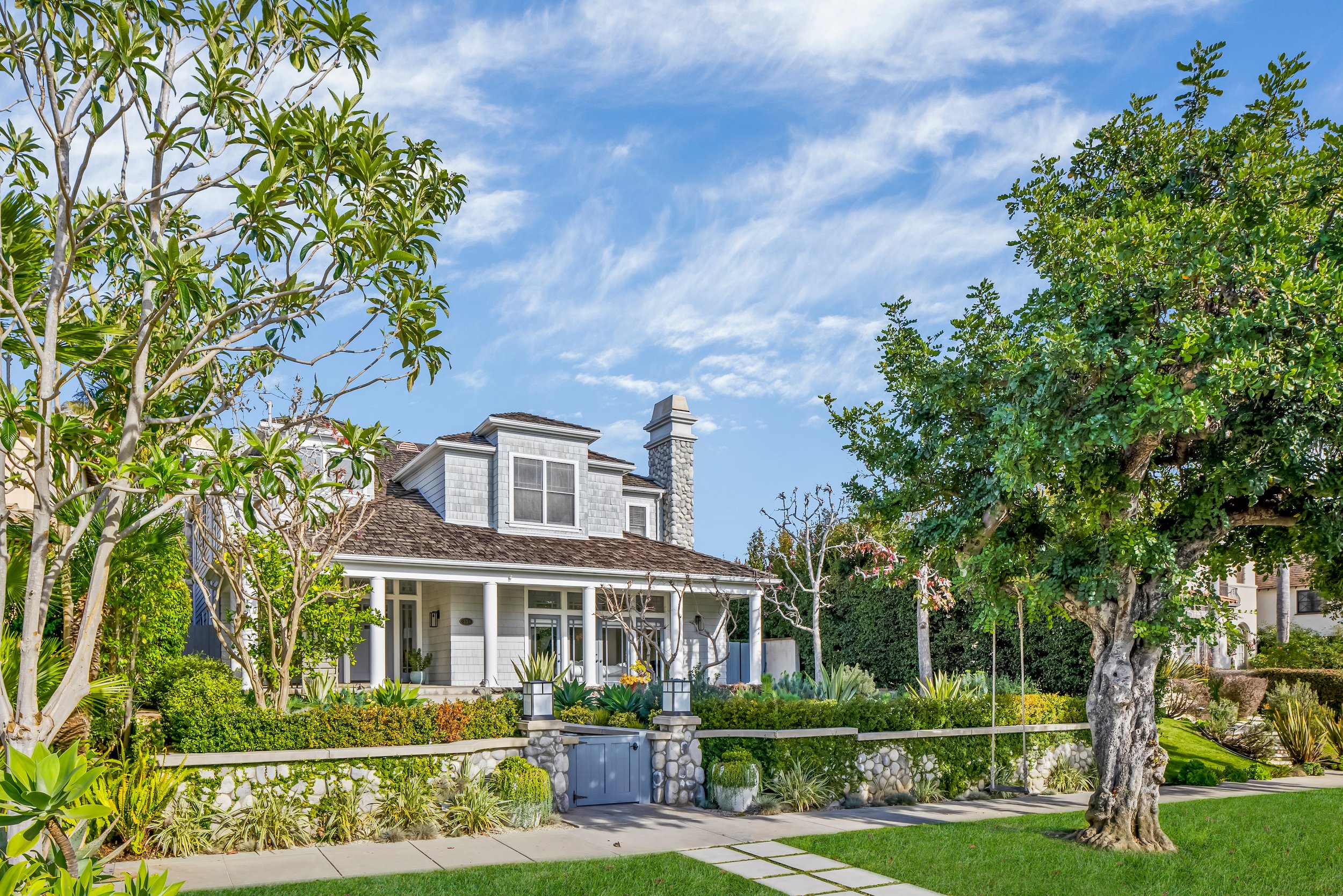 Beautiful & bright Craftsman home overflowing with character and curb appeal on a serene and quiet tree lined street in the highly coveted North of Montana, Santa Monica neighborhood. This custom home shines with a perfect floor plan, soaring ceilings, wainscoting and elegant crown moldings with coffered ceilings in the formal living and dining rooms and hardwood floors throughout. 5 BD/5.5 BA including a large detached guest house with Murphy bed, full bath, kitchenette & movie screen with built-in dolby surround sound. Primary bedroom features a huge walk-in closet with balcony and remodeled luxurious bath with steam shower, double sinks and separate tub. Spacious kitchen has custom cabinetry, Ann Sacks subway tile backsplash & luxury appliances including a Wolf cooktop, Wolf in-wall dual ovens, a large center island with two Sub-zero refrigerated beverage drawers + a Wolf warming drawer, separate refrigerator and freezer units, breakfast booth and a butler's pantry with Thermador wine fridge. Large family room with custom built-ins opens to a private backyard with a covered outdoor dining area with heater and an outdoor kitchen with built-in BBQ, refrigerator and prep sink. An oversized spa and separate outdoor seating area with fire pit & a pop-up TV complete the ultimate backyard entertaining experience. Don't miss this rare opportunity to purchase a timeless custom home with undeniable appeal, an exceptional use of s