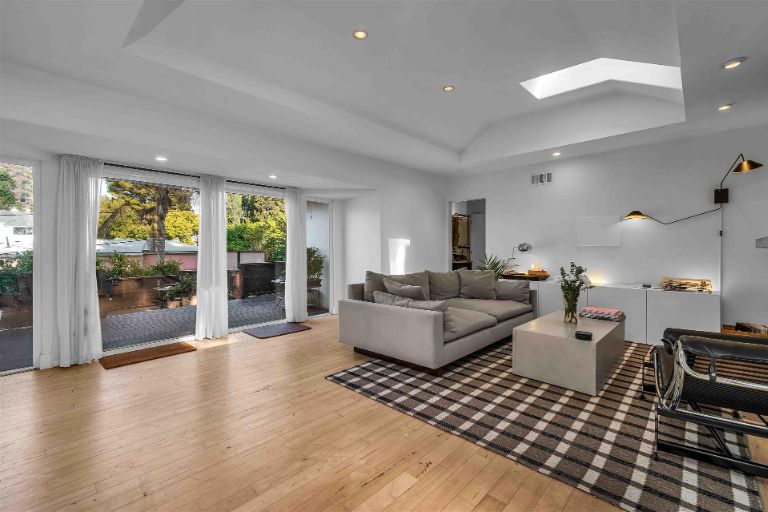 Light-filled Midcentury home nestled in the desirable Hollywood Manor neighborhood features 5 skylights, vaulted ceiling in the main living area, and stunning views of Cahuenga Peak. Energy efficient standing seam metal roofing and a stainless steel door give contemporary vibes to this 3 bedroom 2 bath carefully curated interior. The sophisticated color palette throughout and stone work in the fully renovated main bath complement the entertainer's indoor AND expansive outdoor living and dining areas. The extraordinary eclectic landscaping and raised bed garden provide lush serenity to convenient city living, including Lake Hollywood and access to the 101, 5 and 134 freeways. The spacious 2 car garage and updated electrical panel are ready for your charging station. Upgrades & Home detail sheet in document section. A MUST SEE. BY APPOINTMENT ONLY. Call Listing Agent. Thank you for your interest!