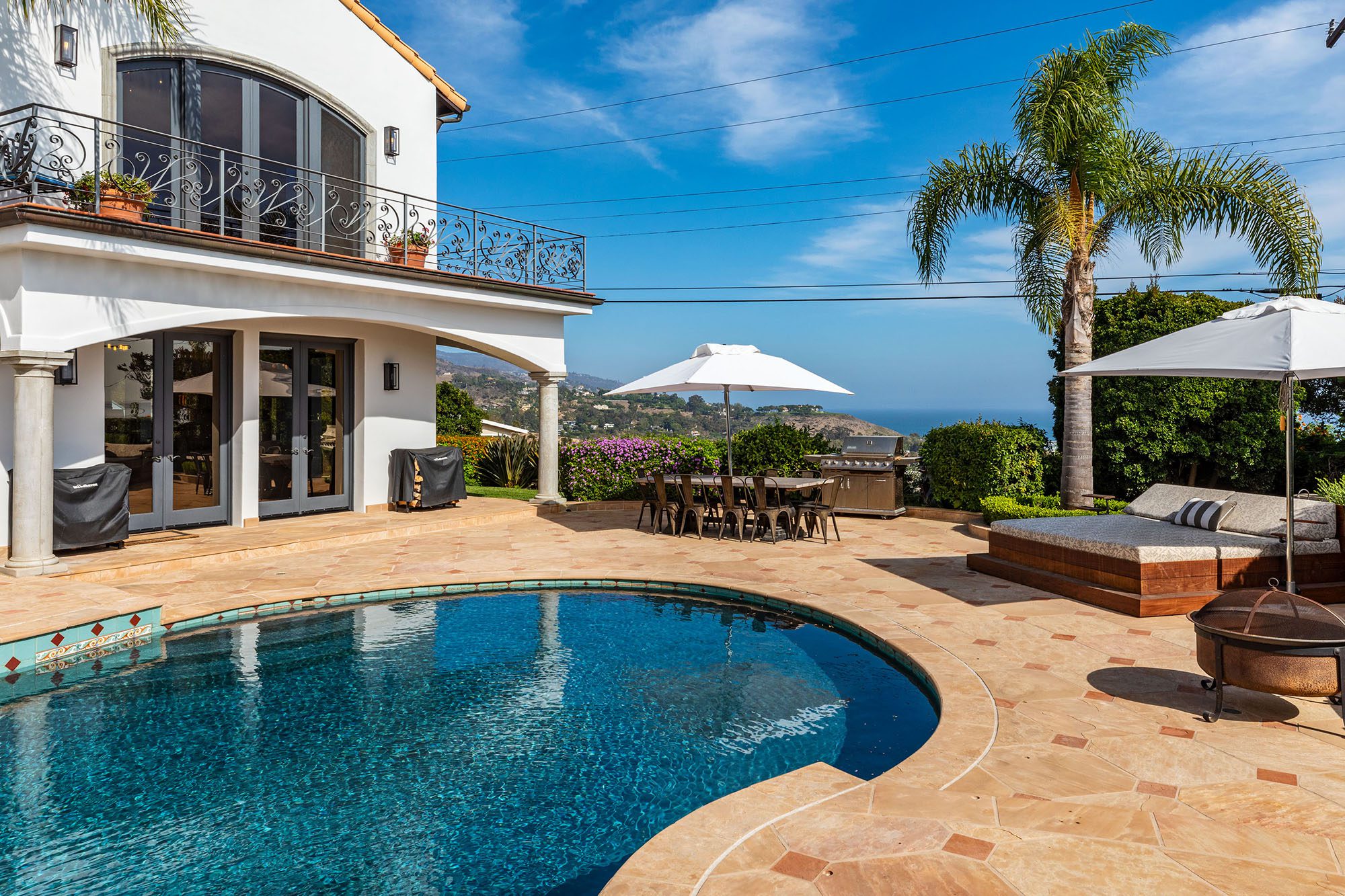 This Spanish Contemporary residence is located in the heart of Malibu overlooking Cross Creek and the Malibu Colony Plaza and situated on over an acre of land. Located minutes from the new Whole Foods, local restaurants, shopping and additional amenities. This home features five bedrooms and five-and-a-half bathrooms, and an additional second level guest house with its own private staircase. This property is gated and private and has large walls surrounding the front of the property. Both the living room and master bedroom overlook central Malibu, with the master featuring more expansive views of the coastline extending to the Queens Necklace. Additionally, this home was newly painted inside and out and features a large pool and patio area with ample yard space.