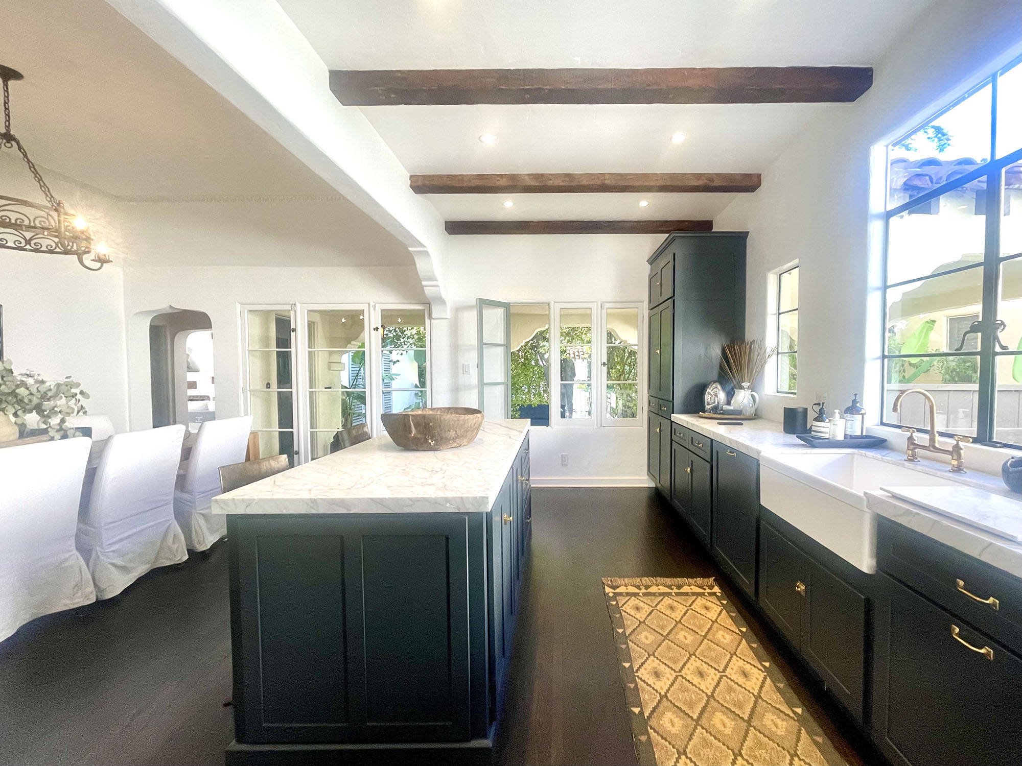 Updated Courtyard Spanish, in Prime Beverly Grove, with incredibly thoughtful detail throughout. Recently remodeled and restored to maintain its original authenticity and charm, this home opens to the dramatic step down stenciled beamed living room with original wall sconces & a majestic restored batchelder fireplace. Gourmet kitchen with marble counter tops & updated appliances flow seamlessly to an open concept dining room. Hedged in front yard landscaped with pea gravel & a zen water fountain, large grassy backyard, gated driveway & a 2-car garage suitable for an additional creative bonus space. This is the ideal property for entertaining and living the SoCal lifestyle. Located near some of the finest dining, leisure and entertainment that Los Angeles has to offer. Can be offered furnished at a negotiated rate. 3rd bedroom is currently converted to a closet & can be reconfigured as a bedroom if needed.