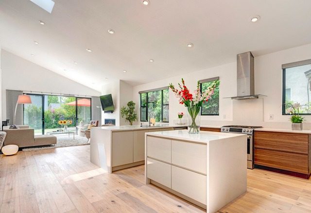 Light, bright, spacious and newer (built 2016) modern stunner in Palms. Inviting open floor plan with a massive great room that combines kitchen, dining and two separate sitting areas ideal for entertaining. Impressive high ceilings, gorgeous hard wood flooring and clean contemporary finishes throughout. New modern kitchen with handsome cabinetry, Bosch appliances and endless storage. Powder room and full en-suite bathrooms in all four bedrooms. Large airy master bedroom with a walk-in closet and sliding doors that open to your lovely and serene garden. Your spa inspired master bath features a large soaking tub, shower with chevron tiling and large double vanity. Hunter Douglas remote operated window coverings on timers allow you to wake up with the sun. Installed and fully paid for solar panels make your electricity bills almost nil. Dual zoned central air and heat. Flooded with natural light throughout this home exudes vitality, peace, warmth and well-being. Come be inspired!