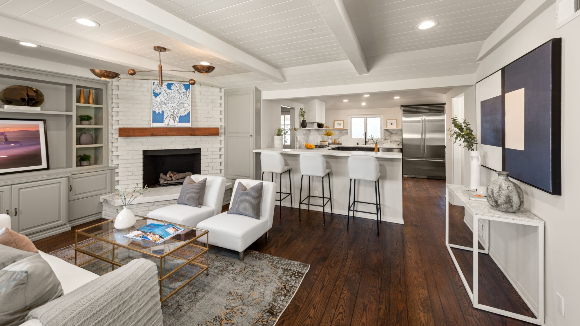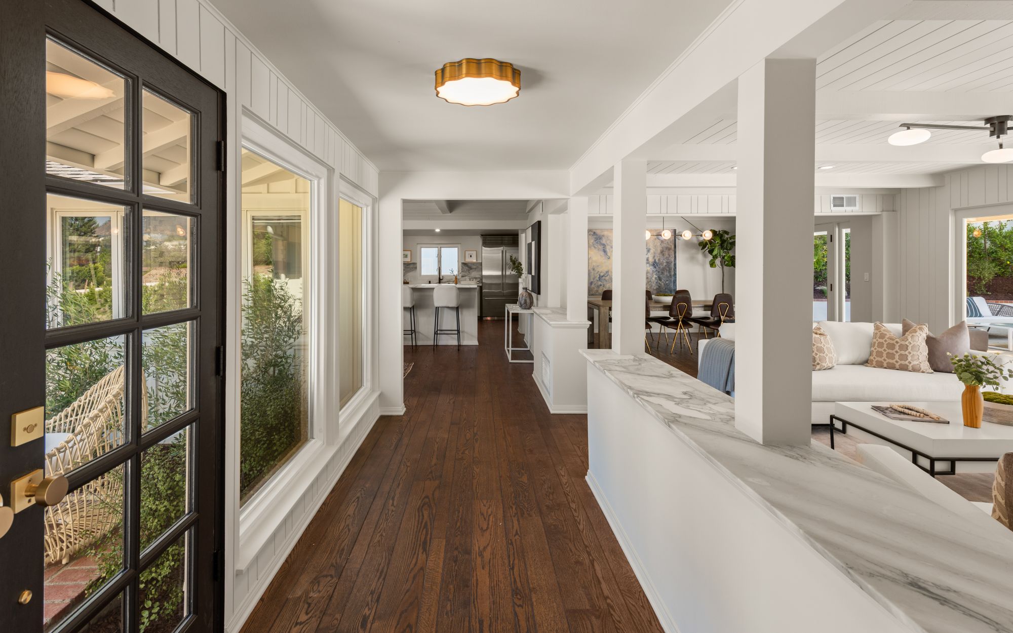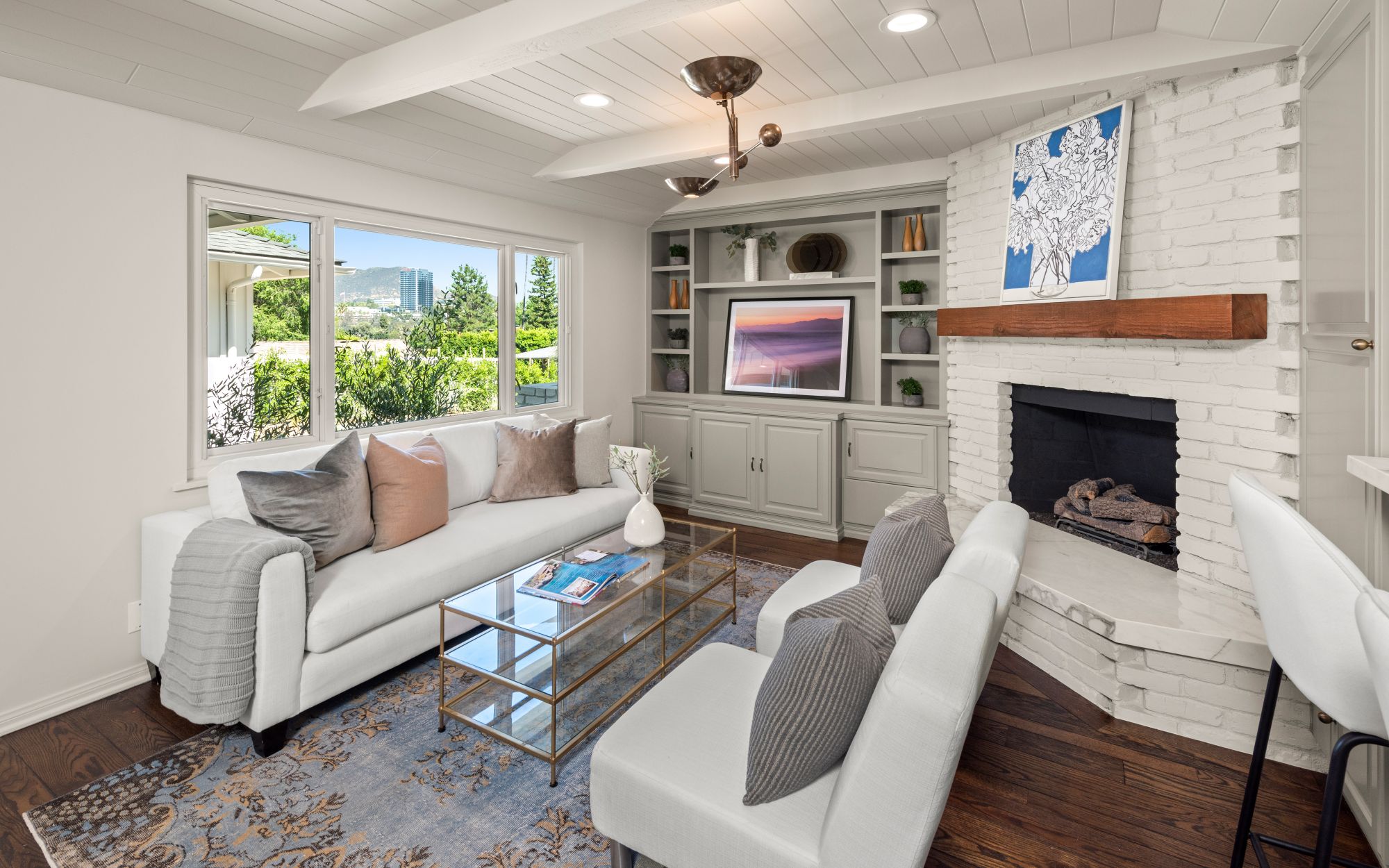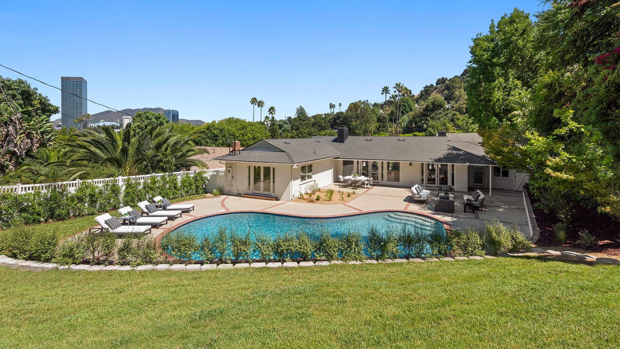 This modern home in the Wrightwood Estates just completed a tasteful remodel by one of LA's premier builders, Abode Homes. Set on a spacious .3 acre lot with city and canyon views in the coveted hills of Studio City. This 4BD 3BA modern ranch home seamlessly blends modern sophistication with traditional comfort. Step inside and experience the open floorplan that allows natural light to fill the home. The dining room opens to the kitchen that is complete with Wolf and Sub-Zero appliances, an island with Carrara marble counters, and Farrow and Ball painted cabinets. There is a storage/prep/laundry room for extra space. The primary suite offers dual Calacatta Arabescato sinks, a soaking tub, and rain shower. Two spacious bedrooms share a beautifully remodeled Jack and Jill bathroom, and an additional bedroom/office has an ensuite bathroom. Enjoy the indoor/outdoor SoCal lifestyle from your backyard oasis with large patio, swimming pool, and grassy lawn. The is a great location South of Ventura Blvd with easy access to the 101 and all the best shopping and dining Studio City has to offer.