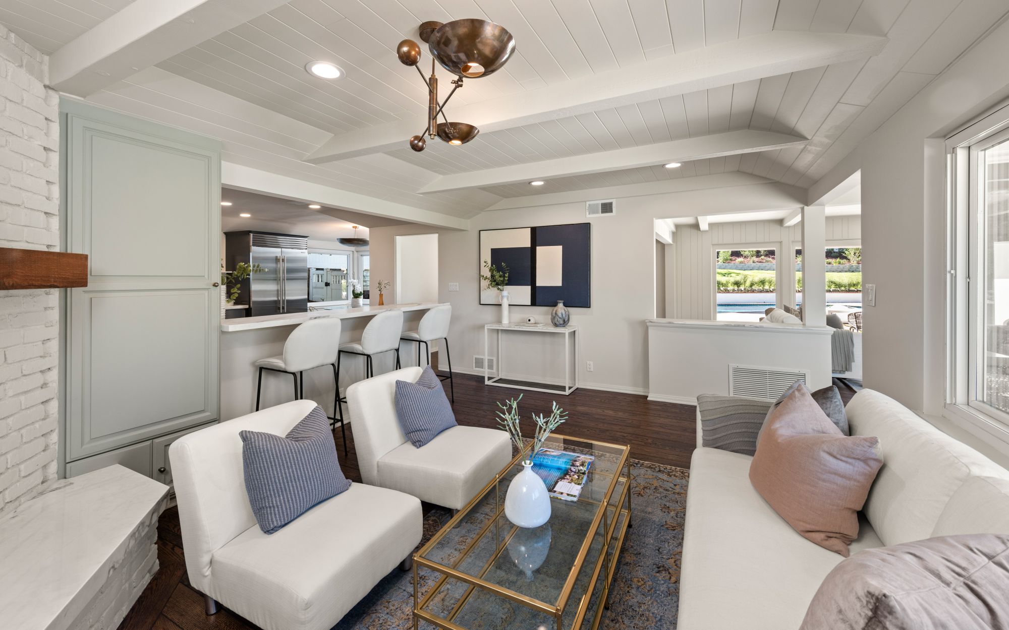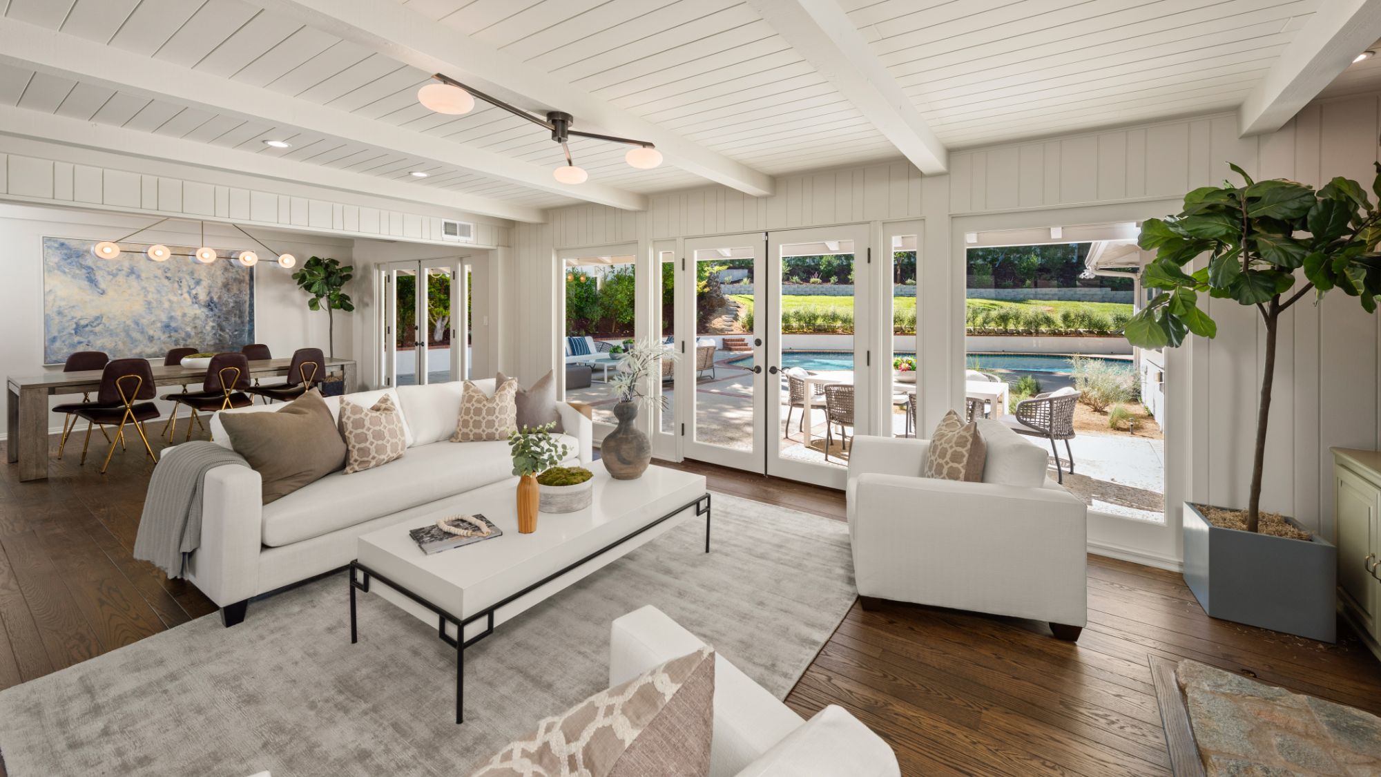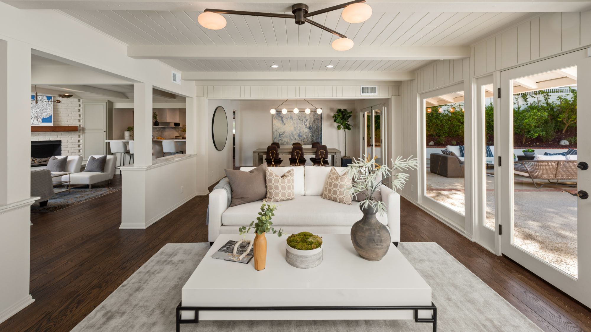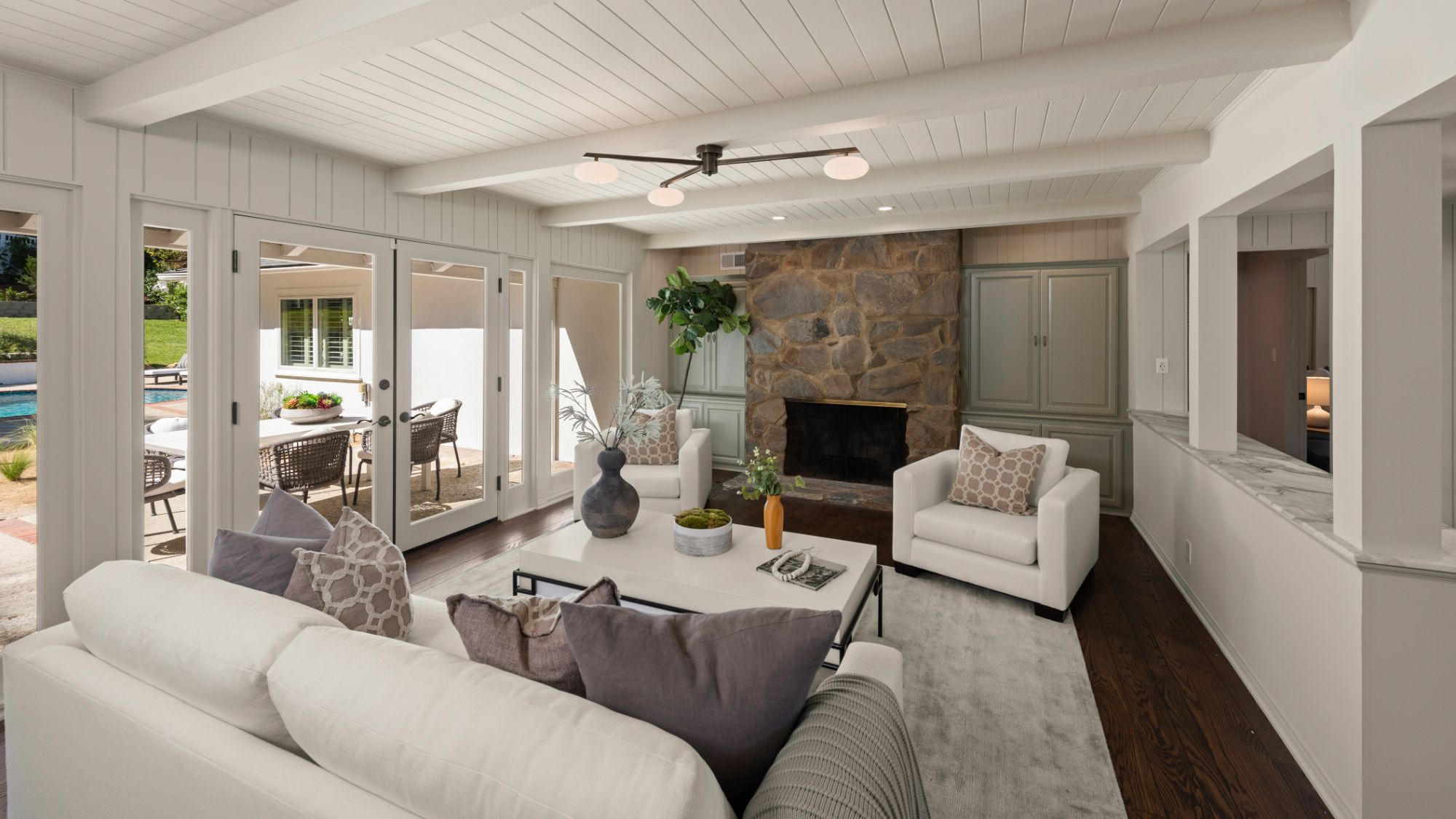 This modern home in the Wrightwood Estates just completed a tasteful remodel by one of LA's premier builders, Abode Homes. Set on a spacious .3 acre lot with city and canyon views in the coveted hills of Studio City. This 4BD 3BA modern ranch home seamlessly blends modern sophistication with traditional comfort. Step inside and experience the open floorplan that allows natural light to fill the home. The dining room opens to the kitchen that is complete with Wolf and Sub-Zero appliances, an island with Carrara marble counters, and Farrow and Ball painted cabinets. There is a storage/prep/laundry room for extra space. The primary suite offers dual Calacatta Arabescato sinks, a soaking tub, and rain shower. Two spacious bedrooms share a beautifully remodeled Jack and Jill bathroom, and an additional bedroom/office has an ensuite bathroom. Enjoy the indoor/outdoor SoCal lifestyle from your backyard oasis with large patio, swimming pool, and grassy lawn. The is a great location South of Ventura Blvd with easy access to the 101 and all the best shopping and dining Studio City has to offer.
