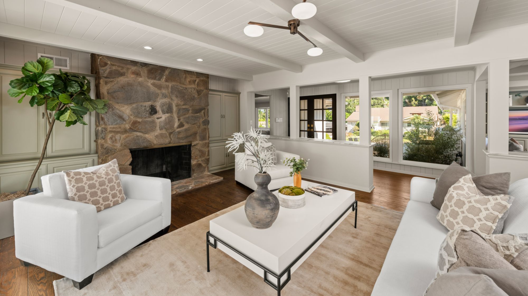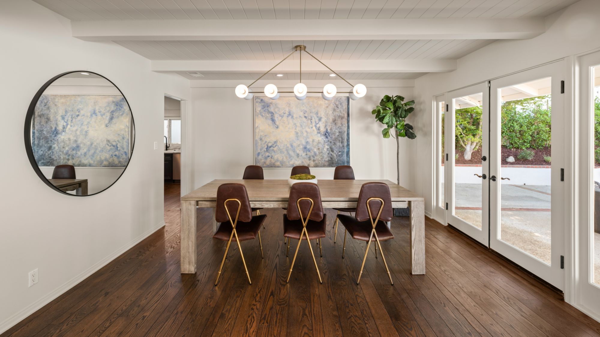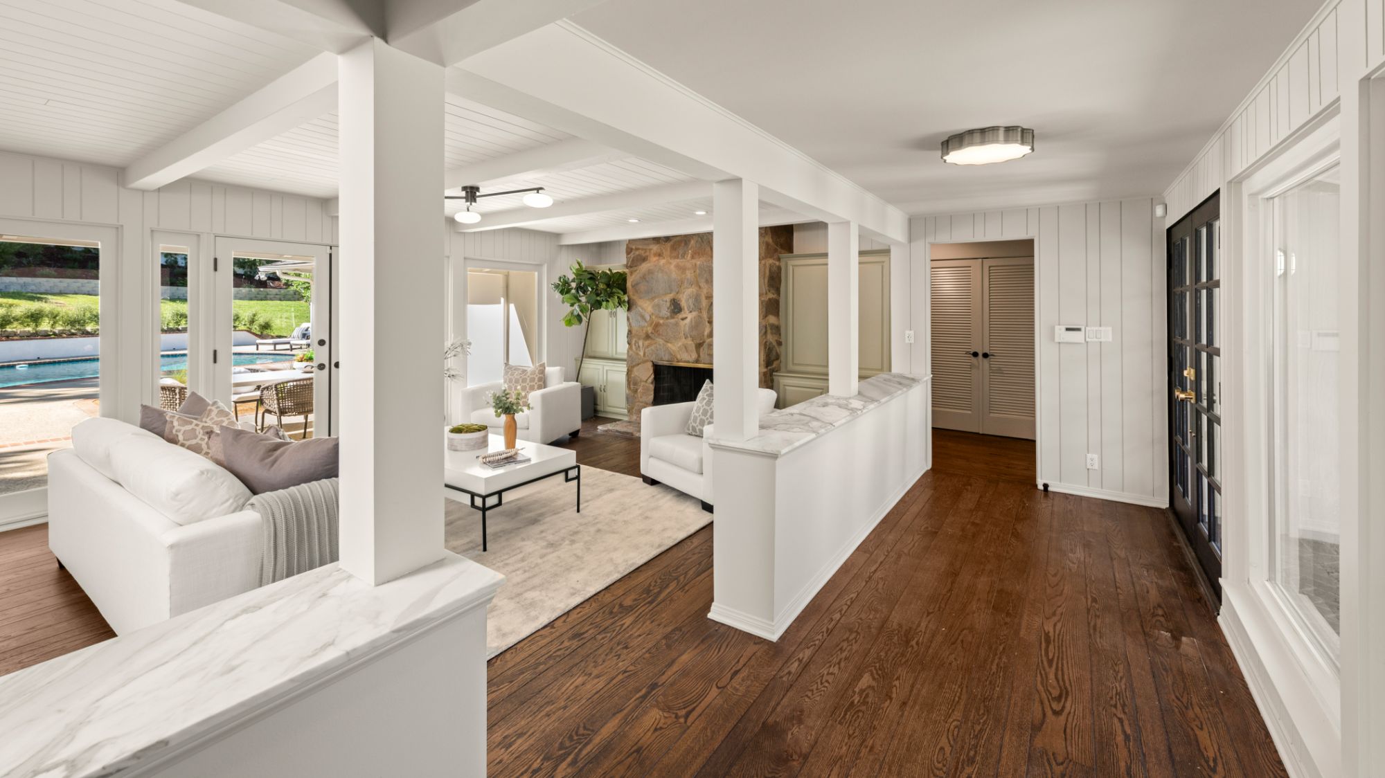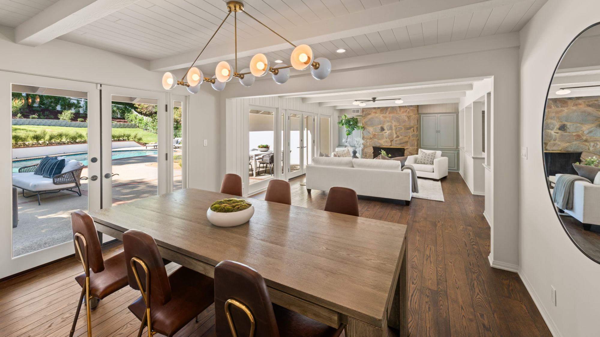 This modern home in the Wrightwood Estates just completed a tasteful remodel by one of LA's premier builders, Abode Homes. Set on a spacious .3 acre lot with city and canyon views in the coveted hills of Studio City. This 4BD 3BA modern ranch home seamlessly blends modern sophistication with traditional comfort. Step inside and experience the open floorplan that allows natural light to fill the home. The dining room opens to the kitchen that is complete with Wolf and Sub-Zero appliances, an island with Carrara marble counters, and Farrow and Ball painted cabinets. There is a storage/prep/laundry room for extra space. The primary suite offers dual Calacatta Arabescato sinks, a soaking tub, and rain shower. Two spacious bedrooms share a beautifully remodeled Jack and Jill bathroom, and an additional bedroom/office has an ensuite bathroom. Enjoy the indoor/outdoor SoCal lifestyle from your backyard oasis with large patio, swimming pool, and grassy lawn. The is a great location South of Ventura Blvd with easy access to the 101 and all the best shopping and dining Studio City has to offer.
