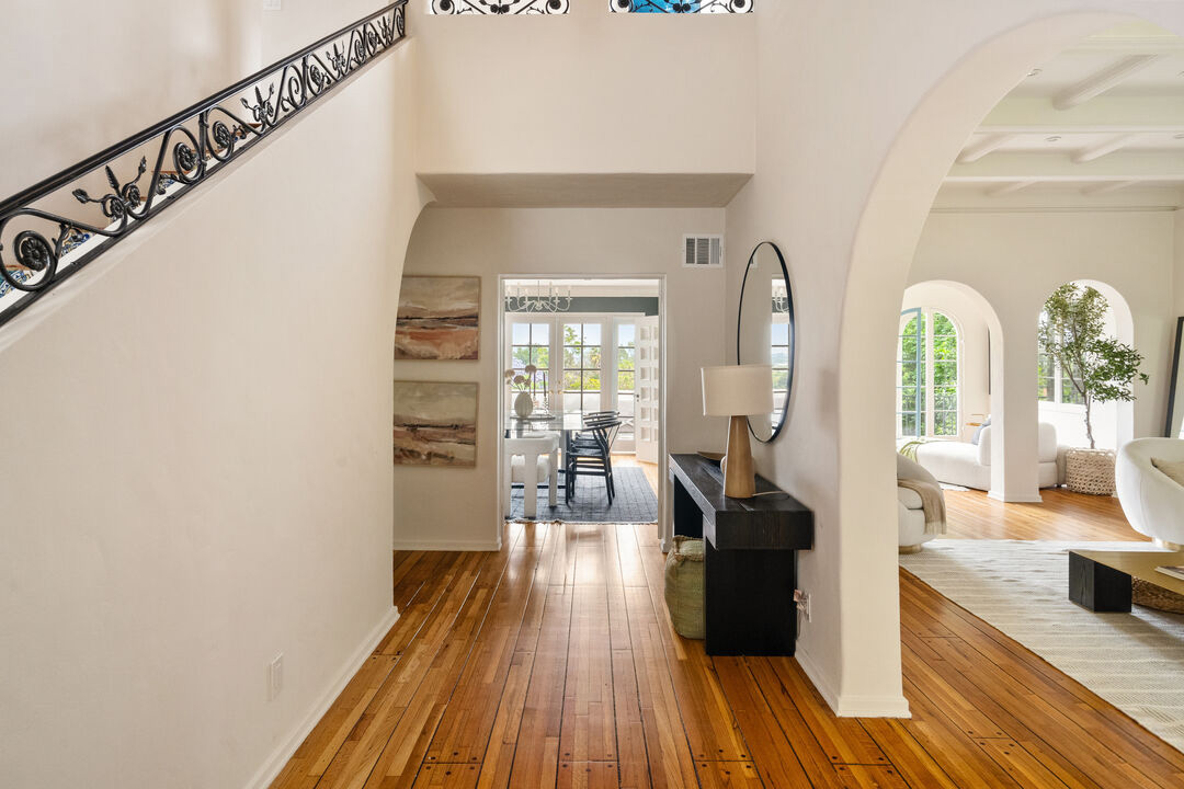 Welcome home to this wonderfully charming 1929 Mediterranean-style home with VIEWS nestled in the hills of one of Los Angeles' most coveted neighborhoods. In addition to tons of natural light, this home features lovely architectural elements with traditional archways, detailed crown moldings, coffered ceilings, hardwood floors and tasteful updates that compliment the original charm and soul of it's 1920's-era design. Most rooms provide stunning and serene views of the hills by day and sparkling lights by night. The kitchen offers butcher block countertops, large Workstation kitchen sink and a lovely bay window backdropped with foliage. The formal dining room has French Doors that open up to an upper patio with unobstructed views. You will find 3 bedrooms with views upstairs and the 4th bedroom on the entry level. The lower level includes an additional room perfect for a home office or kids play room with French Doors leading to the backyard. A large patio off the lower level provides the perfect setting for entertaining and alfresco dining on beautiful southern California evenings along with a grassy yard with more than enough room for a pool. Other features of this home include a separate laundry room, central heat and air, a large basement with ample storage and 2-car garage. This home is a truly a rare find, offering a blend of elegance, comfort and charm with stunning views in a private, serene setting just moments from the city, Los Feliz village shops and restaurants, and Griffith Park hiking.