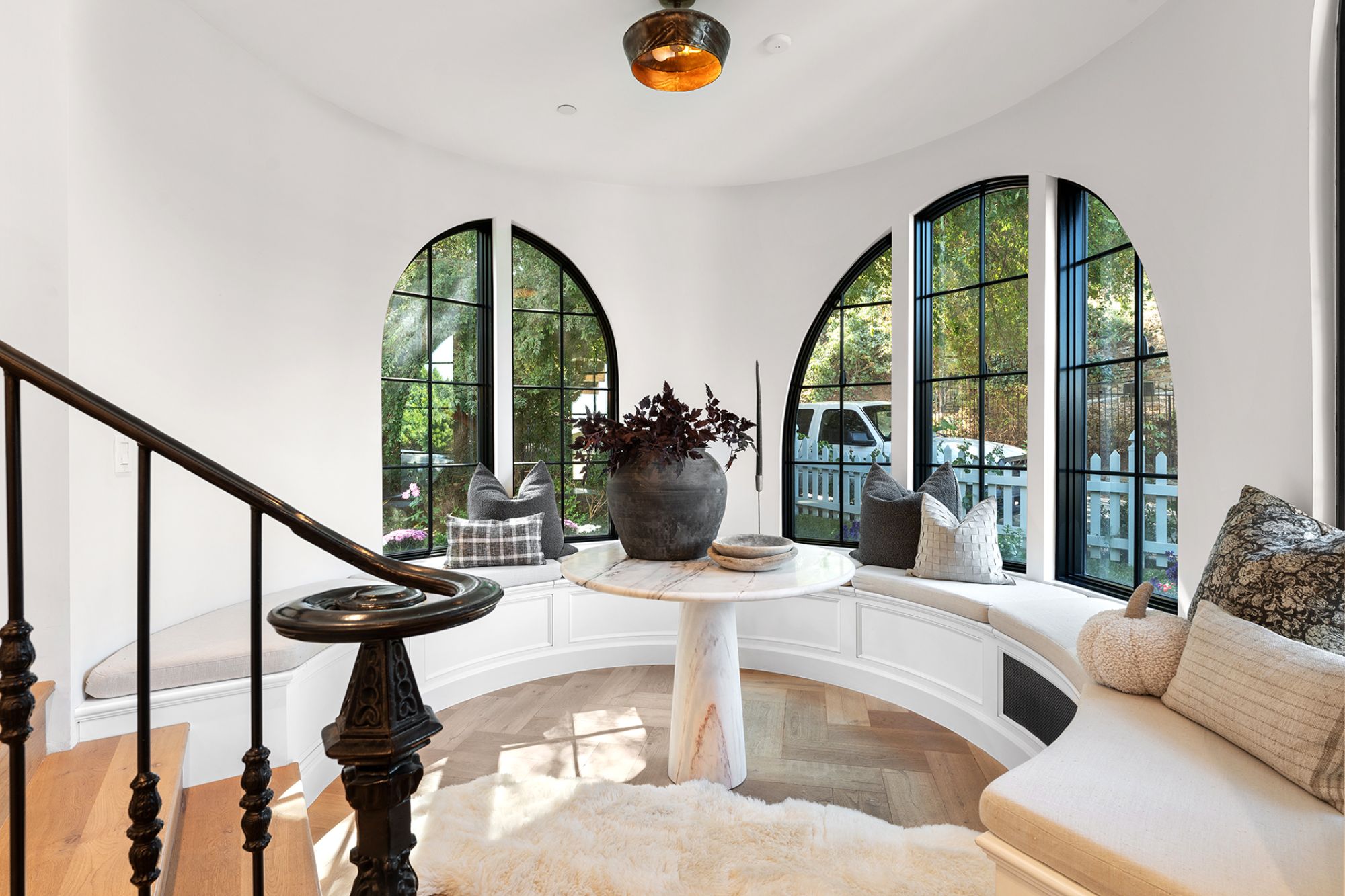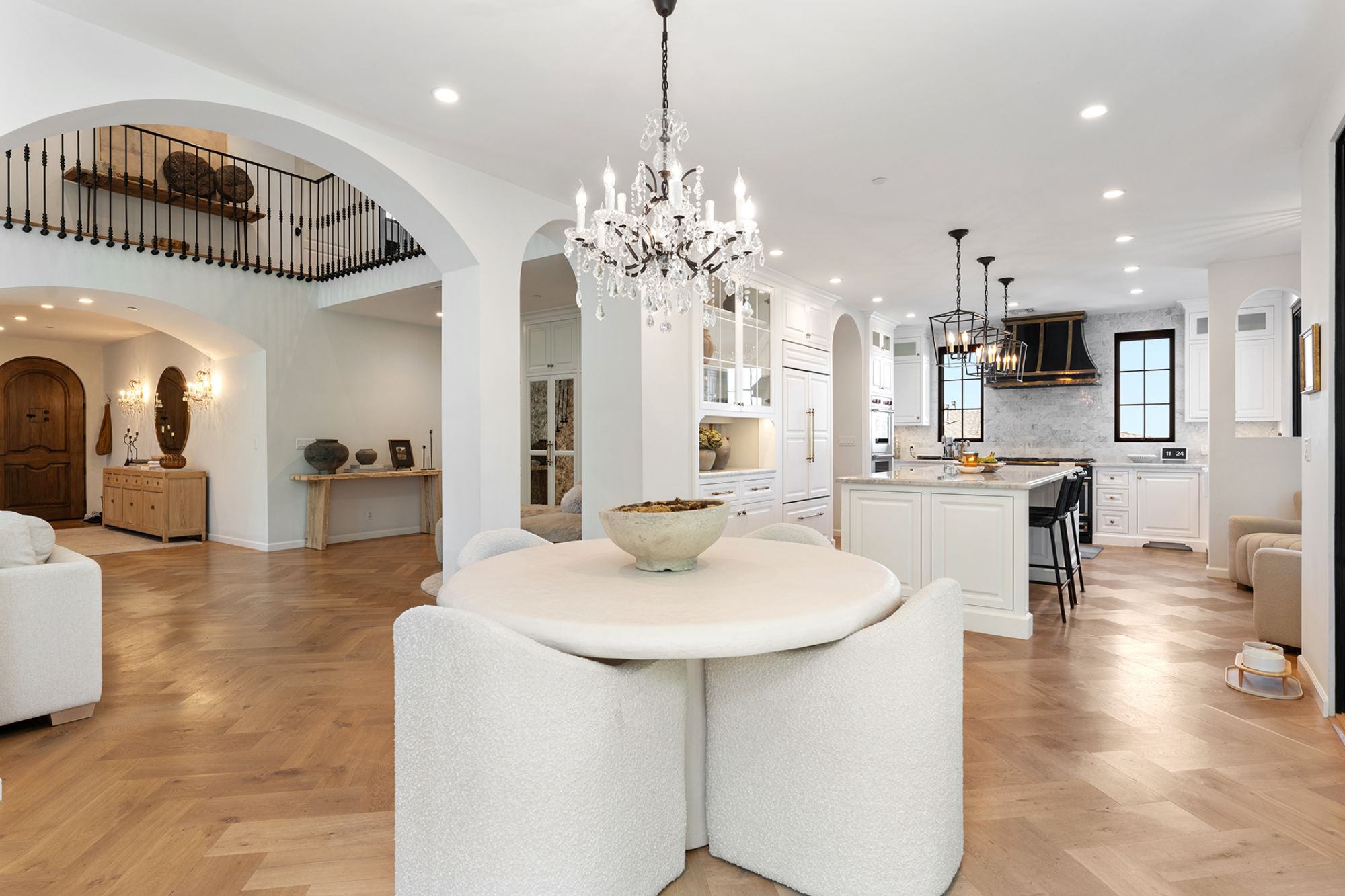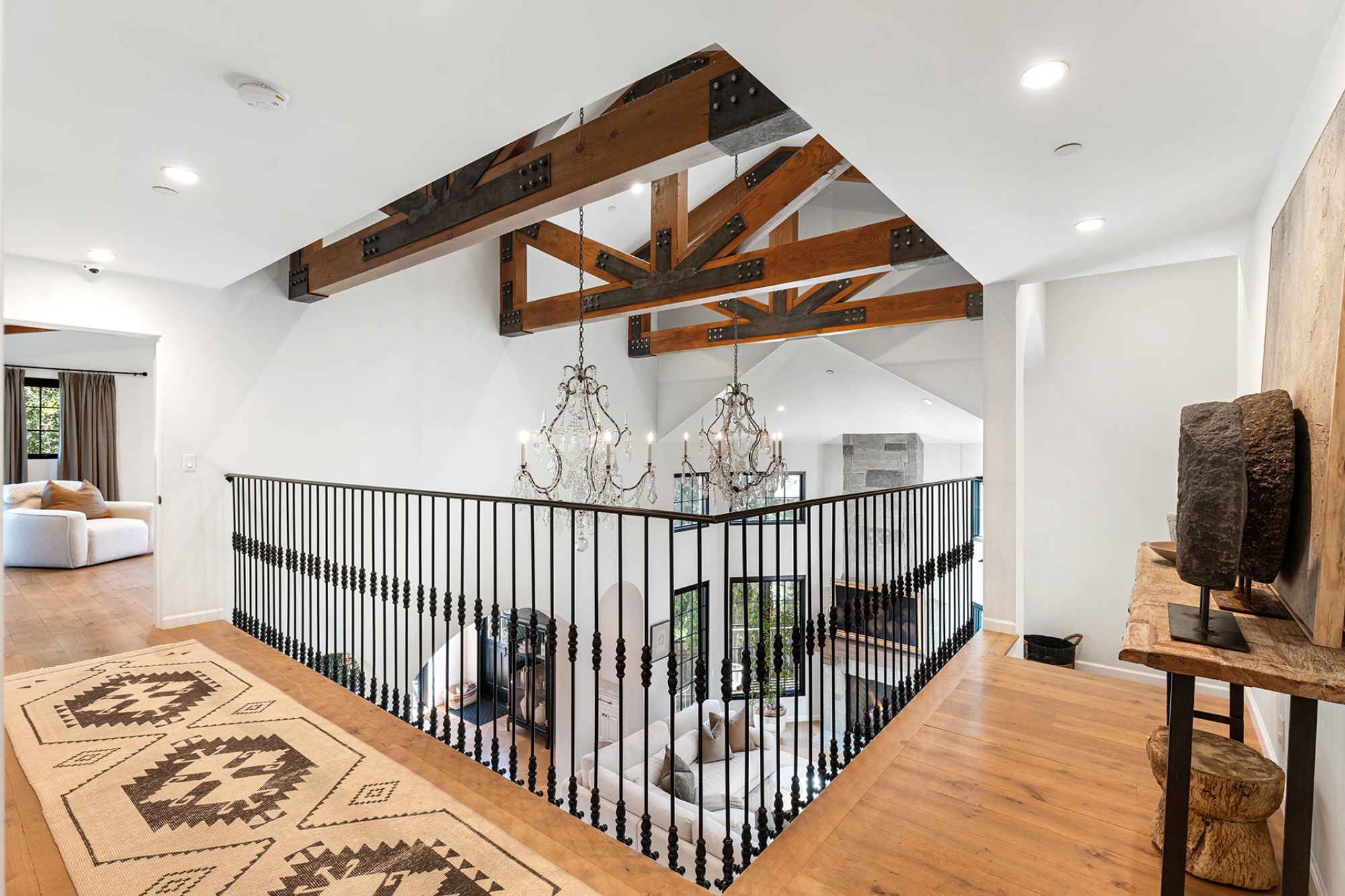 Welcome to this exquisite 2018 French Country home, a true masterpiece of design and craftsmanship, nestled in the heart of highly sought-after Studio City. This stunning residence boasts an open floorplan that maximizes breathtaking city and mountain views from nearly every room. As you enter, you'll be captivated by the high vaulted ceilings, which soar to 25 feet in the grand great room, accentuated by beautiful beams that add a touch of rustic elegance. The space is filled with natural light, courtesy of the large windows that frame the picturesque vistas. The great room seamlessly transitions into the chef's kitchen, a culinary enthusiast's dream, featuring a La Cornue range, a Wolf double oven, and a Subzero fridge/freezer. An additional refrigerator and freezer are integrated into the stunning kitchen island, providing ample space for food preparation and entertaining. The home offers four spacious bedrooms, each designed with high vaulted ceilings that create an airy, open feel. An optional fifth bedroom suite is located downstairs, perfect for guests or as a recreational room, complete with a private entrance and ensuite bathroom for added convenience. Step outside into the large grassy backyard, a rare find among hillside homes. Here, you'll discover a charming fountain surrounded by mature trees and lush landscaping, providing a tranquil setting for relaxation or outdoor gatherings. The expansive outdoor space is complemented by three balconies, including a sizable entertaining deck that offers both east and west views, ideal for watching the sunrise and sunset in style. Additional features of this remarkable home include French oak hardwood floors that flow throughout the living spaces, crystal chandeliers that add a touch of luxury, and exquisite Carrara marble finishes that enhance the overall aesthetic. For your storage needs, the property includes a spacious basement, perfect for organizing seasonal items, sports equipment, or can be used a work space. Located in the prestigious Carpenter School District, this home is not only a haven of comfort and style but also offers close proximity to an array of restaurants, shopping venues, and renowned hiking trails. Please note that the renter will be responsible for all utilities, as well as gardener services, fountain maintenance, and alarm monitoring/response. Renter's insurance is required to ensure peace of mind in this stunning residence. Don't miss the opportunity to call this extraordinary home your own, where elegance meets functionality in one of the most desirable neighborhoods in the area.