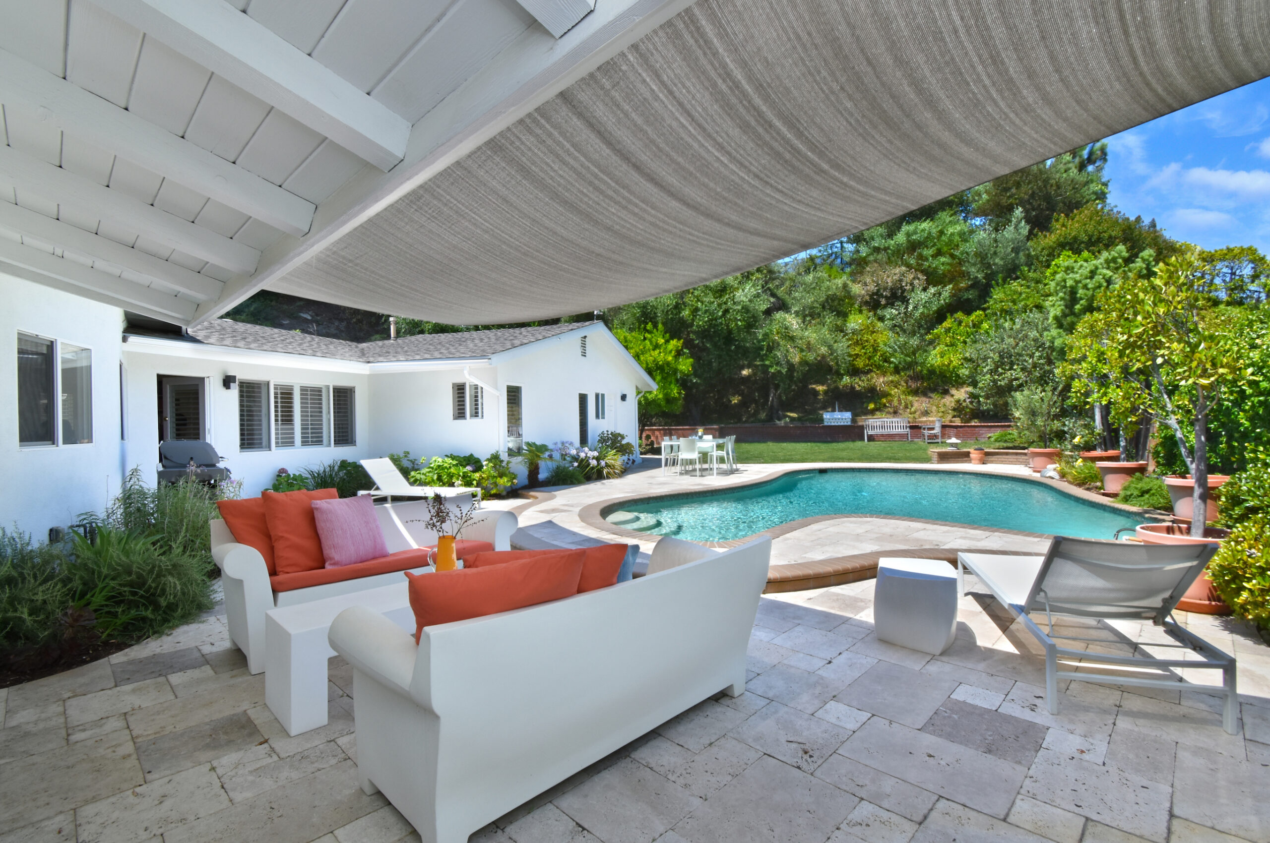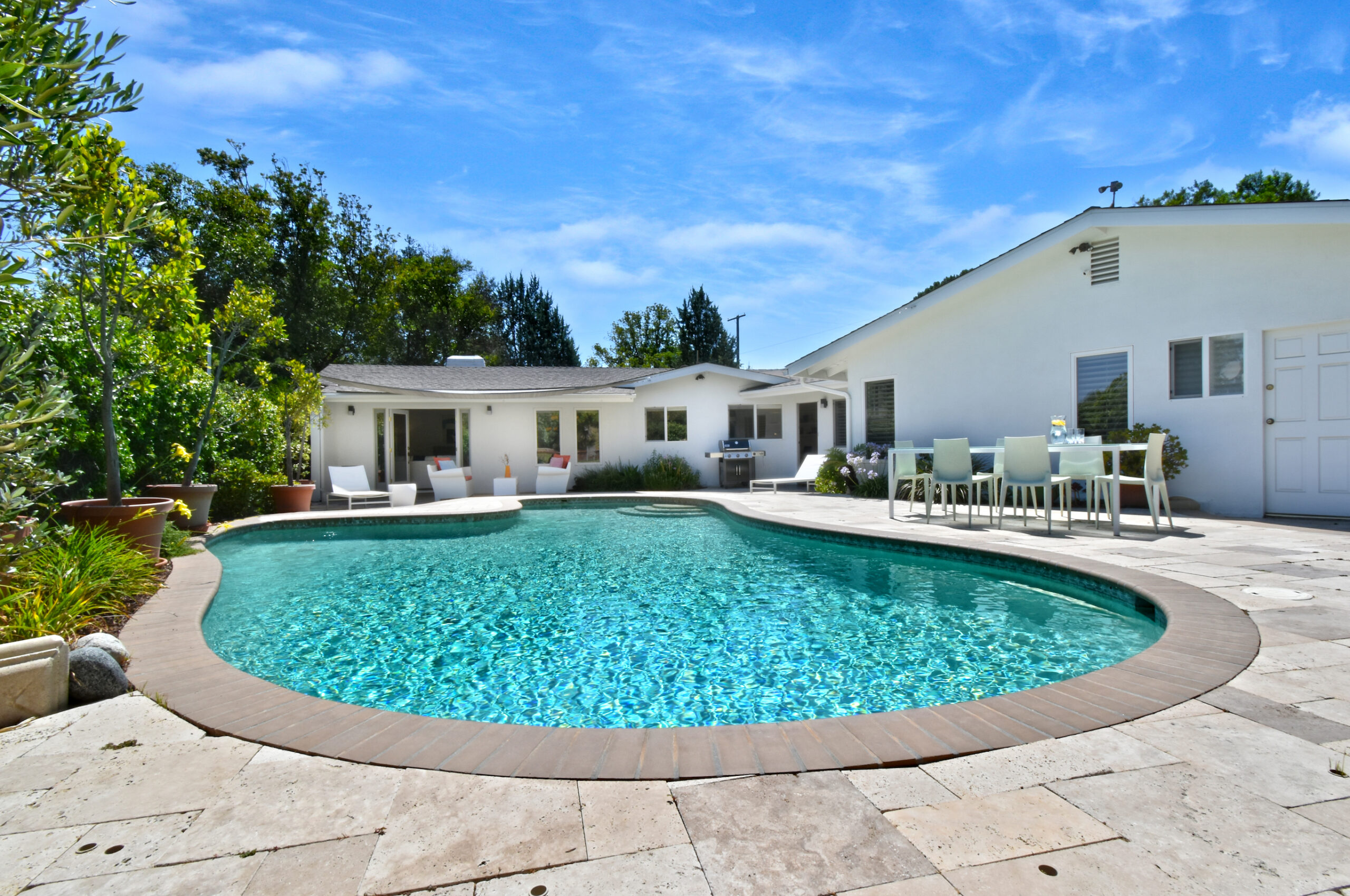 Charming Single-Level California Ranch in Encino Hills Discover this light-filled, single-level California Ranch home nestled on a quiet street in the picturesque hills of Encino. Set back from the street on one of the largest lots in the neighborhood, this home offers both privacy and space. The open and airy floor plan features a living room and dining area with exposed beamed wood ceilings and a cozy fireplace, creating a warm and inviting atmosphere. The spacious kitchen is a chef's delight, boasting granite countertops, a breakfast bar, custom cabinetry, and seamless access to the family room, making it perfect for entertaining and daily living. Each of the generously sized bedrooms provides comfort and privacy, including the primary suite, which offers a walk-in closet, dual vanities, a sunken tub, and direct access to the yard and pool. Step outside to the beautifully landscaped grounds, where you can relax and unwind by the solar-heated sparkling pool, enjoy al fresco dining on the patio, or play in the expansive grassy yard. This serene outdoor space is perfect for both relaxation and recreation. Additionally, this home is in the highly coveted Lanai Road school district and offers easy access to the Westside, making it a convenient and desirable location.