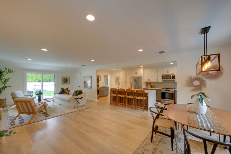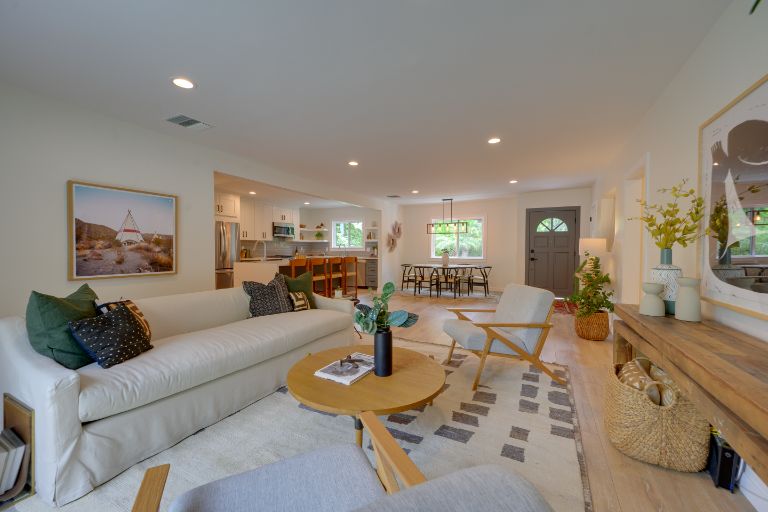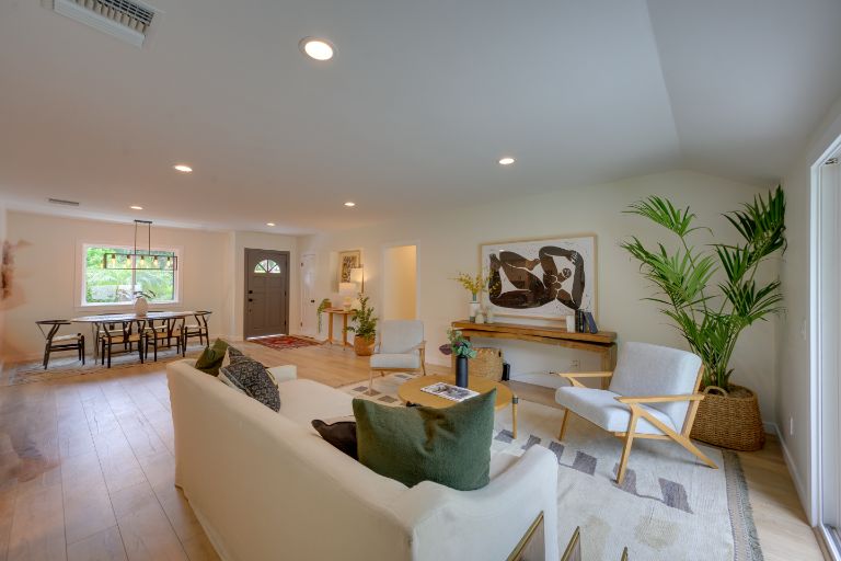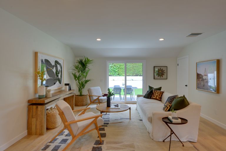Welcome to this newly updated private retreat tucked behind lush privacy hedges in the heart of Studio City. No expense was spared on this fully and exquisitely remodeled 3 bed, 2 1/2 bath, 1,600 sq ft home. The well thought out open floor plan flows seamlessly from the living room to kitchen and dining area. The living room is a warm inviting space with large sliding glass doors opening to the spacious backyard with a covered porch. The newly updated Chef's kitchen has custom cabinets, quartz counters, stainless steel appliances, and a breakfast bar. The primary bedroom has a large walk-in closet and sliding doors also leading to the expansive back yard. The en-suite spa like bathroom has a large soaking tub. The two additional bedrooms are light filled and spacious with ample closets. The beautiful backyard offers a covered patio for Al Fresco dining and professionally designed and landscaped grounds for low water use and native plants. Almost everything in this home is brand new! The list of updates include brand new copper plumbing, tankless water heater, whole house filtration system, electrical, sewer, HVAC, Windows/glass doors, Roof, drainage system, retaining wall, driveway, landscaping, ring, cameras and all of the interior finishes throughout the home. The home's convenient location is walking distance to many restaurants, the Sportsmen's Lodge shops and markets, with easy access to freeways, parks and excellent schools.