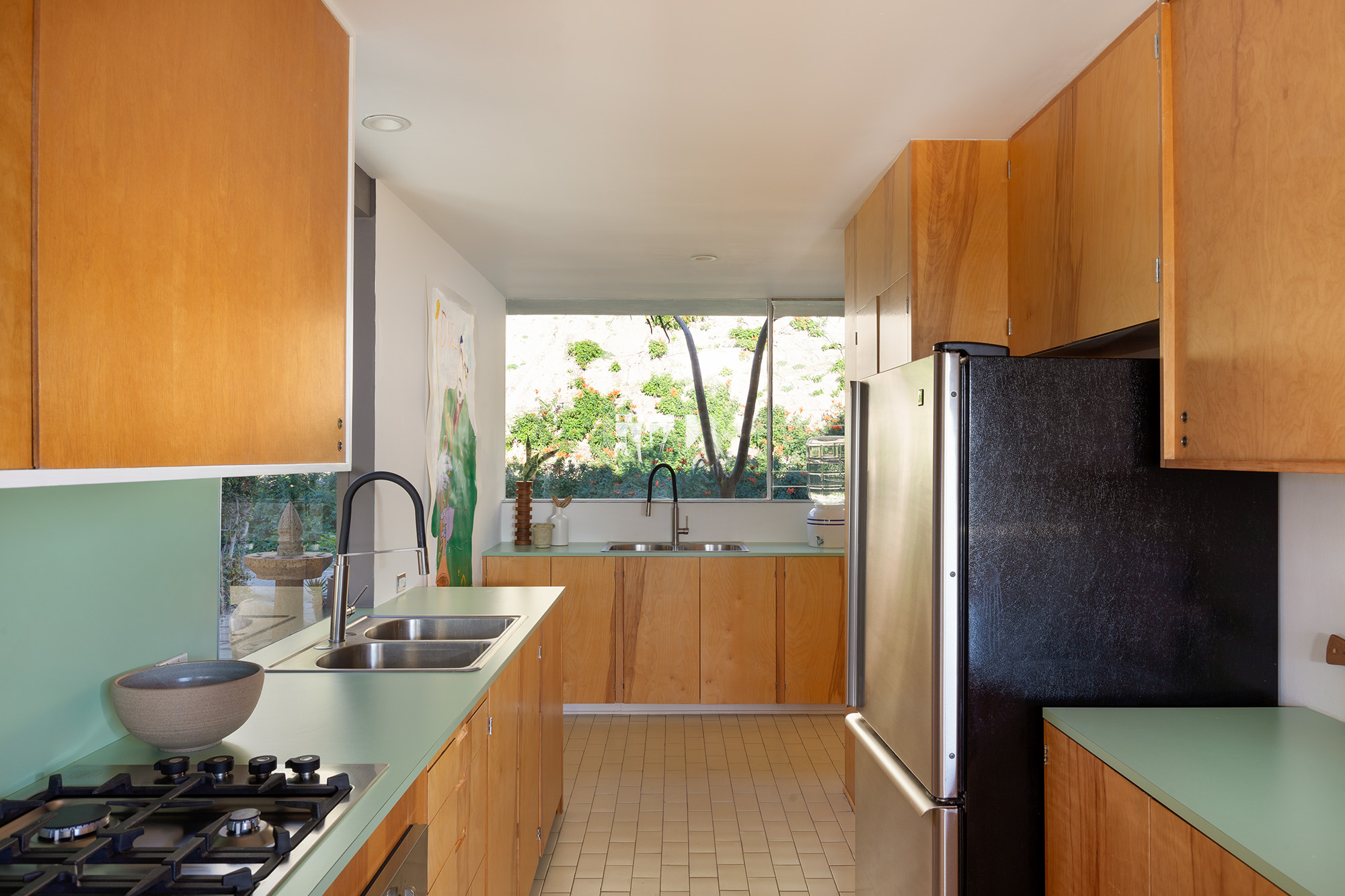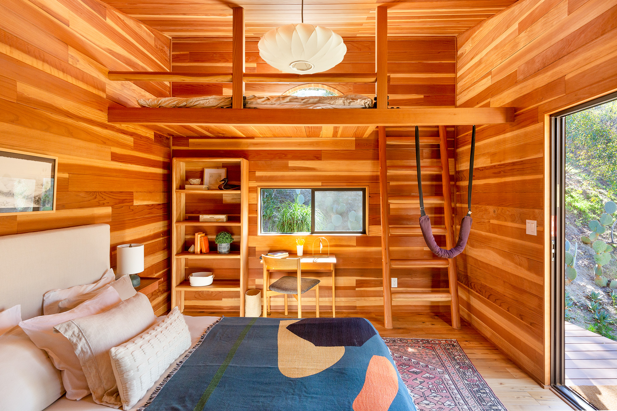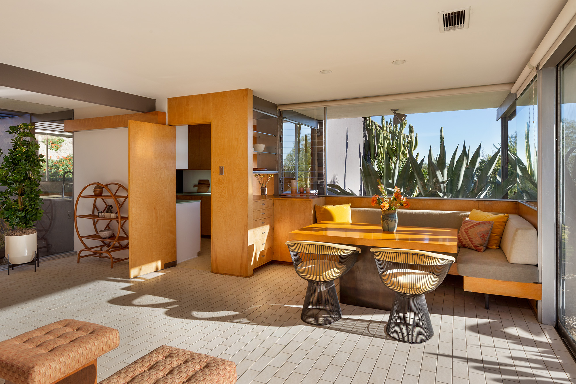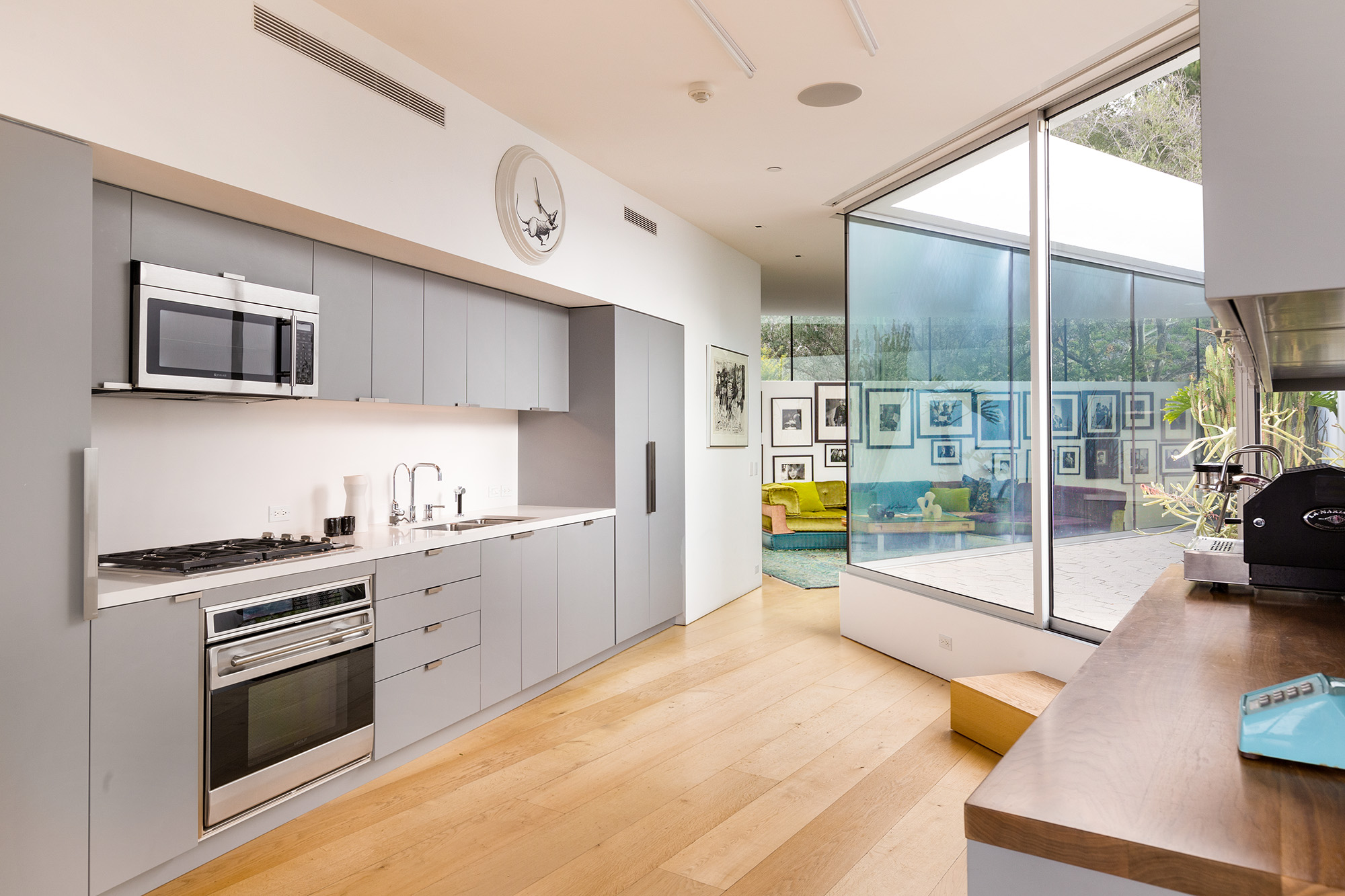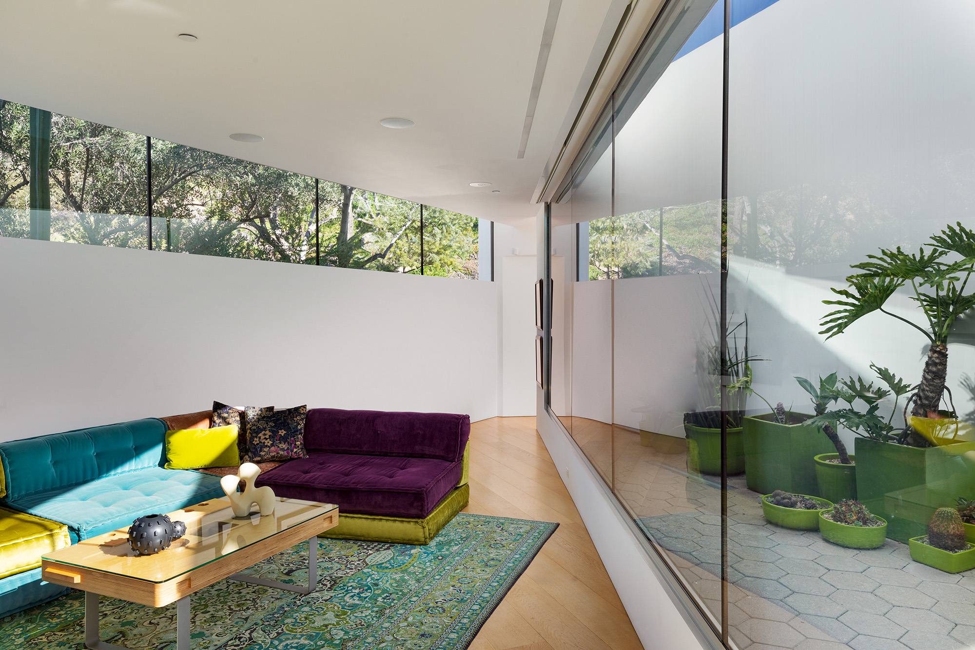 Exceptional Architectural compound offering total hilltop privacy. This stunning pair of pedigreed properties occupy an extraordinary 5.7 acre curated succulent garden. The original structure was built by Richard Neutra FAIA for his secretary, Dorothy Serulnic, in 1953. The 1,350 SF floor plan features 2 bedrooms, one bath, walls of glass, a bear valley stone fireplace and a plethora of Neutra designed built-ins, including a sofa system with record player and concealed speakers, multiple desks, shelving systems, dining room table, sliding breakfast nook and vanity. This pristine architectural masterpiece opens to a flat grassy pad with spectacular mountain and city skyline views throughout. Nearly a half a century later, award winning architect Michael Maltzan was commissioned to build the main residence. His unique design is anchored by a 7 sided structure with an interior courtyard. A sensational 875 SF addition was completed by the noteworthy architect in 2021. The entire structure has breathtaking mountain and city skyline views. The heavenly primary suite with curvilinear penny tiled bathroom looks through the courtyard and onto the dramatic view. There is a smart office area, cozy den, and a multitude of built-in storage throughout. The enormous Johnston Vidal lap pool is 50'long. The outdoor movie pavilion with wind screen and catering kitchen is the perfect place to entertain. A spectacular cabin designed by Mariah O'Brien interiors and Mind Tree Arts completes the unique estate. This special compound offers peace and privacy like no other.