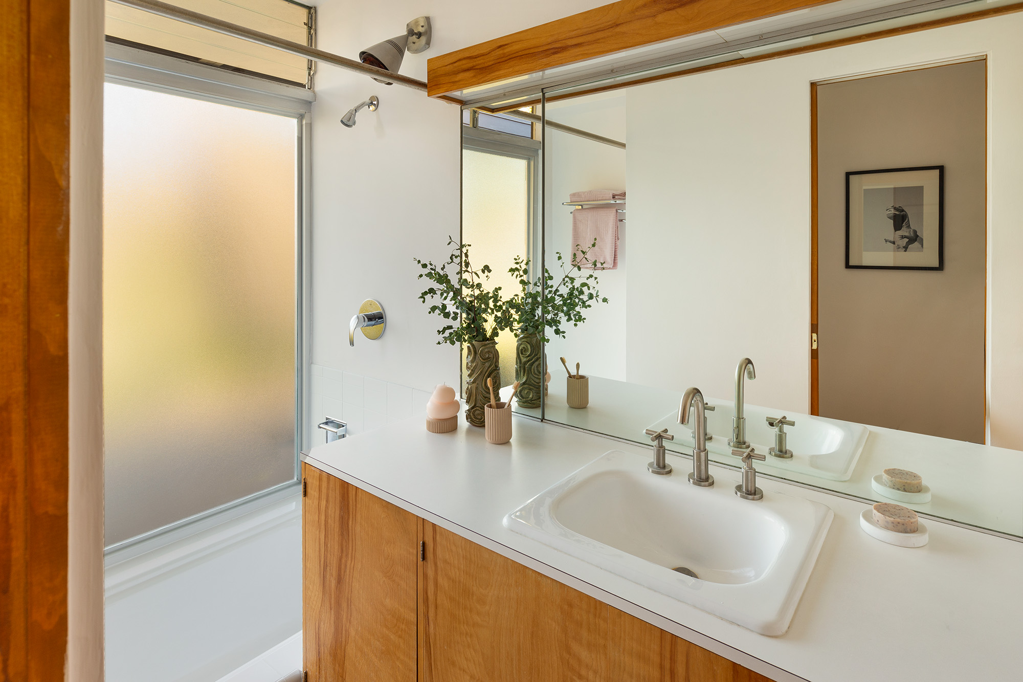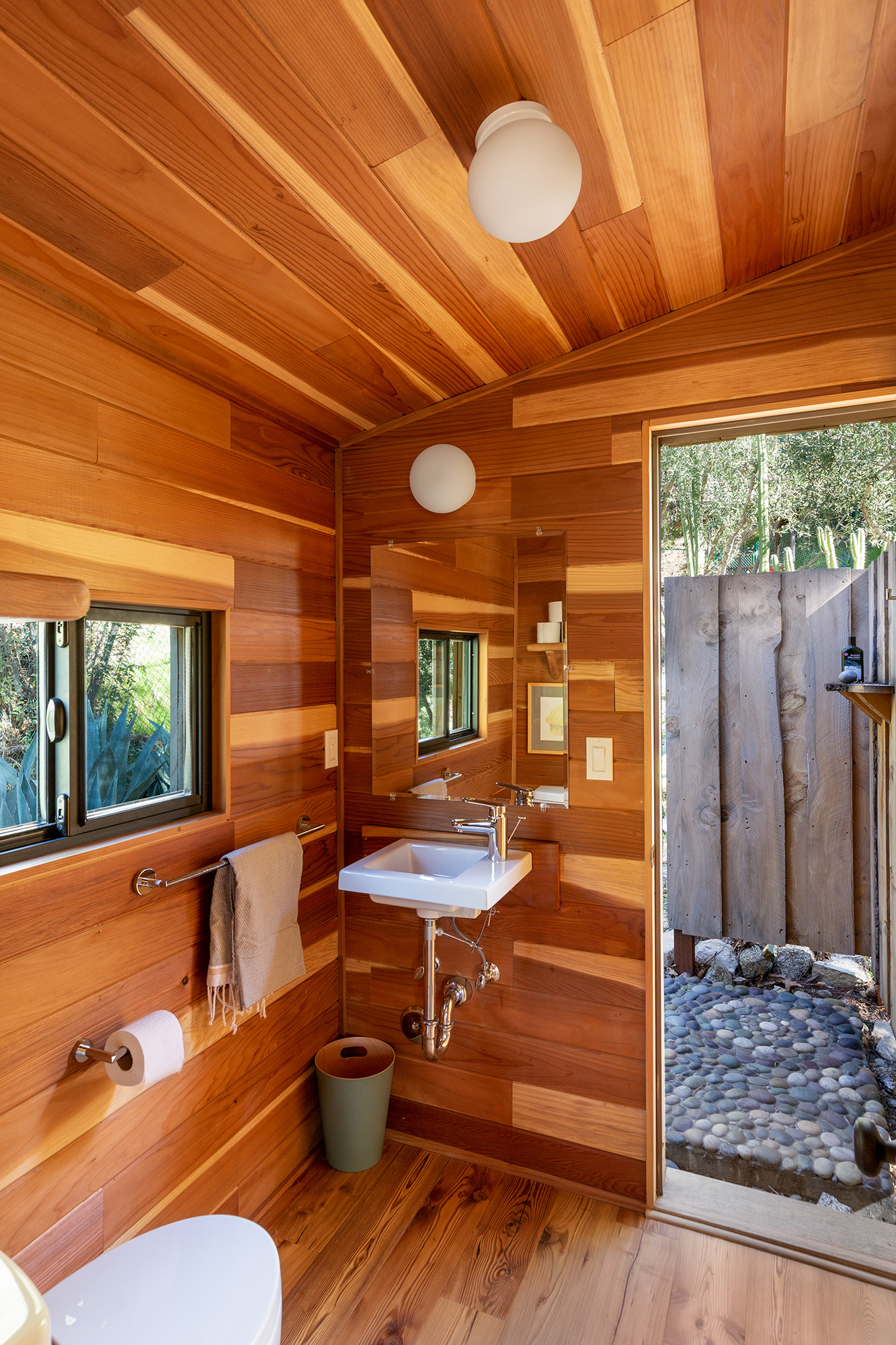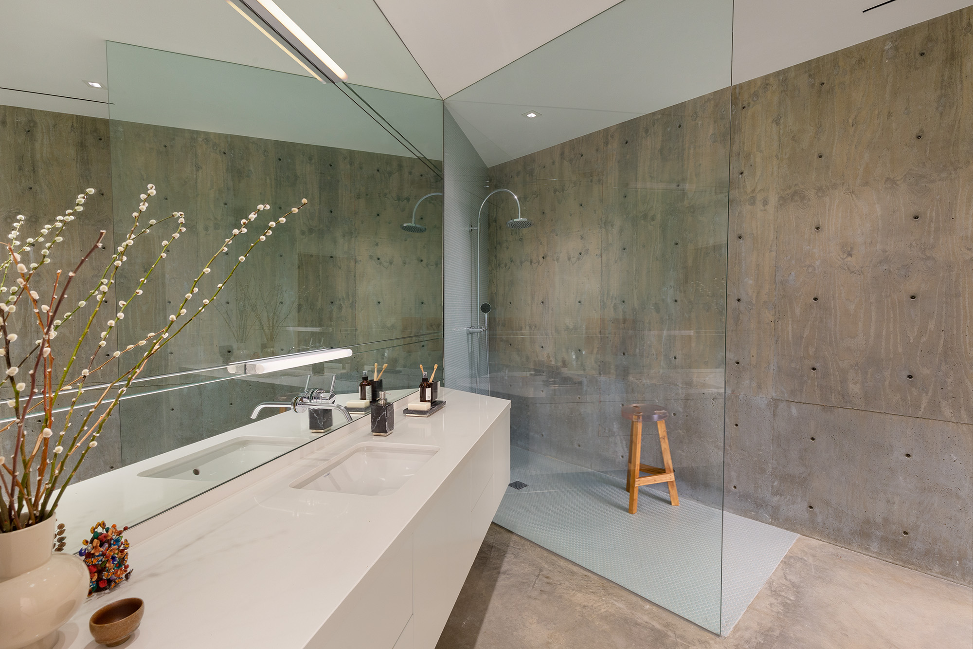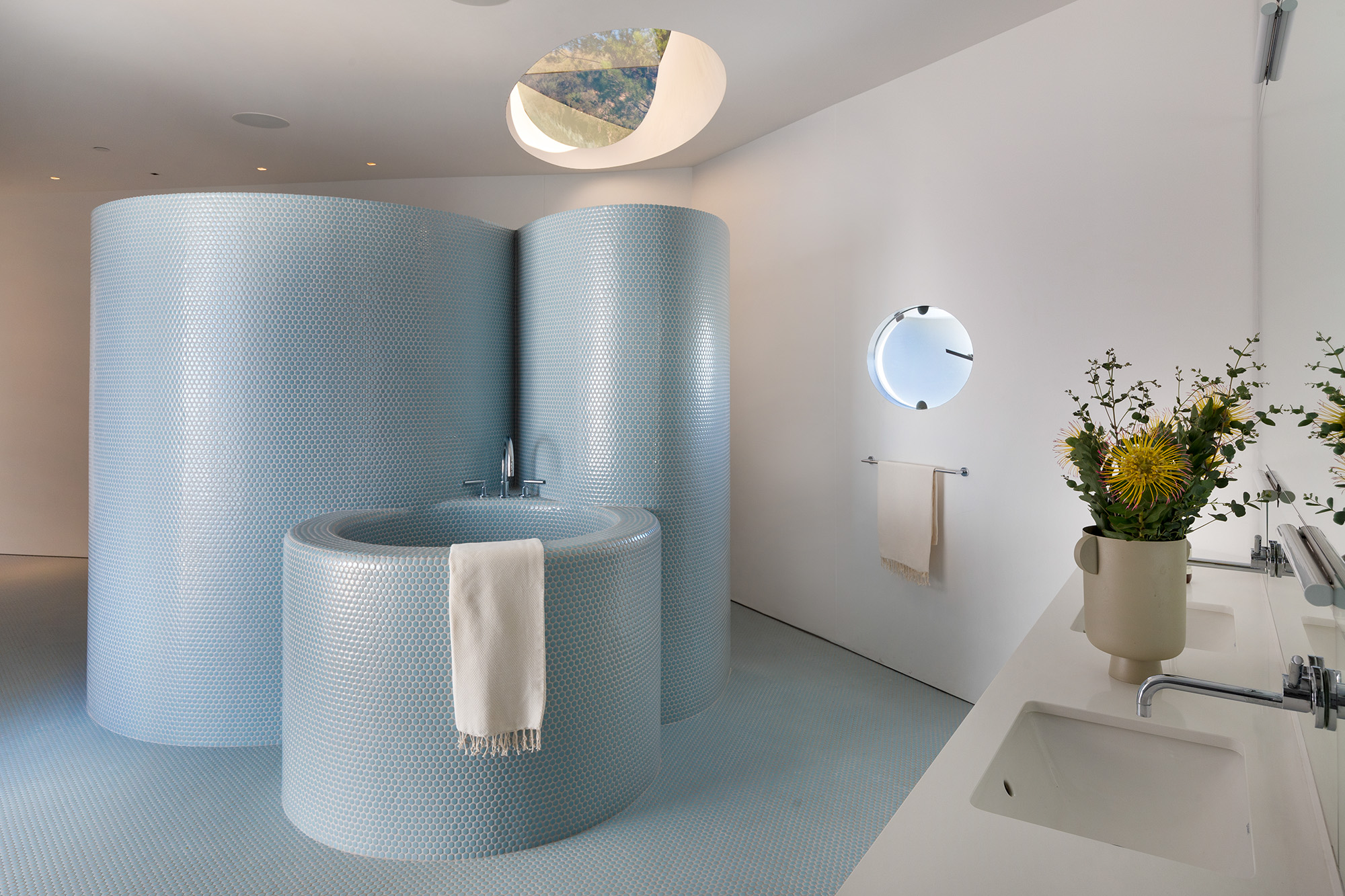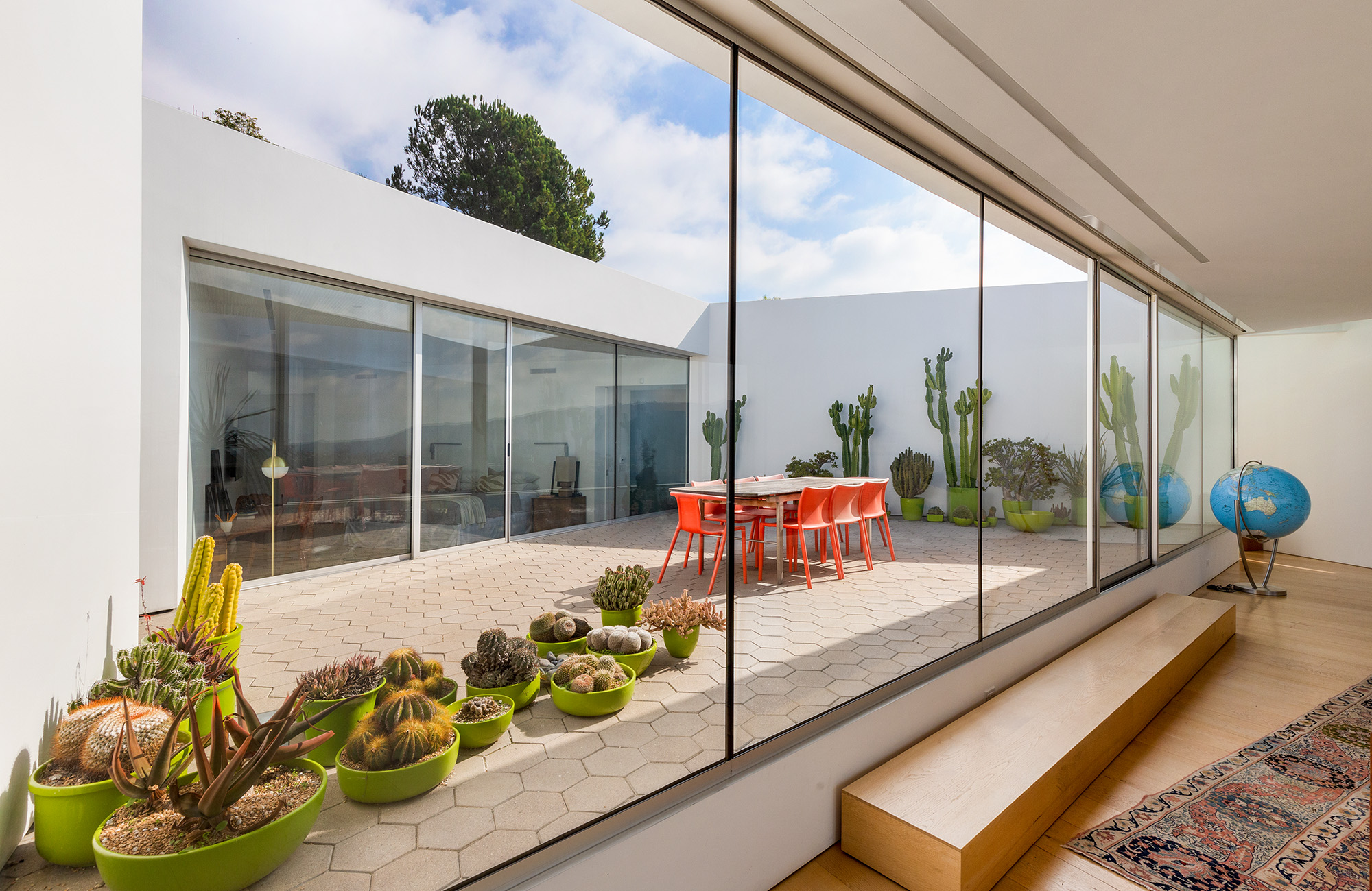 Exceptional Architectural compound offering total hilltop privacy. This stunning pair of pedigreed properties occupy an extraordinary 5.7 acre curated succulent garden. The original structure was built by Richard Neutra FAIA for his secretary, Dorothy Serulnic, in 1953. The 1,350 SF floor plan features 2 bedrooms, one bath, walls of glass, a bear valley stone fireplace and a plethora of Neutra designed built-ins, including a sofa system with record player and concealed speakers, multiple desks, shelving systems, dining room table, sliding breakfast nook and vanity. This pristine architectural masterpiece opens to a flat grassy pad with spectacular mountain and city skyline views throughout. Nearly a half a century later, award winning architect Michael Maltzan was commissioned to build the main residence. His unique design is anchored by a 7 sided structure with an interior courtyard. A sensational 875 SF addition was completed by the noteworthy architect in 2021. The entire structure has breathtaking mountain and city skyline views. The heavenly primary suite with curvilinear penny tiled bathroom looks through the courtyard and onto the dramatic view. There is a smart office area, cozy den, and a multitude of built-in storage throughout. The enormous Johnston Vidal lap pool is 50'long. The outdoor movie pavilion with wind screen and catering kitchen is the perfect place to entertain. A spectacular cabin designed by Mariah O'Brien interiors and Mind Tree Arts completes the unique estate. This special compound offers peace and privacy like no other.