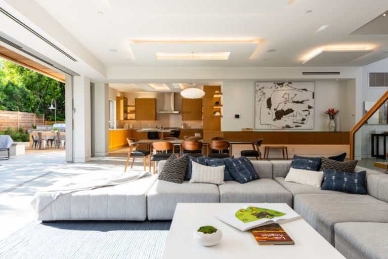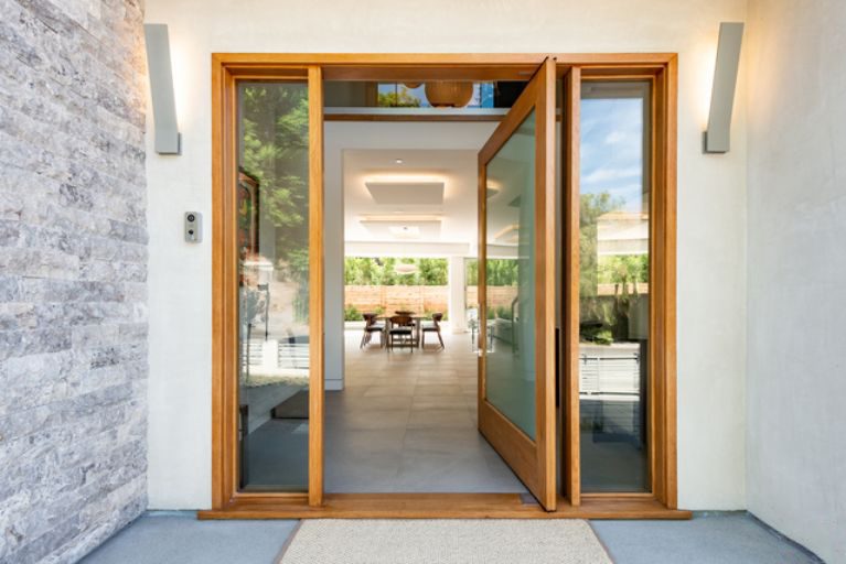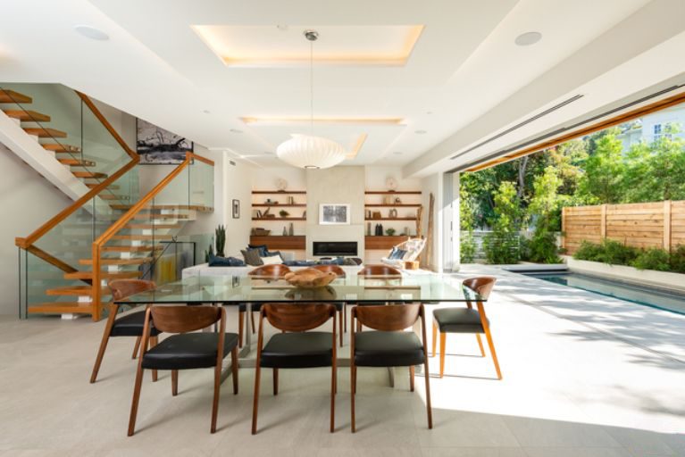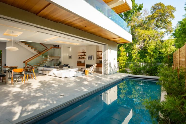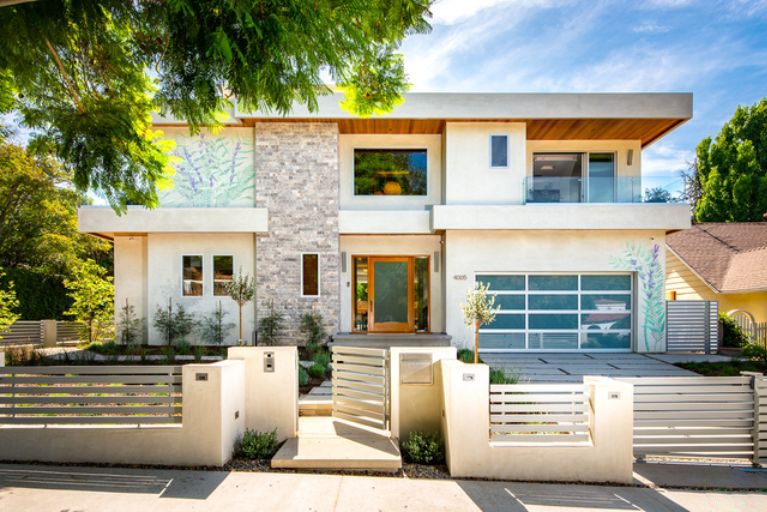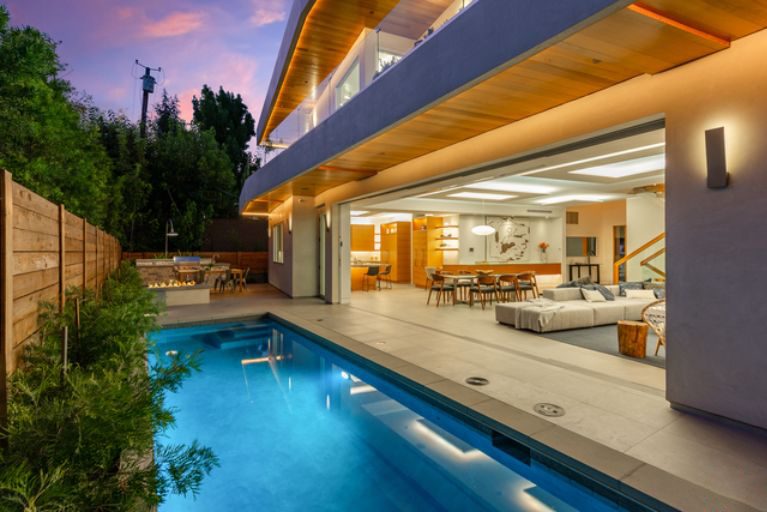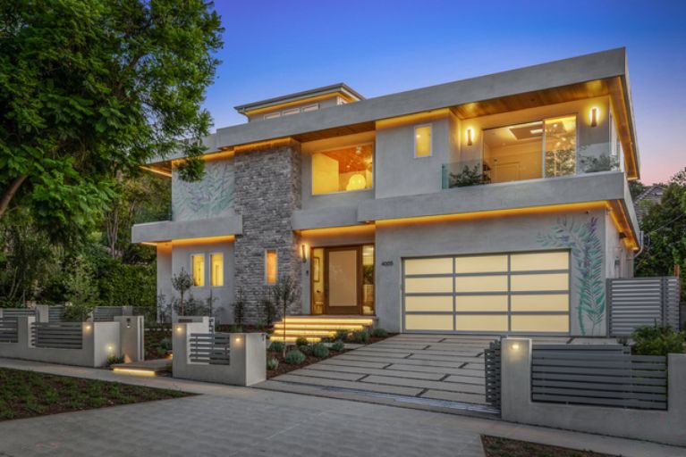 Impeccable & sophisticated masterpiece. Enter through a massive white oak door into the grand entry where you'll be immediately welcomed by this warm modern design. With an abundance of custom lighting & natural light throughout, plus an open floor plan, you are sure to be pleased. The gourmet chef's kitchen boasts rift white oak cabinetry, a Miele 6 burner stove, double oven & an approximately 9' island with beautiful quartzite counters throughout. Fleetwood doors effortlessly create a seamless indoor/outdoor flow allowing easy access to the backyard that features a sleek pool, built-in BBQ area & fire pit: this is a true entertainer's paradise. Take the floating glass staircase to the breathtaking master suite which hosts a spa bathroom, large walk-in closet & its own balcony with fruit trees/plants. The bright basement has a wine cellar, full bar, gym, movie theater & bedroom suite. This is a true architectural beauty in prime Sherman Oaks that offers a truly elevated lifestyle.