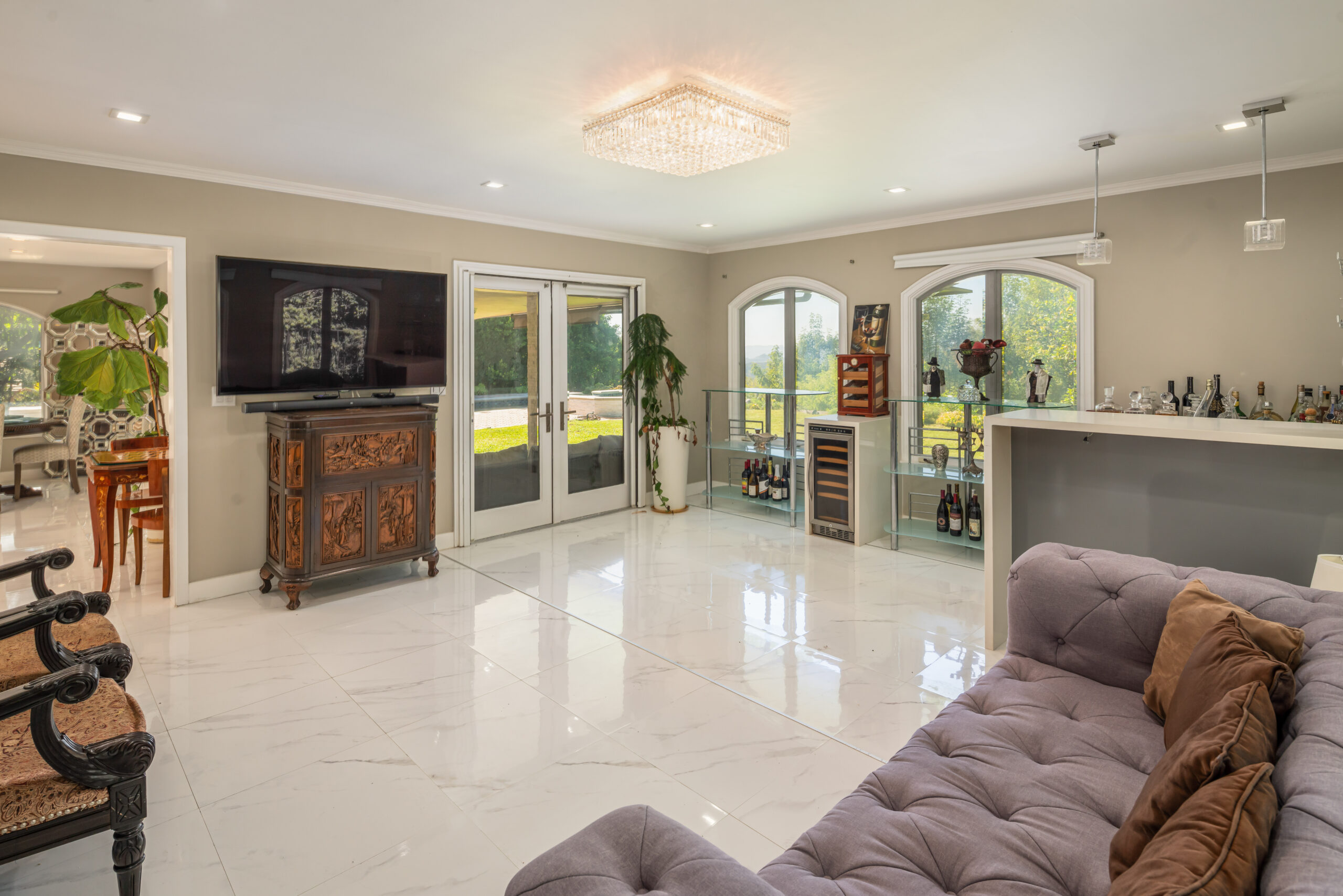 Tucked away on a serene, flat pad along a peaceful street in the coveted Trousdale Estates, this impressive contemporary home epitomizes privacy and sophistication. Set behind a private gate and expansive motor court, the property offers a rare combination of seclusion and elegance in one of Los Angeles' most prestigious neighborhoods. Inside, the residence boasts a fluid open floorplan, designed to embrace natural light at every turn. Oversized windows frame breathtaking canyon views, creating an atmosphere of tranquility while seamlessly connecting the interior spaces to the lush outdoor surroundings. The home's expansive living and dining areas provide an ideal setting for both grand entertaining and intimate gatherings. The luxurious primary suite is a true retreat, offering sweeping views of the manicured yard and sparkling pool. With ample space, a spa-like bathroom, and exquisite finishes, the suite provides the ultimate in comfort and relaxation. This rare gem in Trousdale Estates offers a unique opportunity to experience refined, private living in a world-class location.
