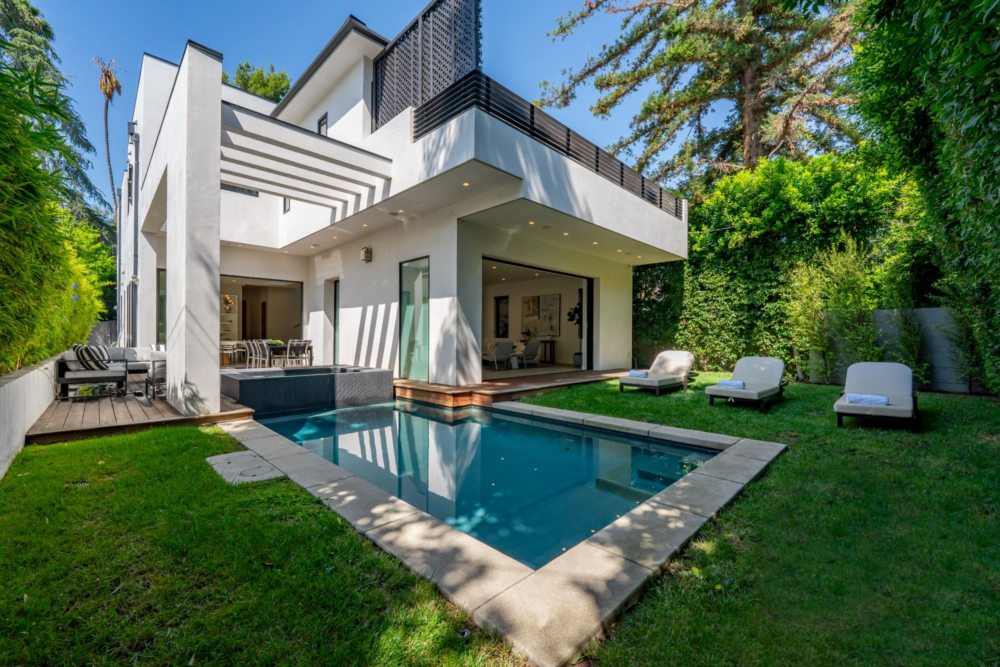 This extraordinary contemporary residence is discreetly nestled in the highly coveted neighborhood in Sherman Oaks, South of Ventura Boulevard. This newly constructed 5-bedroom, 6-bathroom sanctuary effortlessly integrates cutting-edge design features. The reclaimed wood exterior conceals the natural beauty, eventually revealing the Ipe deck and a custom pivot door that welcomes you into an open-concept layout. The high ceilings and seamless natural lighting throughout the skylights, while retractable shades provide privacy when needed. The generous living space entices you to the backyard through sliding pocket doors, inviting a seamless connection between indoors and outdoors. The dining area effortlessly flows into an outdoor lounge, pool, and spa area. At the same time, the open kitchen boasts a Caesar Stone island, premium stainless steel appliances, and a spacious walk-in pantry. The master suite presents an expansive private balcony, a spacious walk-in closet, and an opulent spa-inspired bathroom. Accompanying these, there are four en-suite bedrooms. The meticulously landscaped grounds provide an oasis with a pool and spa, crafting a perfect setting for relaxation and entertainment. Conveniently situated within walking distance to exceptional restaurants, coffee shops, schools, shopping, and the recently established shopping center featuring Erewhon and Equinox, all adding to the unparalleled convenience of this location.