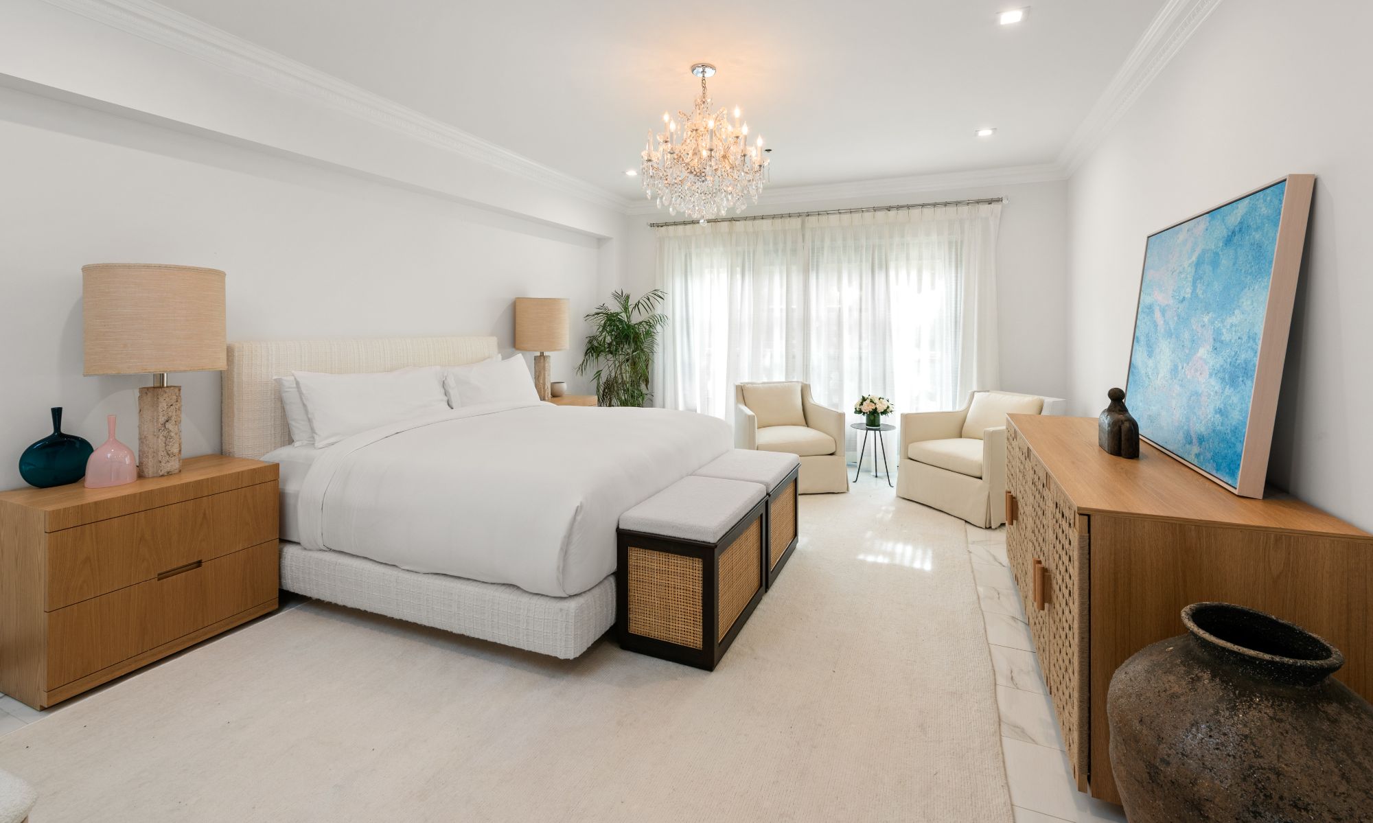Recently renovated unit at the iconic Le Faubourg St. Louis, one of the most prestigious full-service residences in prime Beverly Hills. Experience luxury in this 3,000 SF unit with designer touches throughout including marble and wood flooring and updated kitchen with stainless steel appliances. French doors throughout the unit create a bright and airy feeling in the living and dining rooms. Spacious primary suite offers dual walk-in closets, marble bathroom with floating vanity, and oversized glass shower. 2 addition ensuite bedrooms provide ample space. Furniture is available for purchase. Residents enjoy valet parking, concierge services, controlled access, 24/7 security, a fitness center, pool, and spa. Three side-by-side parking spaces are available for added convenience. The building is also nearing completion of a $1M renovation to the interior courtyard. Situated on the famed Maple Drive, Le Faubourg is just minutes from Rodeo Drive and the finest shopping and restaurants of Beverly Hills.