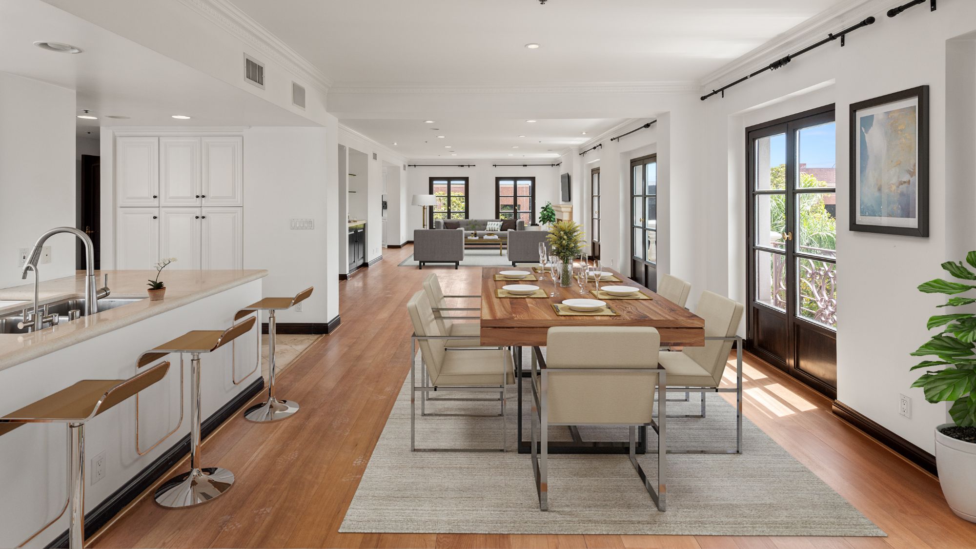 Renovated unit at the iconic Le Faubourg St. Louis, one of the most prestigious full-service residences in prime Beverly Hills. Experience luxury in this nearly 3,000 SF unit with designer touches throughout including marble and wood flooring and updated kitchen with stainless steel appliances. French doors throughout the unit create a bright and airy feeling in the living and dining rooms. Spacious primary suite offers dual walk-in closets, marble bathroom with floating vanity, and oversized glass shower. 2 addition ensuite bedrooms provide ample space. Residents enjoy a fully renovated court yard, valet parking, concierge services, controlled access, 24/7 security, a fitness center, pool, and spa. Three side-by-side parking spaces are available for added convenience. The building is also nearing completion of a $1M renovation to the interior courtyard. Situated on the famed Maple Drive, Le Faubourg is just minutes from Rodeo Drive and the finest shopping and restaurants of Beverly Hills.