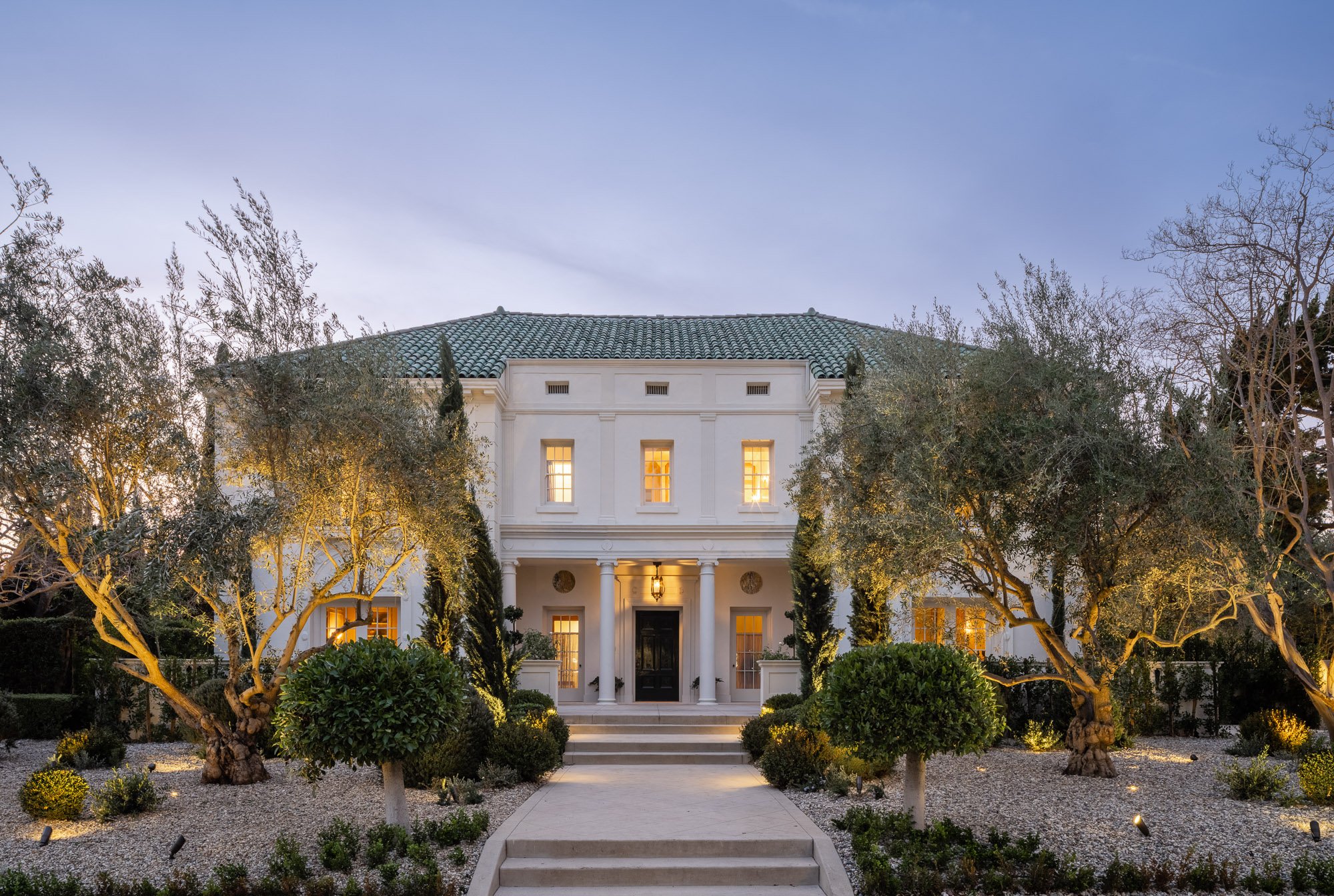 VILLA VENDOME |1917, Frank Meline, Italian Renaissance Villa In The Palladian style expanded to approx 11,000 SF, on a massive 3/4 acre lot. Meticulously updated inside & out by Plus Development & AD100's Jake Arnold in a highly bespoke style with an extraordinary aesthetic; retaining much of the original detail but thoroughly bringing it up to contemporary standards in design & functionality with superb execution. One of a kind compound with large side motor court, multiple structures - gym, garage, guesthouse with a 75' swimmers pool & spa. The main floor with 12 & 13 foot ceilings consists of a large foyer - featuring Breccia de Vendome marble casements, limestone floors, formal living room with fireplace, original crown molding, french doors, library with bleached mahogany bookcases, the home office with original paneled walls and french doors to a private garden. Kitchen banquet is fully equipped with LaCanche restaurant-grade gas stove/ovens, secondary chefs-grade kitchen adjacent. Step down into the grand scale dining room with a double facing fireplace separating the sun room, a favorite room for many with 3 window walls looking into the rear garden, equipped with auto shades. Second floor with 5 fully ensuite bedrooms - the primary bedroom is located at the western wing taking full advantage of the rear garden exposure - automated window coverings, fireplace, art TV and large patio overlooking the massive grassy rear yard. 3rd level is a flexible space perfect as a suite or playroom with a secret sleeping/reading loft, full bathroom and additional storage. The cinema and adjacent speakeasy are located on the lower level with another powder room, laundry facilities and more storage. Outside off the motor court is a 2 car garage, Pool bath, second floor fully self contained Guest Apartment and a separate gym overlooking the pool. On the south side is the outdoor dining lanai, firepit and spa.