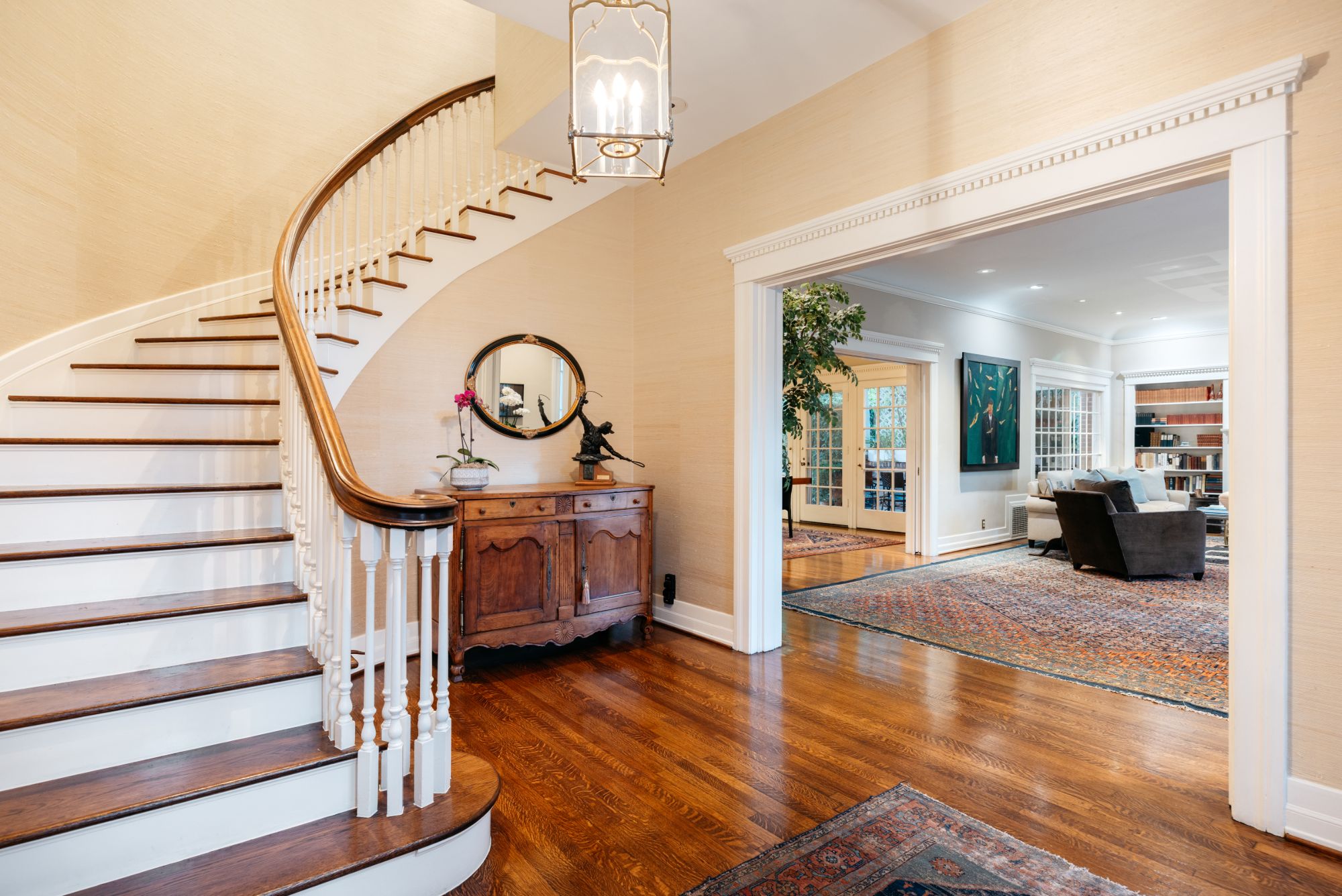 Welcome to this stately brick two-story Windsor Square home. Set far back from the street with beautiful trees and a long driveway makes it one of the most magical properties on one of the best blocks in the neighborhood. Open the front door to a majestic wrap-around staircase and details throughout that take you to a different era with a Paul Williams vibe. This is the first offering in 33 years with owners that have meticulously maintained the property. The home boasts 5 bedrooms 4.5 baths a generously sized primary suite with extensive closet space and an elevator. The formal living room has soaring ceilings with exquisite details a gorgeous fireplace and a window alcove with custom seating. There is a huge formal dining room, television room with bar, and powder room. Oversized kitchen with a beautiful breakfast room overlooking the backyard. The backyard has a recently redone pool that's positioned perfectly leaving an extensive lawn for entertaining and playing!