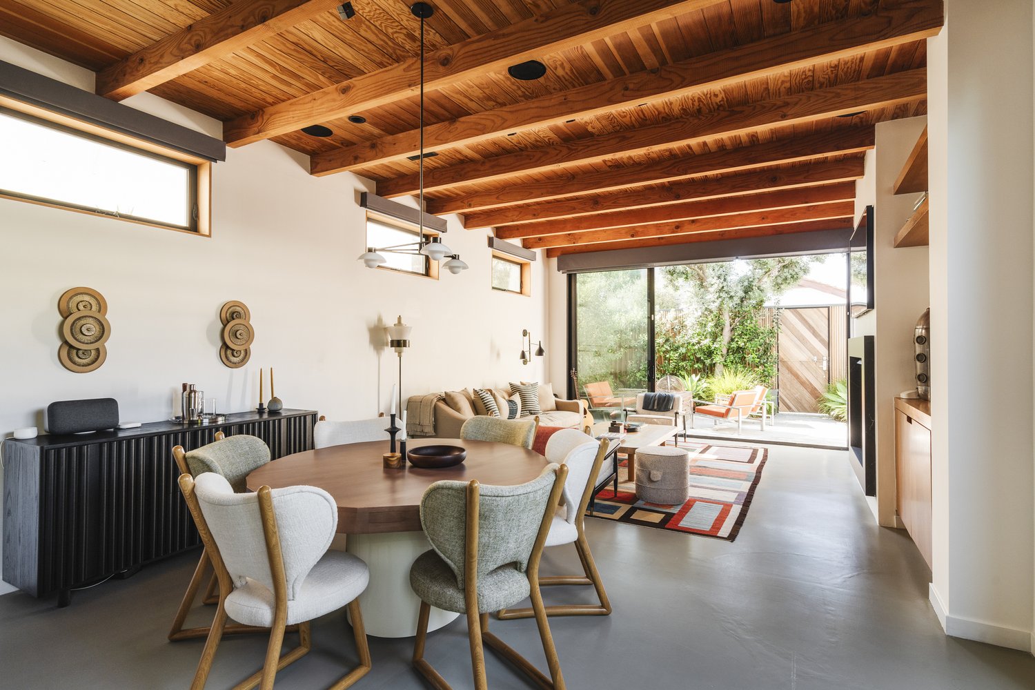 Presenting this ideal oceanview architectural hideaway blending organic materials to form a boho-chic beach sanctuary, with a prime location near the world-famous Venice sign and just moments to the boutiques along Abbot Kinney Boulevard, skatepark, and boardwalk. The spacious floor plan is perfect for entertaining and enjoying an indoor-outdoor living experience under sunny California skies. The living room transitions effortlessly into the dining area, accented by floor-to-ceiling windows, natural stone, and exposed wood beams. The midcentury-inspired gourmet kitchen features sleek cabinetry, center island with wine refrigerator, Caesarstone countertops, and state-of-the-art appliances. Clerestory windows throughout invite natural light within. An expansive primary suite offers lofty ceilings, Juliet balcony, and spa-inspired bath with designer clawfoot tub, Terrazzo floors, dual vanities, Waterworks Murano glass, double rainwater shower, and shimmering Carrara mosaics. Relax by the fire pit in the tranquil courtyard surrounded by mature leafy greenery. Enjoy the sunset and dine al-fresco amidst sweeping views of the ocean and cityscape from the rooftop deck, complete with built-in barbecue, plush bench seating, bar, drought-tolerant flora, and sauna. Other features include a sauna, laundry room, and additional guest rooms with expertly appointed en-suite baths. Welcome to a fresh lifestyle offering supreme comfort and lasting value near the numerous entertainment, shopping, dining, and recreational options of this iconic oceanside destination.