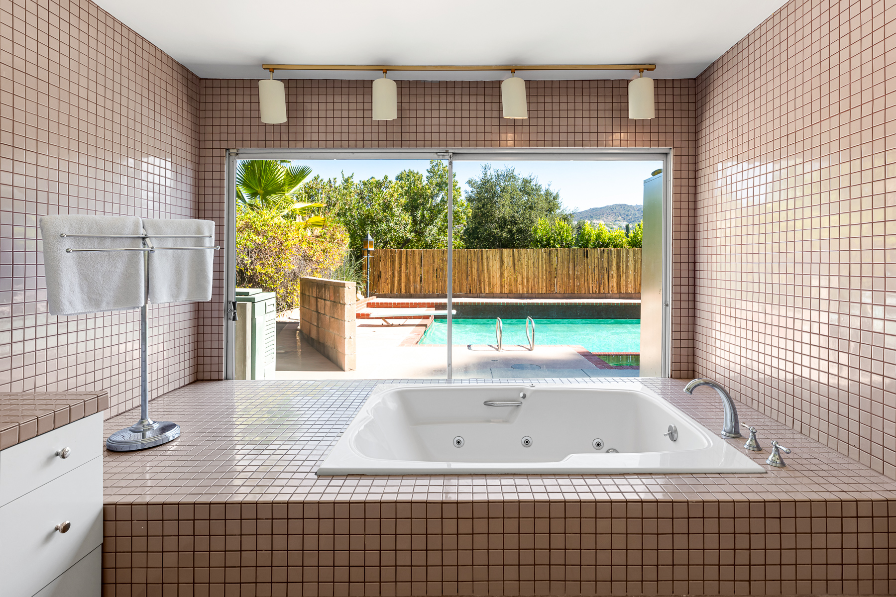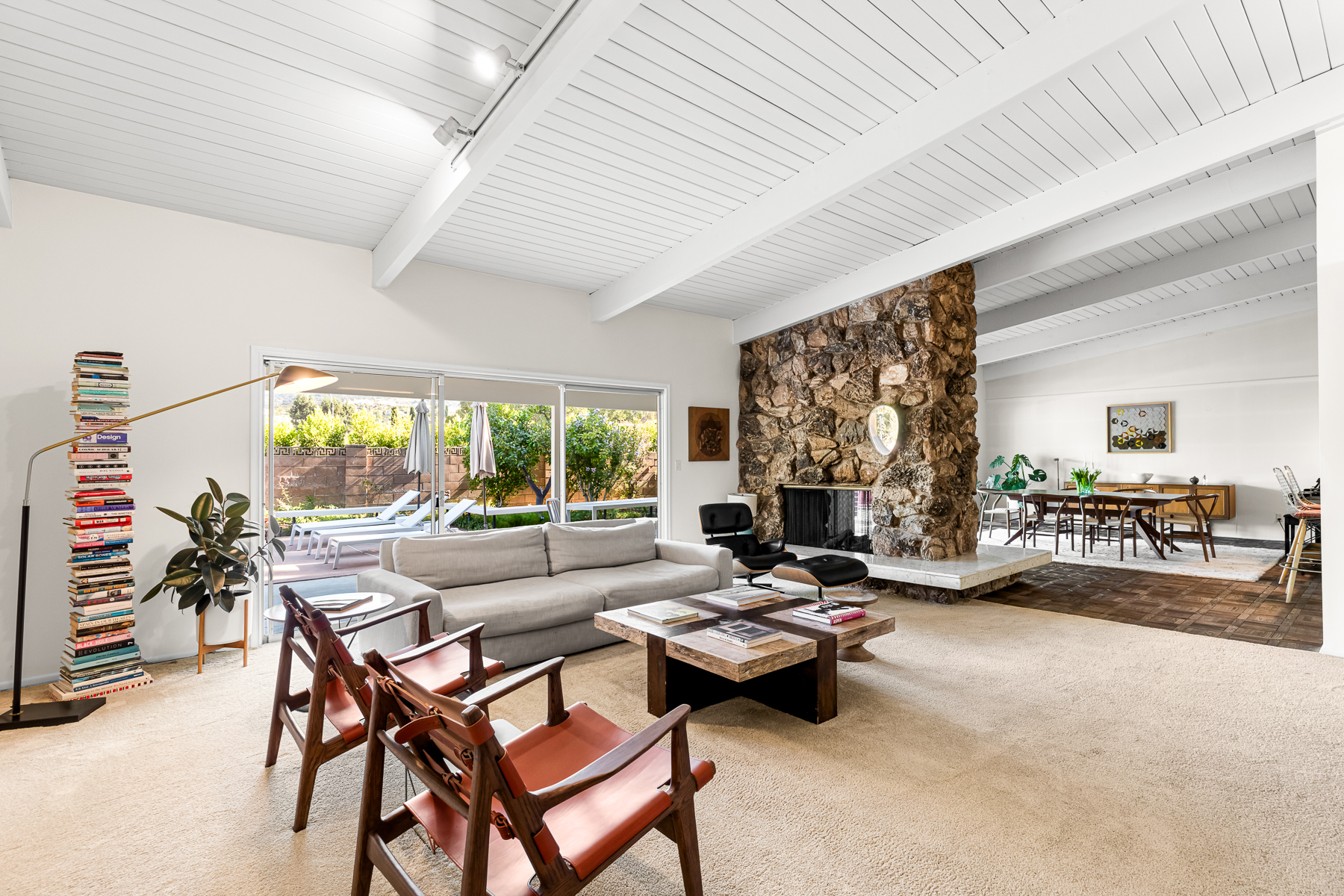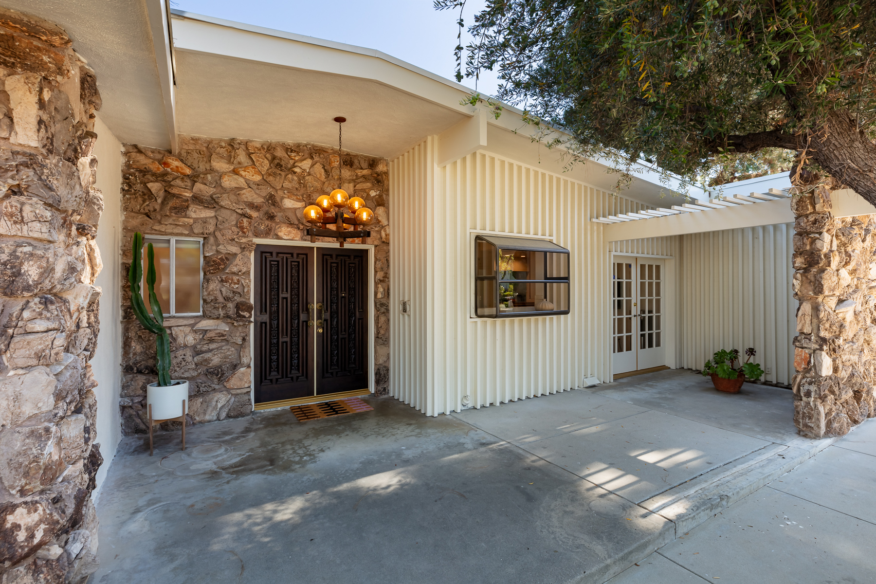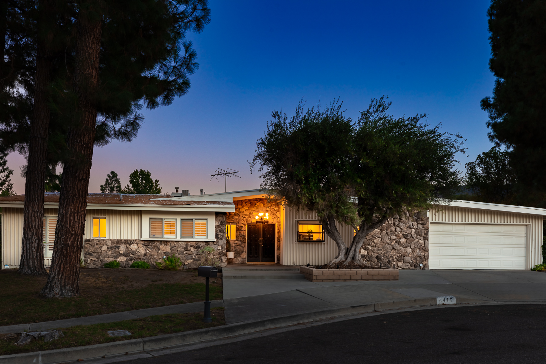 Welcome to this charming mid-century ranch home situated on a serene cul-de-sac south of the Boulevard in Tarzana. Crafted by famed architect Charles DuBouis, this residence boasts four bedrooms, three bathrooms, and a stunning pool and spa in the backyard. Towering mature trees welcome you to this timeless mid-century masterpiece. Upon entering, you will be greeted by an inviting open-concept living space highlighted by a beautiful stone double-sided fireplace that opens to the living and dining rooms. The home's classic and iconic mid-century architecture is showcased throughout, with vaulted ceilings, clean architectural lines, and large windows coming together to create an airy and bright living space to be enamored by all. The primary suite offers a spacious bedroom space with his and her walk-in closets and an additional dressing area. The primary suite bathroom is filled with an abundance of natural light and features a luxurious tub perfectly positioned to enjoy scenic views out the large format window. The home also hosts three additional generously sized guest bedrooms. Large sliding glass windows frame the vibrant beauty of the backyard. The backyard area provides the perfect space for entertaining, boasting a large pool and spa, a covered patio space, multiple dining areas, and a spacious, lush yard with mature trees offering both shade and privacy. The home is conveniently located in close proximity to a bountiful amount of dining and shopping options, three private country clubs, and multiple tranquil hiking/biking trails. Discover the limitless possibilities of this iconic mid-century residence.f