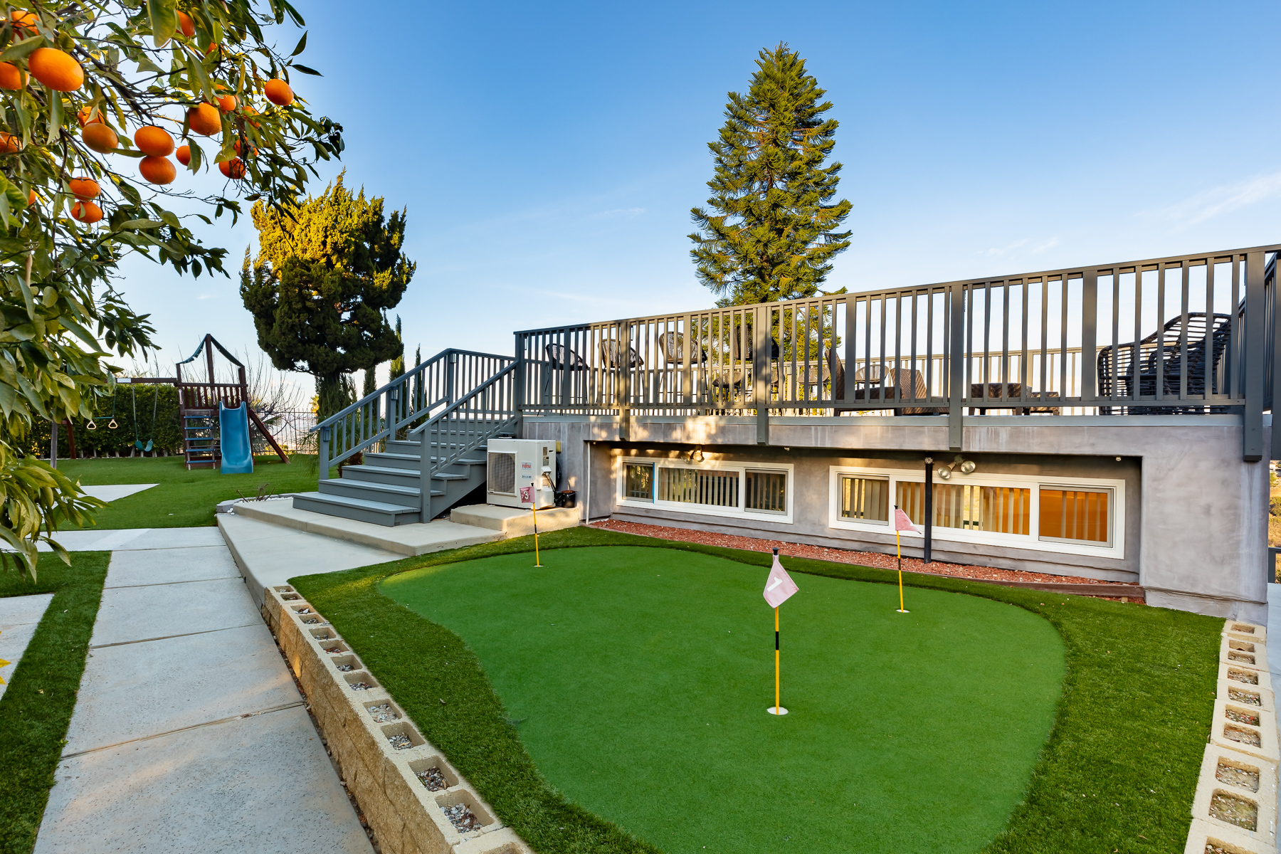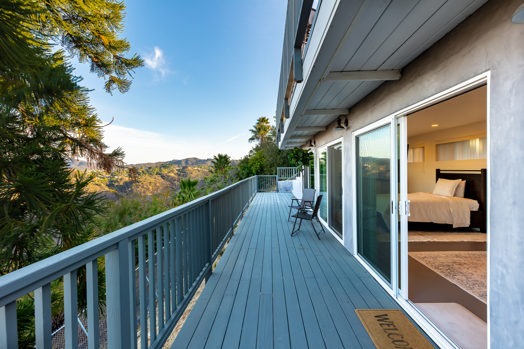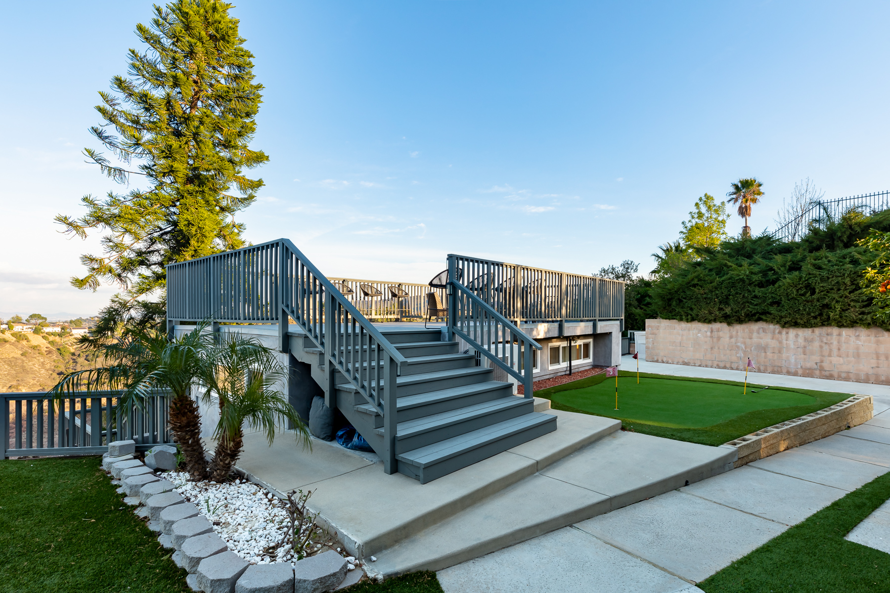 Discover this breathtaking view property perched at the pinnacle of beautiful Woodland Hills. Where nature meets city elegance, this property boasts unobstructed 180-degree views of Corbin Canyon, offering a picturesque backdrop for your everyday life. As you enter through the gated long driveway, you are welcomed into a private sanctuary that feels like a retreat. The two-level design showcases four generously sized bedrooms, including a spacious primary suite that offers stunning views of the city lights of San Fernando Valley. A beautifully updated primary bathroom and extensive walk-in closet round out the primary suite. The large upstairs bonus room presents limitless possibilities, offering the perfect space for a home theater, a vibrant playroom, or even a creative workspace. Three additional bedrooms and a bathroom also reside upstairs. Step outside to a backyard and experience the jaw-dropping views that highlight the outdoor space. The backyard features a charming detached guesthouse complete with a rooftop viewing deck, a putting green, and environmental friendly landscaping. With an expansive floor plan and recent upgrades, this home strikes the perfect balance between embracing a night in and hosting larger gatherings with family and friends. Enjoy exclusive access to the association pool and tennis court, conveniently found at the top of Winnetka Ave. Located near a plentiful of shopping, dining, and recreational options, this property not only offers a home but a dynamic lifestyle.