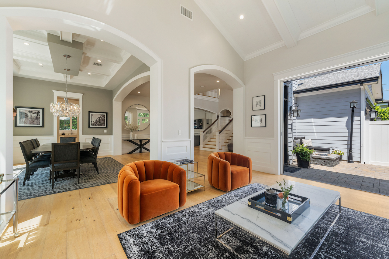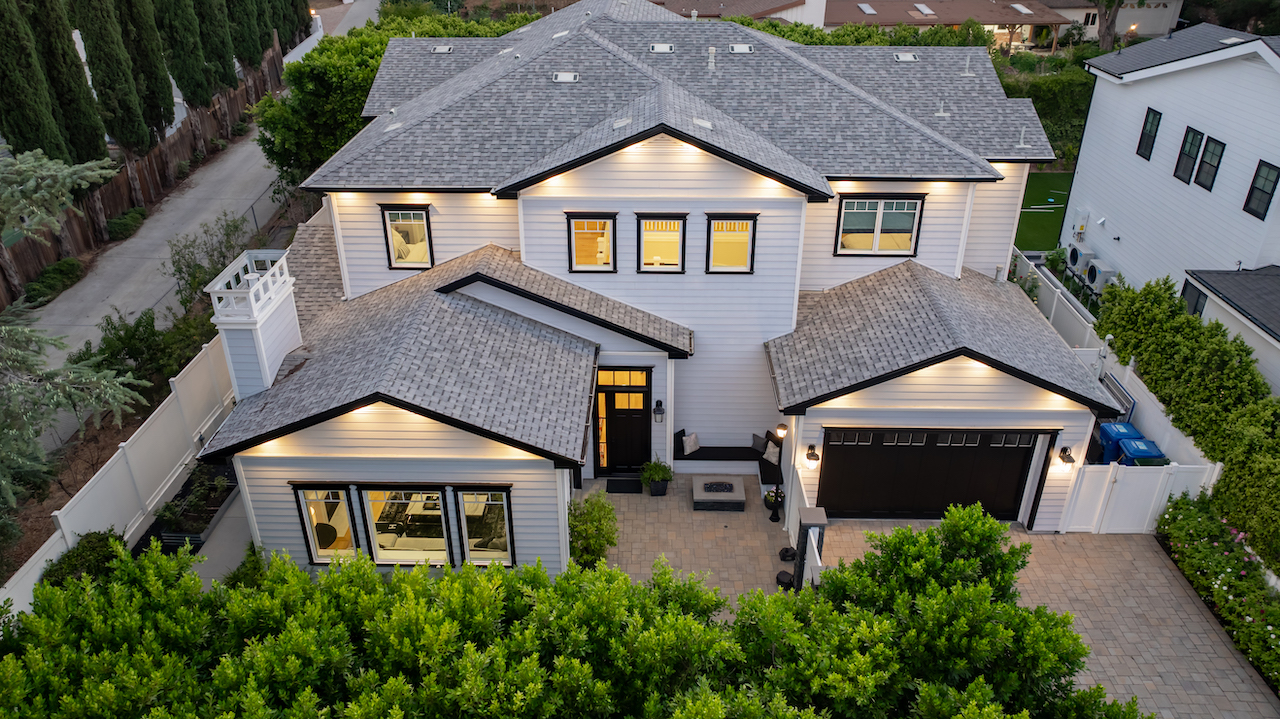 Privately tucked south of Ventura Blvd, this elegant 5 bedroom, 6 bathroom estate offers a seamless blend of timeless sophistication and modern comfort. Thoughtfully designed, the home opens with formal Living and Dining Rooms that flow effortlessly into a spacious Family Room, complete with fireplace and Fleetwood pocket doors that extend the living space to resort-style grounds. At the heart of the home, the Chef's Kitchen is both striking and functional, showcasing a dramatic marble island, custom cabinetry, professional-grade Sub-Zero/Wolf appliances including an 8-burner range and a generous walk-in pantry. Outdoors, a private grassy yard sets the stage for entertaining and relaxation alike, with a zero-edge pool and spa with cascading waterfall, multiple fire pits, built-in BBQ with sink, and covered patio for year-round enjoyment. Mature landscaping and private rose garden provide a serene finishing touch. Each bedroom includes its own ensuite bath, while the expansive Primary Suite offers a private balcony, custom walk-in closet, and spa-inspired bath with striking tile work, dual vanities, and a freestanding tub. Additional features include dual-zone air conditioning, Smart Home technology, surround sound, intercom system, LED lighting, and a security gate with cameras, all enhancing the home's modern livability. Just moments from Encino Commons, San Vicente Mountain Park trails, and convenient freeway access, this estate also lies within the highly sought-after Lanai School District delivering the perfect balance of luxury, privacy, and location.