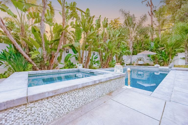 Tucked away, just south of the Boulevard in prime Woodland Hills, sits this California Luxury Dream Hideaway, where California allure meets Bali enchantment. This secluded retreat boasts a gated property with lush greenery and a stunning saltwater pool and spa. This home features elegant living areas and a remodeled kitchen dressed with quartz counters, new cabinetry and stainless steal appliances. Upstairs, find three bedrooms, including a primary suite with a spa jet tub. This home also features a fully equipped guest house which includes a full kitchen and bath. Experience the epitome of luxury living in this serene escape. Conveniently located near Woodland Hills golf course, Ventura Boulevard, Topanga Mall, The Village, many shops and restaurants, 101 and 405 freeways. This home is available for long or short term rent and can come furnished or unfurnished. The owner pays for pool and gardening Services. Charging station available for electric cars.