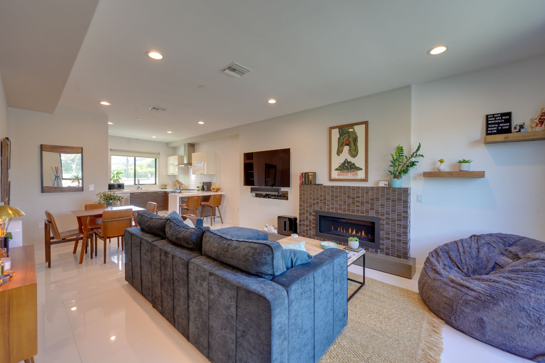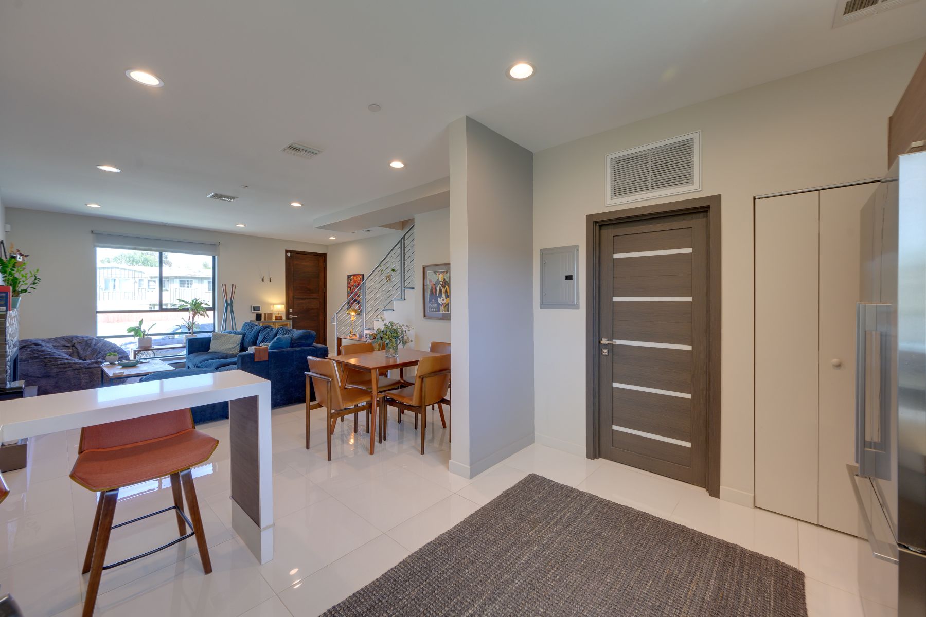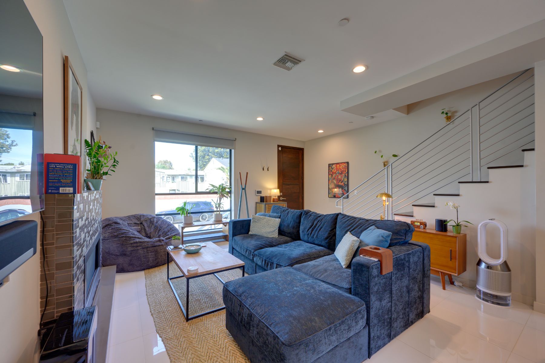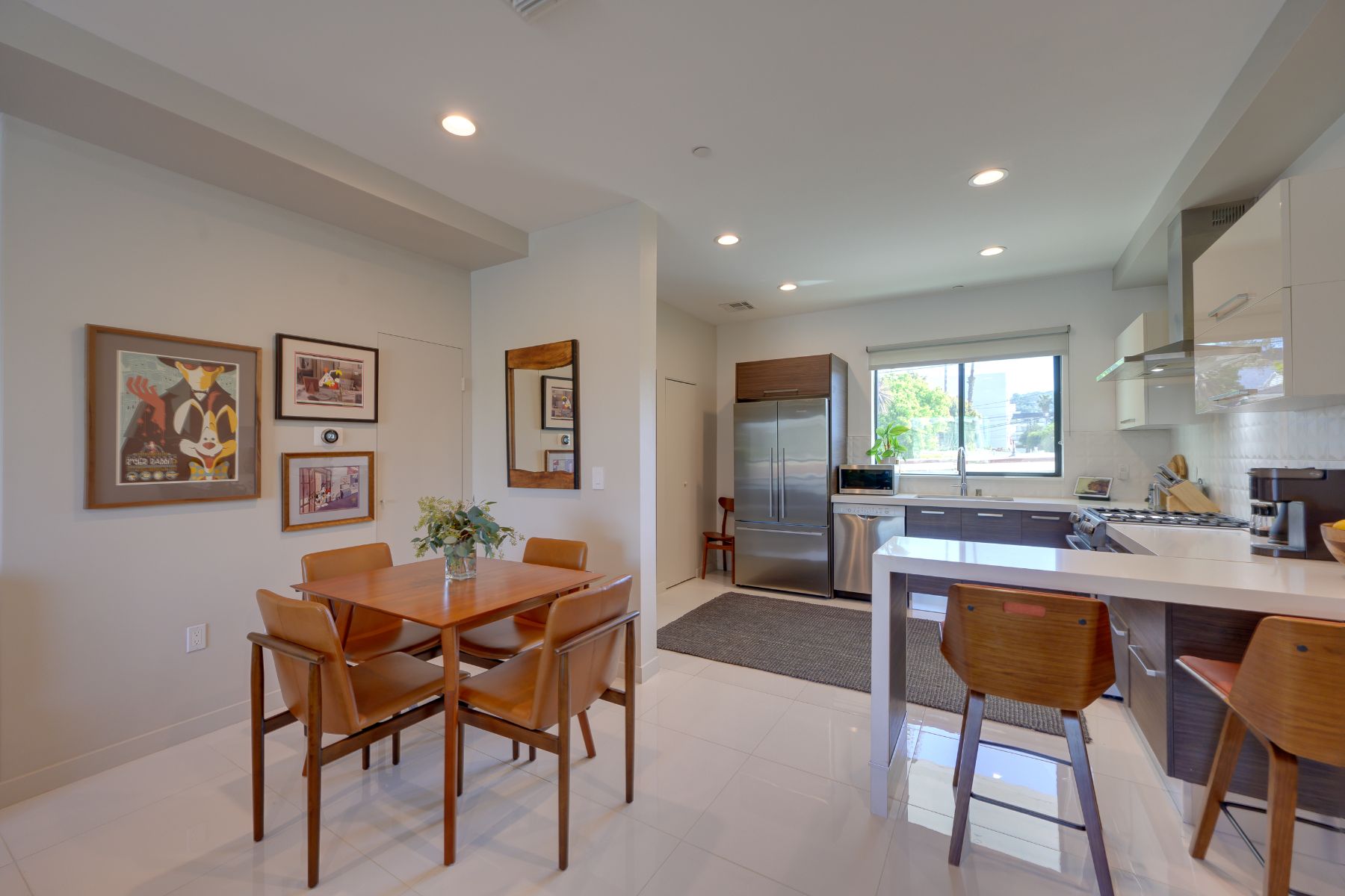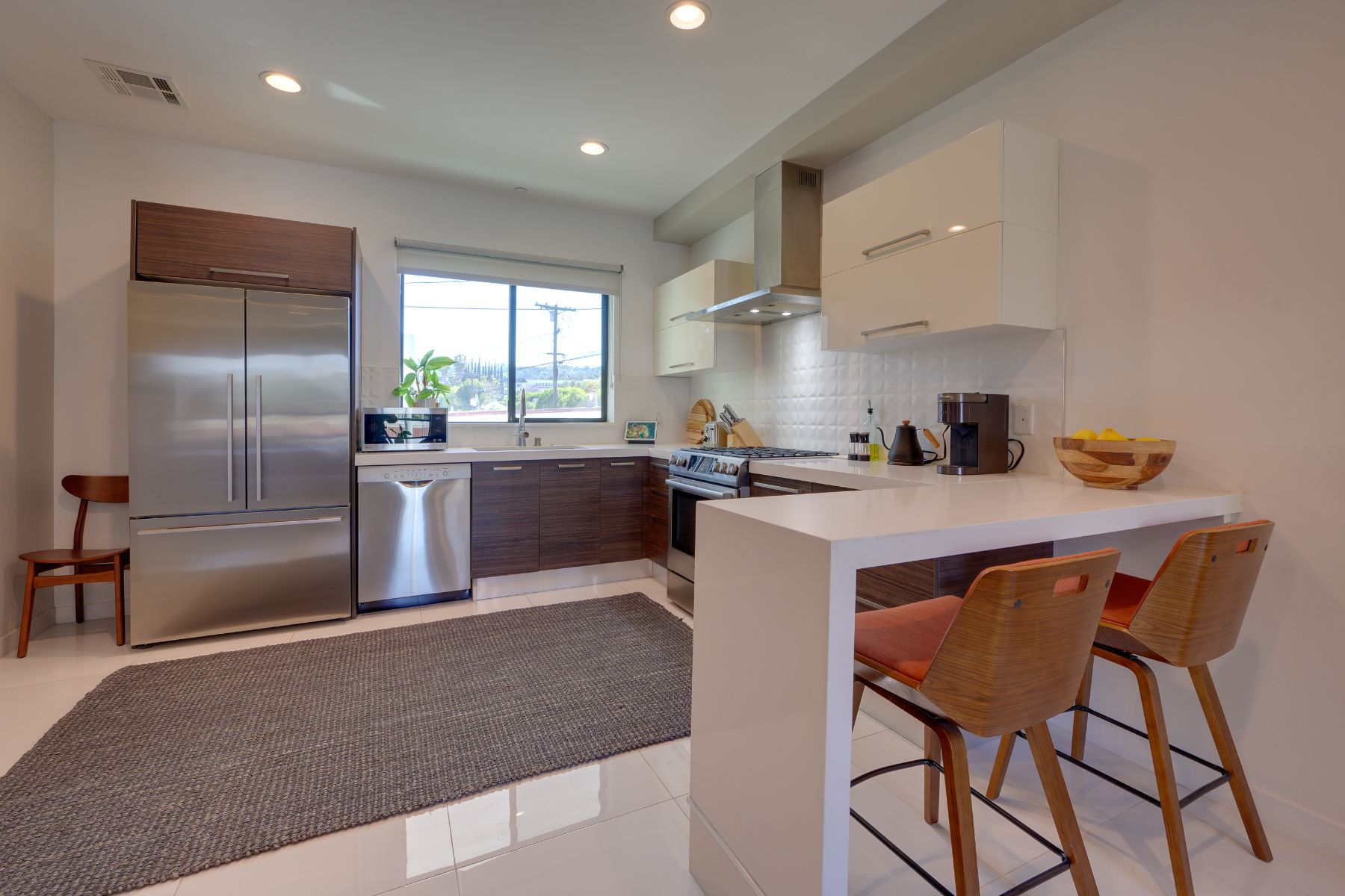 This sophisticated modern construction with designer details throughout is conveniently located in the heart of Sherman Oaks. This elegant open floor plan unit is an entertainer's dream with a dramatic living room and dining area with a showpiece fireplace, high ceilings and an abundance of natural light. The spacious kitchen features Bosch and Paykel appliances, Italian imported cabinets, and Caesarstone counters with eat-in island. Upstairs, the idyllic master suite is a serene retreat with large picture windows and patio with hillside views, spacious walk-in closet, and a spa-like bath with a dual sink vanity, glass enclosed shower, and free-standing tub. The guest bedroom has hillside views and boasts a designer en-suite bathroom. Also featured is in-unit laundry, wired LAN internet ports throughout, and two garage parking spaces with designated electric vehicle outlet. Located in the highly sought-after Sherman Oaks community just a short distance to Ventura Boulevard, Westfield mall, parks, shopping, restaurants and more.