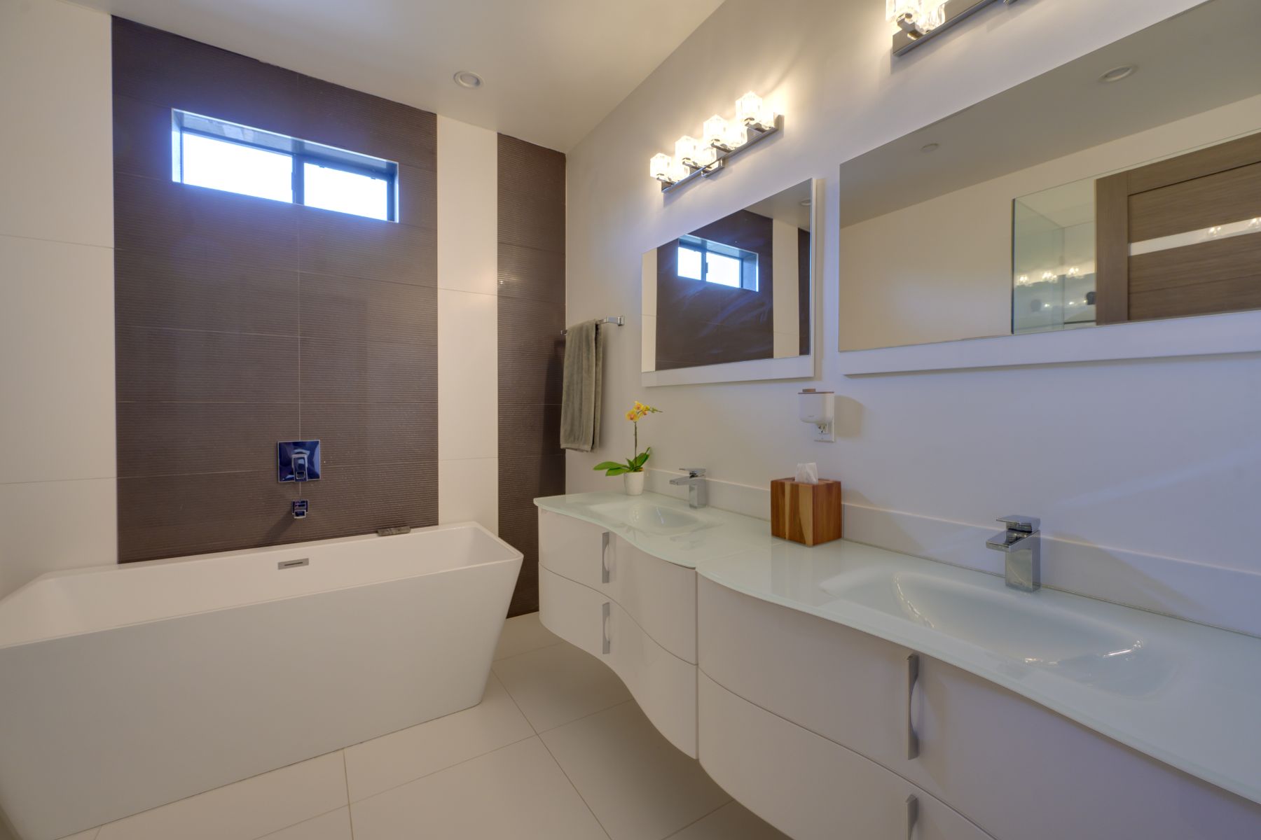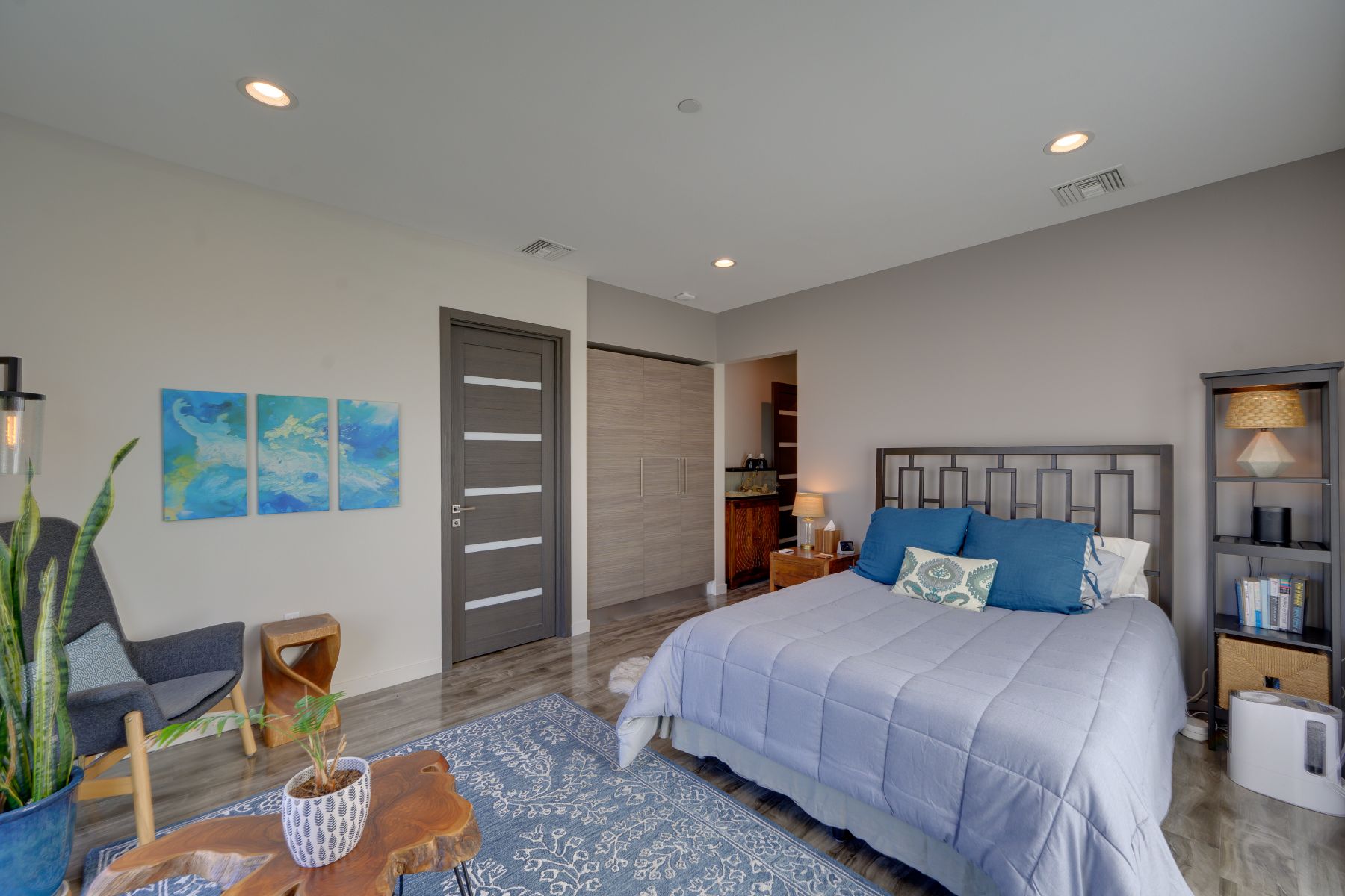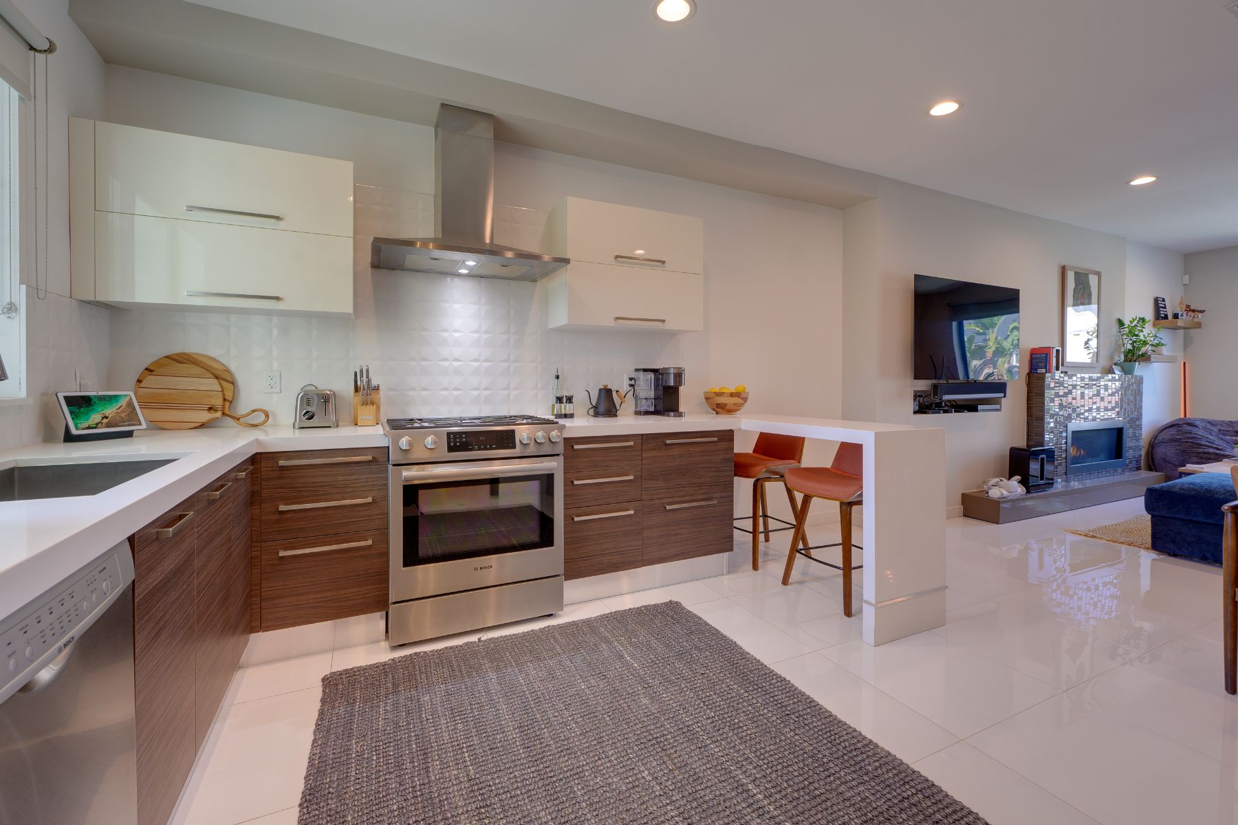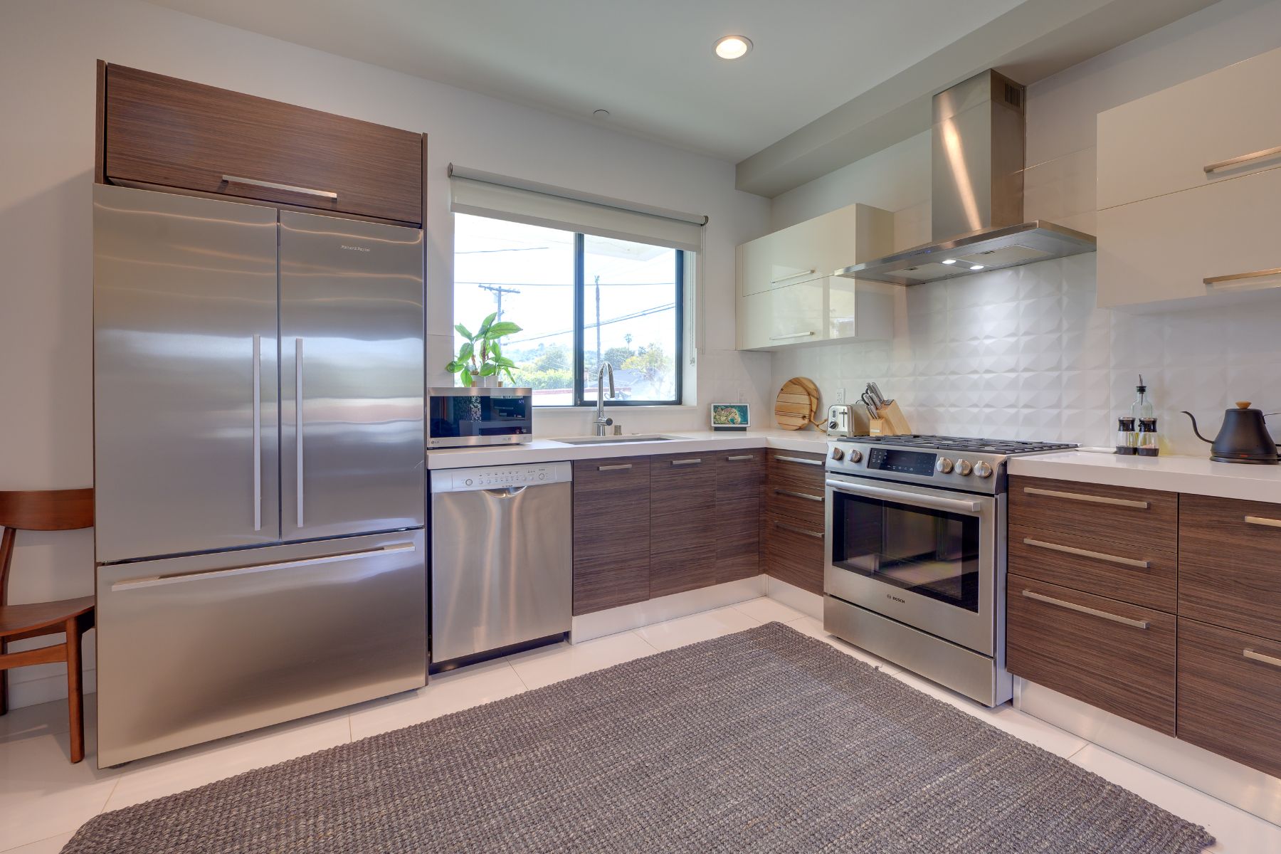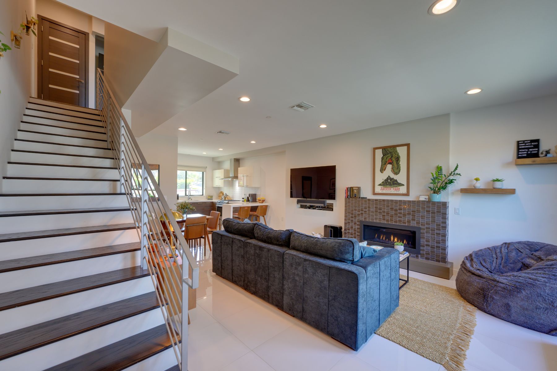 This sophisticated modern construction with designer details throughout is conveniently located in the heart of Sherman Oaks. This elegant open floor plan unit is an entertainer's dream with a dramatic living room and dining area with a showpiece fireplace, high ceilings and an abundance of natural light. The spacious kitchen features Bosch and Paykel appliances, Italian imported cabinets, and Caesarstone counters with eat-in island. Upstairs, the idyllic master suite is a serene retreat with large picture windows and patio with hillside views, spacious walk-in closet, and a spa-like bath with a dual sink vanity, glass enclosed shower, and free-standing tub. The guest bedroom has hillside views and boasts a designer en-suite bathroom. Also featured is in-unit laundry, wired LAN internet ports throughout, and two garage parking spaces with designated electric vehicle outlet. Located in the highly sought-after Sherman Oaks community just a short distance to Ventura Boulevard, Westfield mall, parks, shopping, restaurants and more.