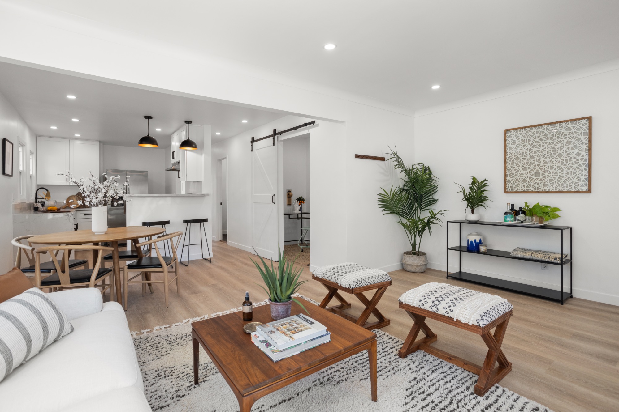 An exceptional opportunity to own a fully renovated side-by-side duplex in Hollywood's Melrose Hill neighborhood. Nestled at the end of a quiet cul-de-sac, this property offers a stunning view of the iconic Hollywood sign. Each unit mirrors the other and boasts one bedroom, one bathroom, plus a spacious bonus area adjacent to the living room, ideal for a laundry room, office, or extra storage space. The interiors offer luxury vinyl flooring, shaker-style kitchen cabinets, stainless steel appliances, glazed ceramic shower tiles, modern fixtures, and stacked washer/dryer sets. The property has a long driveway that can accommodate up to three cars for off-street parking. The converted single-car garage serves as a versatile flex space, perfect for a home office, gym or studio. Outside there is fully drought-resistant landscaping with succulents in the front, high-grade turf in the backyard, and Ficus trees for added privacy. Upgrades include new ABS sewer lines, copper plumbing, electrical wiring, panels, and windows. This fast-growing neighborhood is just over a mile from Larchmont Village and a short drive to Netflix and Paramount Studios. Great opportunity to own a duplex in a prime location.