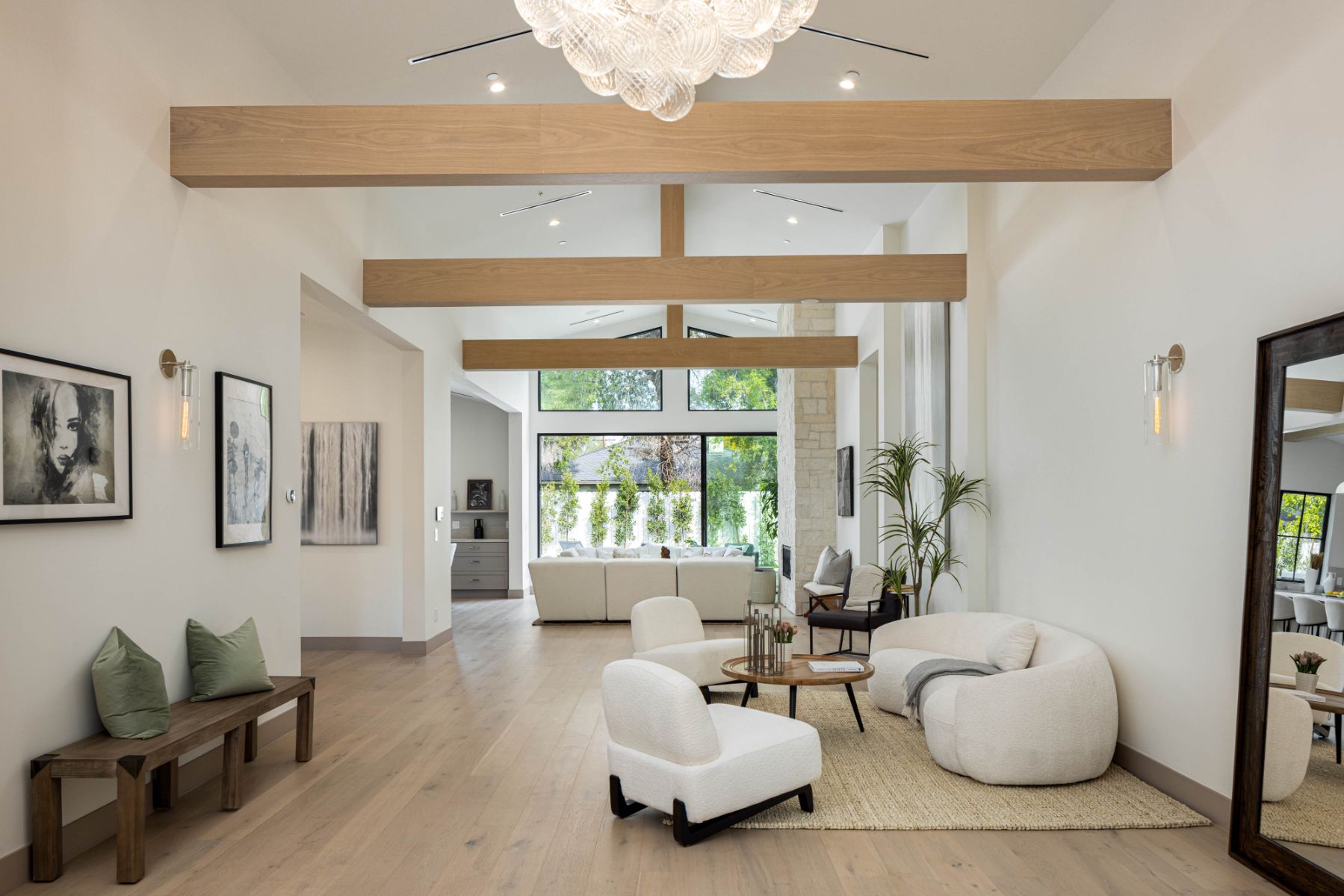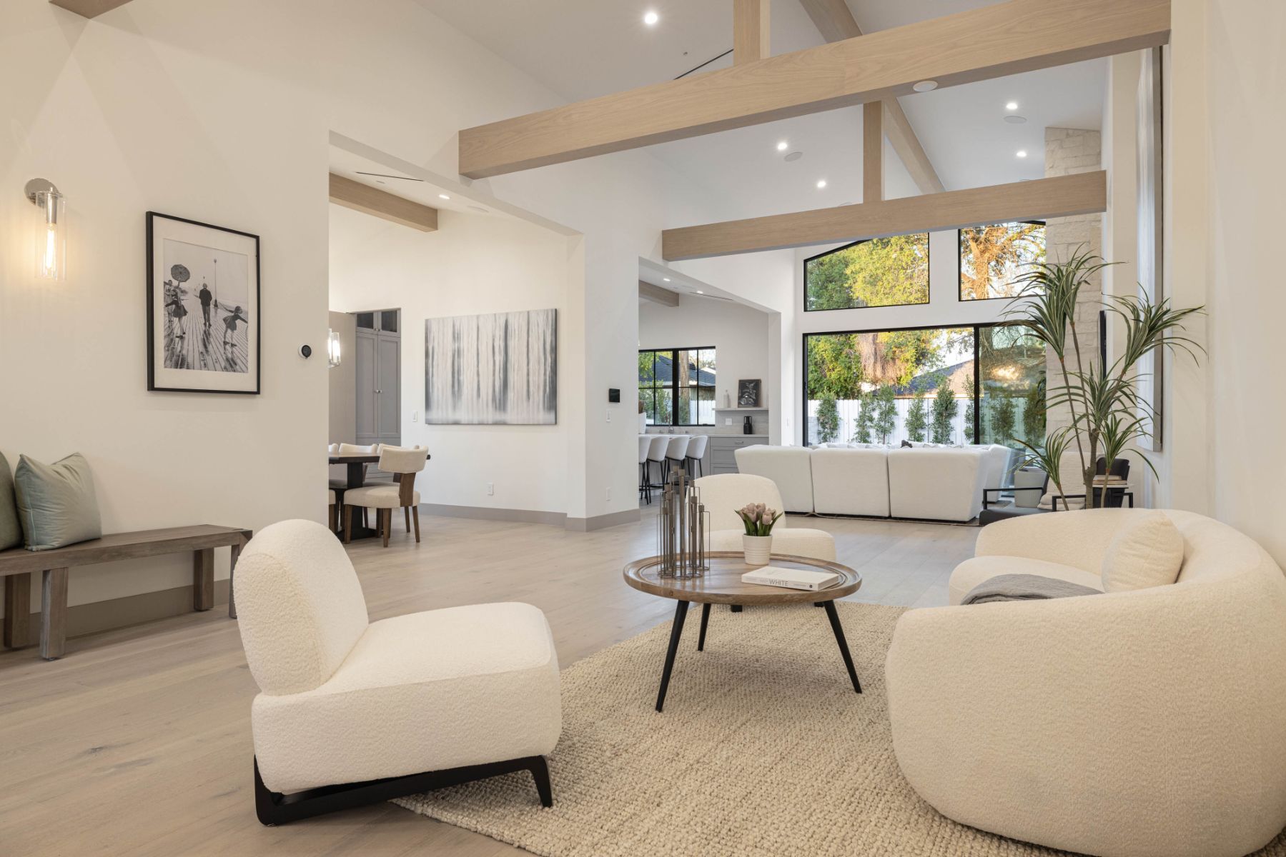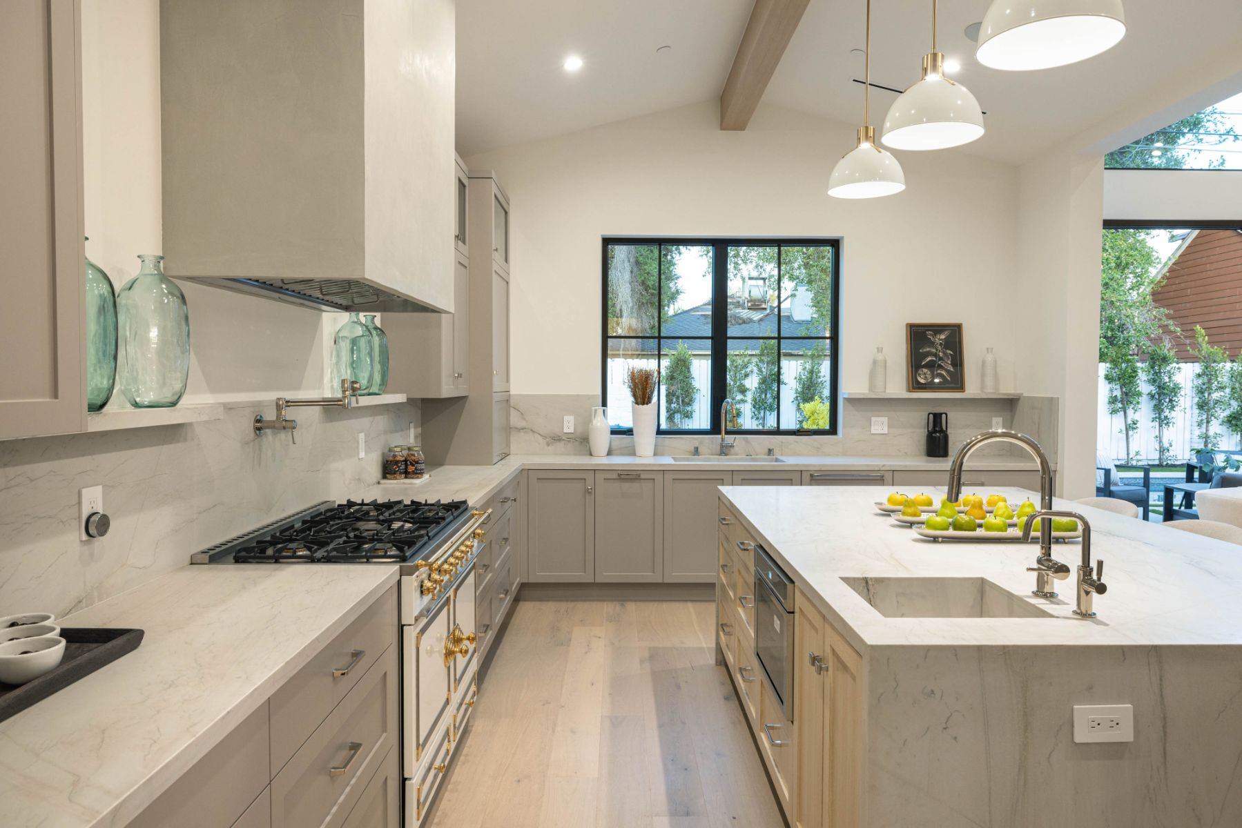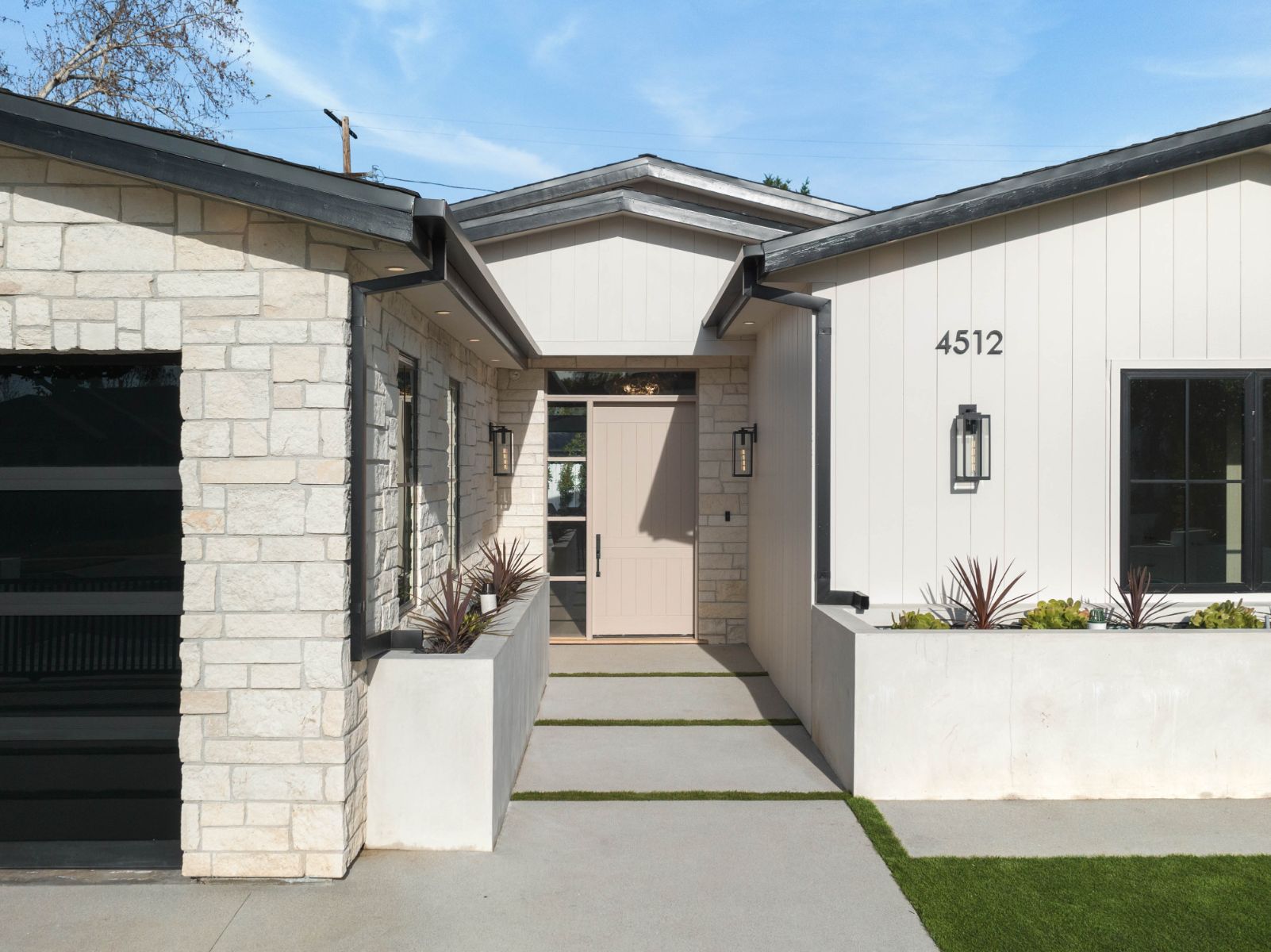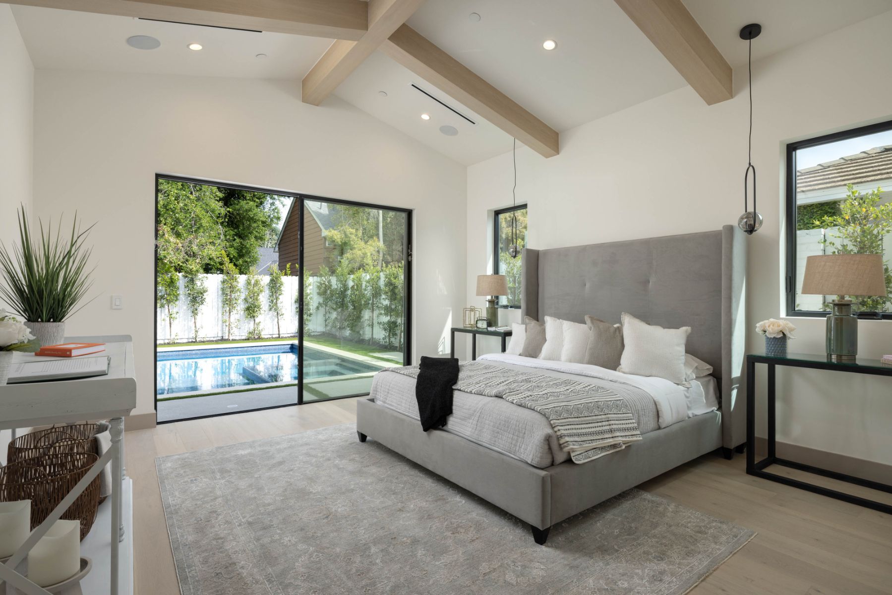 Simple & sophisticated 1 story new construction in the heart of Sherman Oaks located moments from Erewhon and Equinox and the newly built Sportmen's Lodge in Studio City. This modern farmhouse boasts 4 bedrooms and 4.5 bathrooms, nicely laid out on one level. A grand entry foyer serves as the main corridor to all rooms in the house. Inspired cooks will enjoy the gourmet Chefs kitchen with custom quartzite countertops, large center island, La Cornue Range and Thermador appliances. All bedrooms are en-suite with custom plaster ,tile, and natural stone finishes in the bathrooms. The expansive primary suite features luxurious appointments, including a spacious bath with soaker tub and shower for two and a large wardrobe. Gated and private front yard and the rear yard is perfect for entertaining and has a large pool and spa with an outdoor kitchen. House is equipped with solar panels and control 4 smart home system.