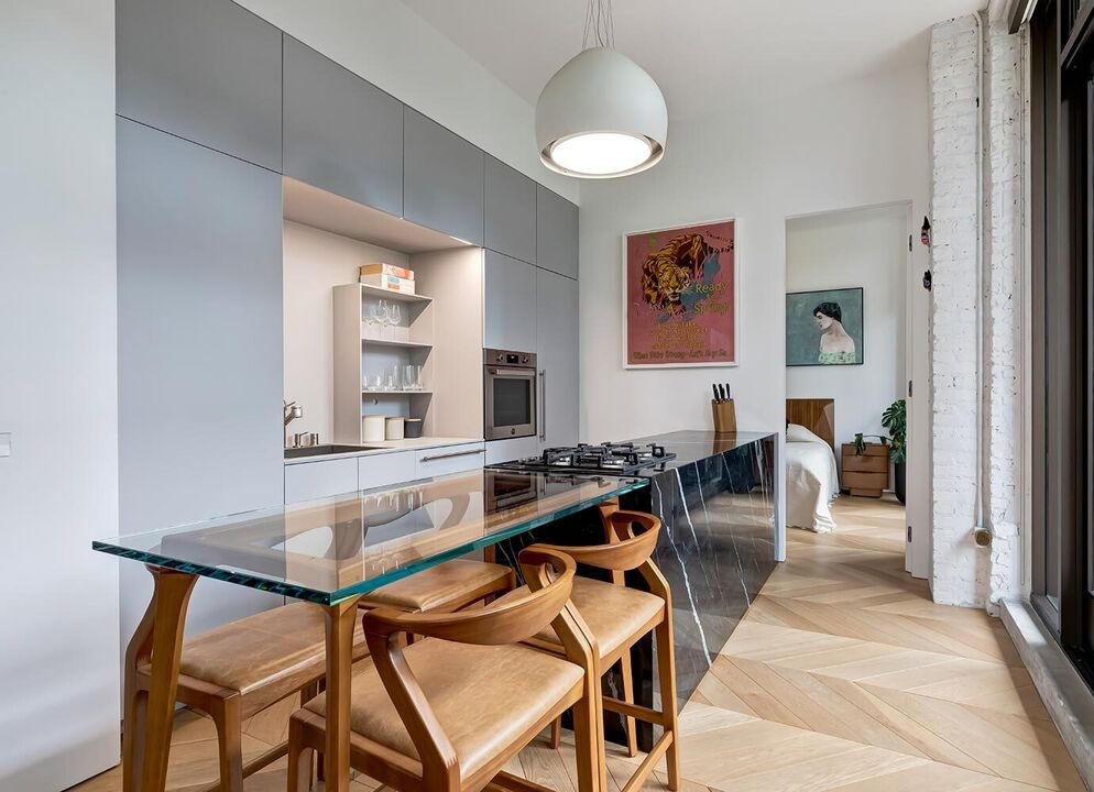 Located in the coveted Historic Core district of Downtown LA, this meticulously reimagined residence at The Rowan is a rare offering that effortlessly combines timeless architecture with sophisticated design. Step inside to soaring 12-foot ceilings, flooded with natural light through expansive floor-to-ceiling windows. The space is designed with stunning solid white oak chevron flooring, setting the tone for its sleek, minimalist aesthetic. The spacious living room flows into the chef's gourmet kitchen featuring a waterfall quartzite center island, premium stainless steel Bertazzoni appliances, a Sub-Zero refrigerator and wine fridge, and bespoke cabinetry throughout. The unit boasts a true one-bedroom layout and an abundance of wall space, ideal for art collectors and design enthusiasts alike. The interior aesthetic is minimalist and refined, featuring trimless flush Bocci outlets, discreet flush vents, and two custom walk-in closets that seamlessly integrate with the walls. One of its most coveted features is the rare, oversized private patio - perfect for relaxing or entertaining guests in style. Residents of The Rowan enjoy premium amenities including a 24-hour front desk and reception, a resident lounge with event space and Wi-Fi, hot and cold plunge pools, an outdoor BBQ and dining area, a private dog run, and exceptional property tax savings through the Mills Act program. Parking and extra storage are separately available for rent. With its prime location in the heart of Downtown LA, residents can also enjoy unparalleled access to the city's finest dining, shopping, entertainment, and cultural attractions. From exploring the nearby art galleries and trendy boutiques to experiencing the vibrant energy of downtown living, The Rowan offers a lifestyle unlike any other.