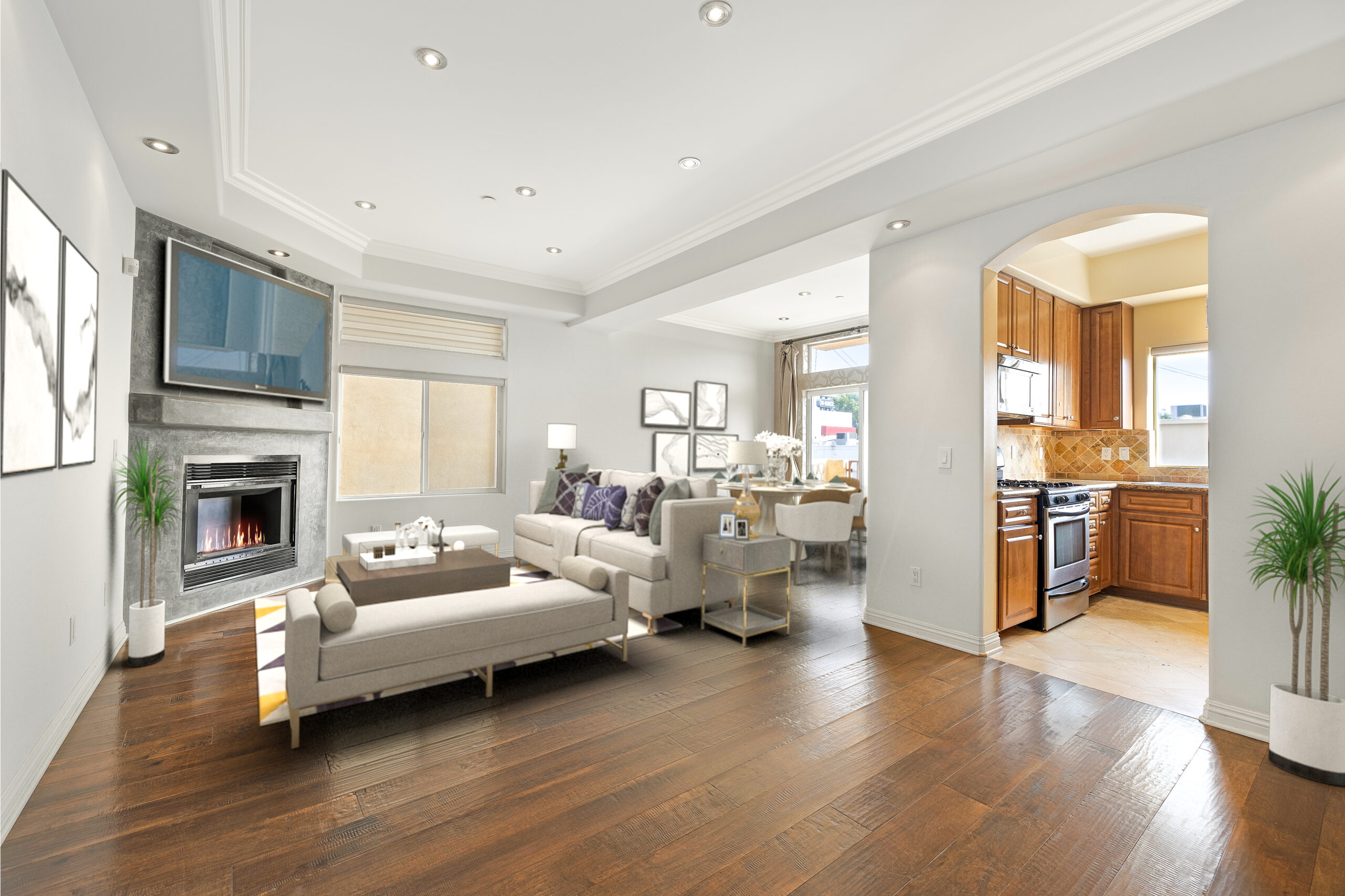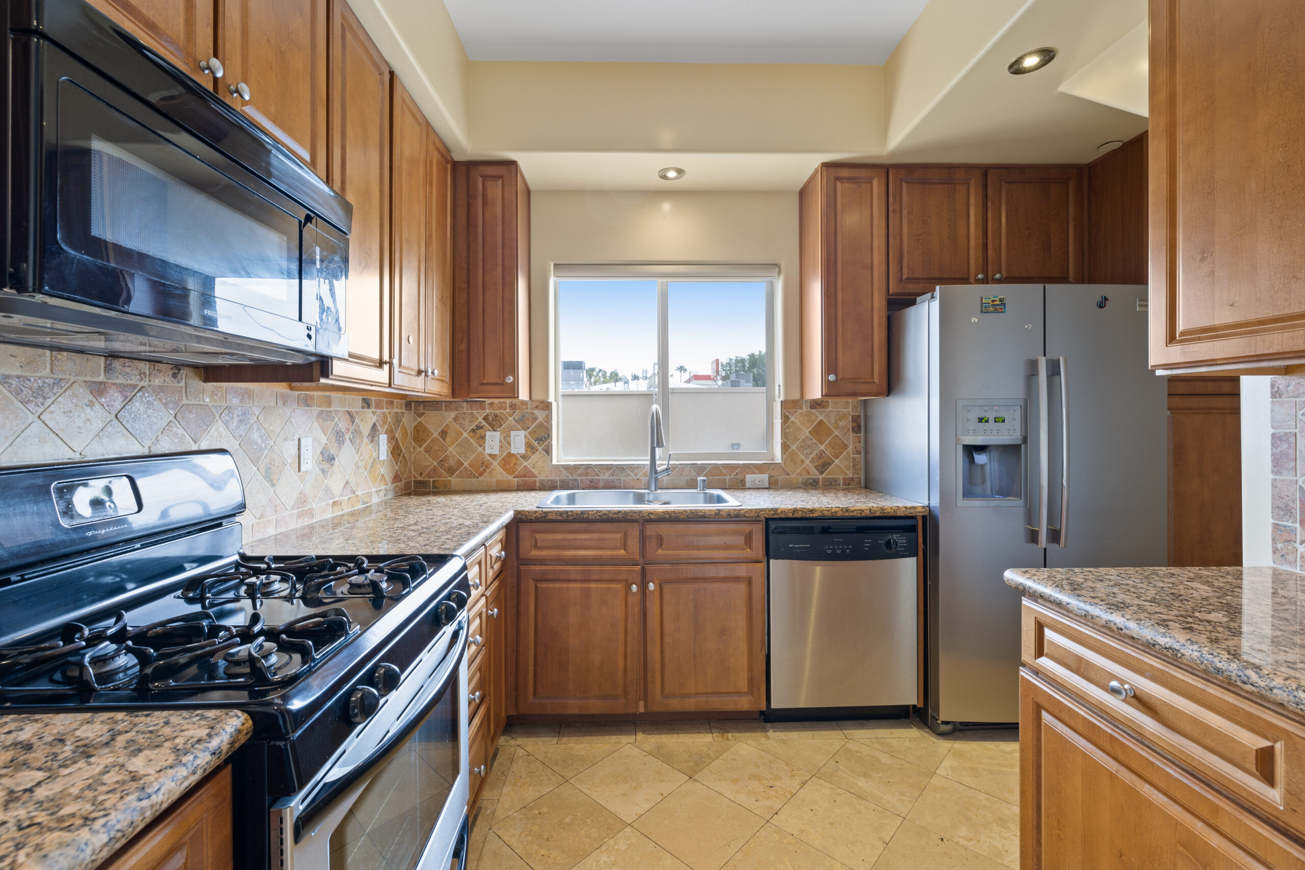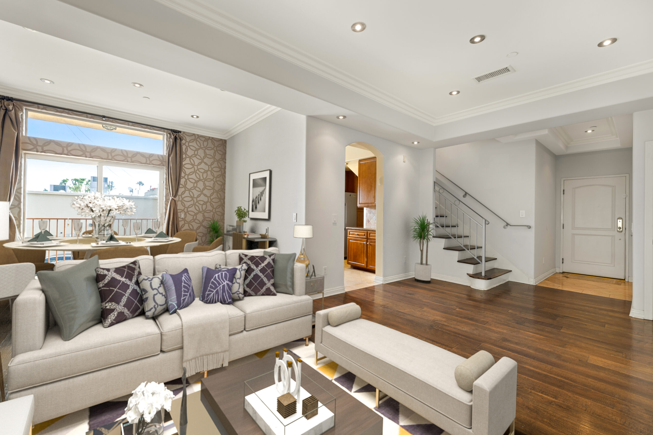 Located in the desirable neighborhood of Sherman Oaks, this three-story townhome offers 1,773 square feet of thoughtfully designed living space. The property includes three bedrooms and three bathrooms, making it well-suited for comfortable living. The kitchen features granite countertops and tile floors, blending functionality. Beautiful dark wood flooring runs throughout the home, while sculptured ceilings add architectural detail. The primary bedroom located on the second floor has a walk-in closet, a double sink bathroom, and a private balcony. The other bedrooms are located on the top floor with a separate entrance. A private two-car garage offers secure parking, and the convenience of an in-unit laundry room enhances everyday functionality. Located just a few blocks from Ventura Boulevard, this townhome is ideally situated near local dining, shopping, and entertainment options. The Sherman Oaks Galleria and Fashion Square Mall are also nearby, making this home an excellent choice for those seeking both convenience and a prime location.
