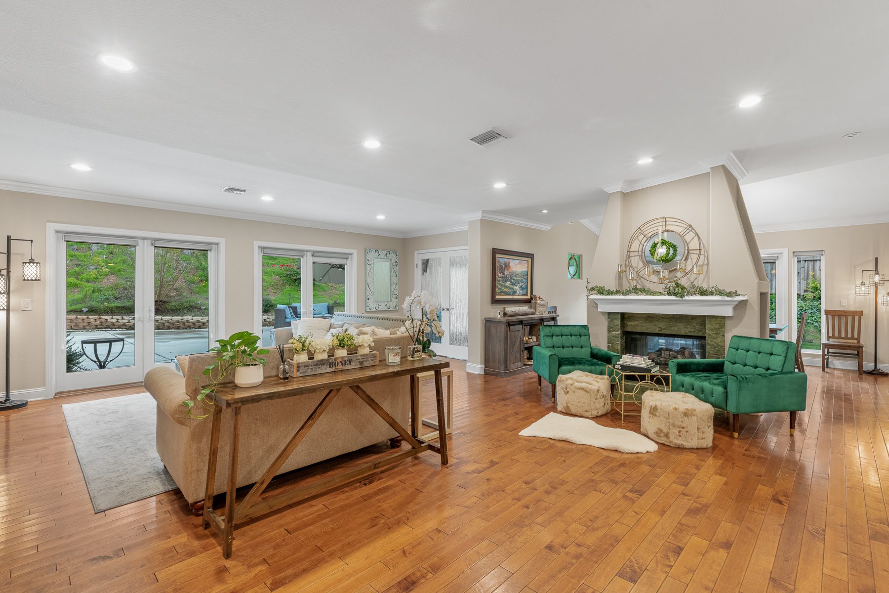 Elegant ranch style home located South of Ventura Blvd in a desirable area of coveted Encino. Serene neighborhood with nearby schools, convenient shopping, and dining just moments away. The home sits above the street giving it an amazing curb appeal, highlighted with beautiful landscaping, circular driveway, and stone pavers. Spacious, open concept floorpan with various areas to entertain, relax, and enjoy the magical grounds. Property boasts a dramatic see through fireplace to be enjoyed by both the dining and family room at the same time! There is a bonus room for a home office, spacious kitchen with beautiful granite, stainless steel appliances, and a separate laundry room. The backyard, features a spacious concrete pad, an ideal area to host outdoor events and enjoy our beautiful Southern California days and evenings. Property also offers a detached two-car garage with the possibility of for an ADU conversion.