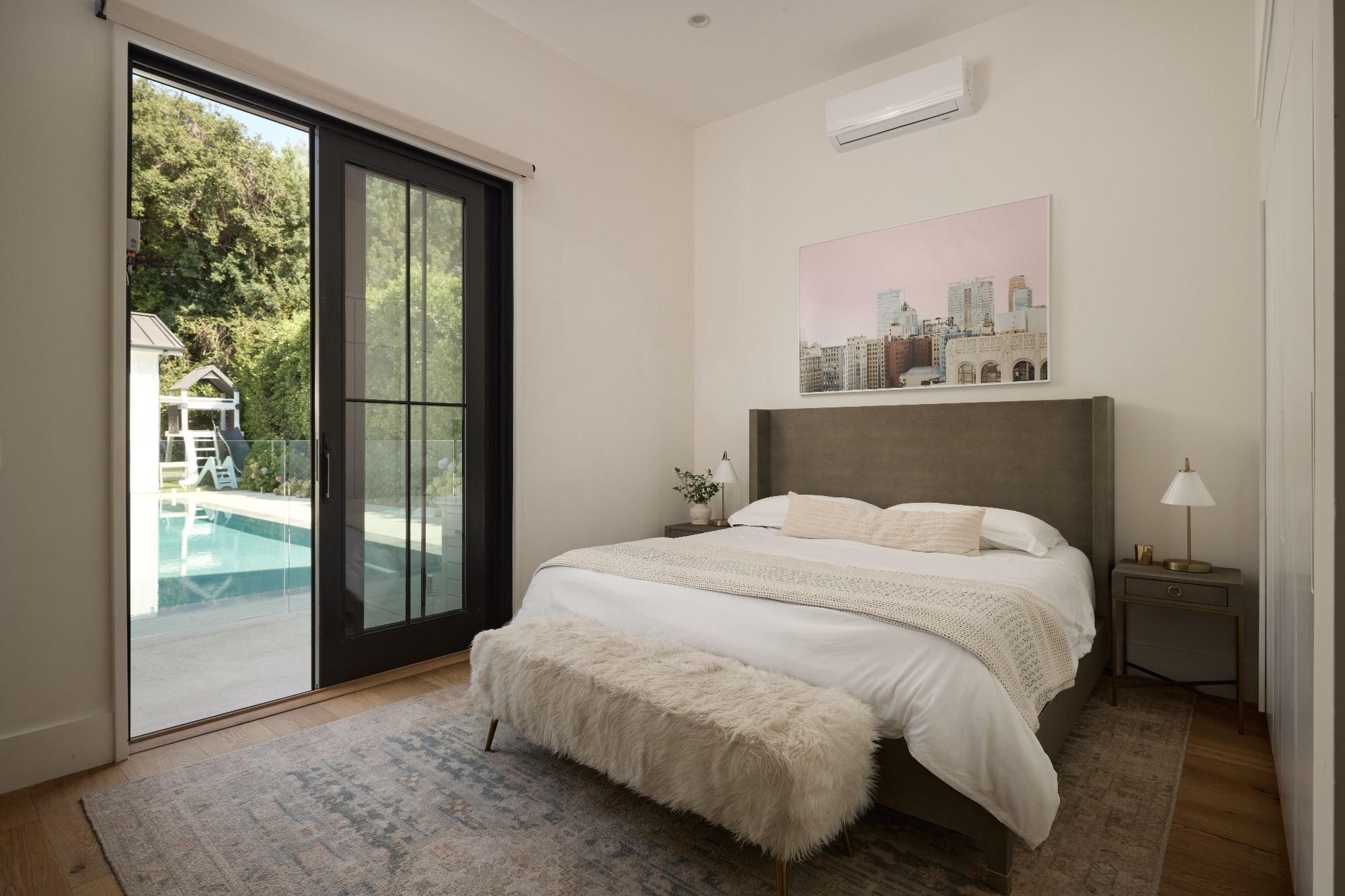 Behind private gates in one of Encino's most coveted enclaves, 4634 White Oak Avenue is a custom-designed estate blending grand scale with refined detail. A chandelier-crowned foyer and sweeping staircase introduce interiors designed for both statement and comfort. The chef's kitchen, anchored by dual islands, bespoke cabinetry, and designer appliances, flows to formal and casual living spaces, each opening through pocketing glass doors to a resort-worthy backyard. Here, lush landscaping frames a zero-edge pool and spa, sports court, outdoor kitchen, and multiple dining terraces. A theater, guest suite, and office complete the main level, while the upper floor reveals a primary sanctuary with fireplace, private balcony, dual walk-in closets, and a spa-like bath. Additional ensuite bedrooms, smart-home technology, a three-car garage, and a fully finished two-bedroom guest house with kitchenette make this estate as functional as it is an expression of refined California living. GUEST HOUSE: includes kitchen, full bathroom, dining room, 2 office/bedrooms, and large bonus play area.