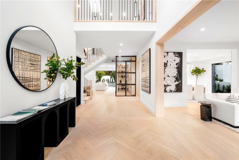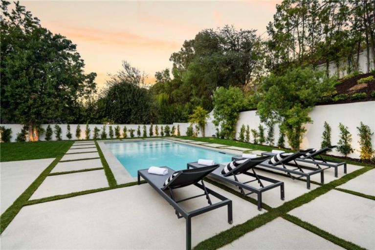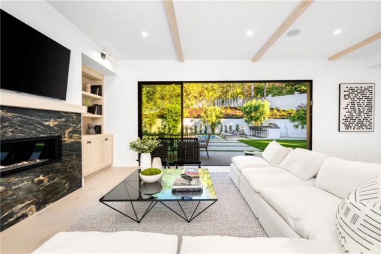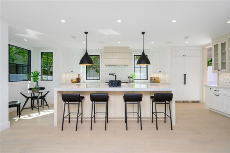Welcome to this sensational newly developed jewel situated in prime Encino! Private gates and well manicured landscaping with towering palm trees greet you into this stunning residence affording over 14,700 sqft of fine luxury living. Upon entrance, soaring ceilings greet you into a sweeping floor plan with beautiful oakwood floors that lead you through the chic formal living room with fireplace and lovely dining room with wall paneling, dazzling center chandelier, and french doors granting both gleaming natural light to fill the room and outdoor access. The well appointed chef s kitchen features state of the art appliances, charming breakfast nook, massive center island with breakfast counter, wet bar, and abundant cabinet space. Adjacent lies the expansive family room with custom built-in cabinets, elegant fireplace, and large glass sliding doors providing the quintessential indoor outdoor California living. Ideal for entertaining, the backyard offers a glistening pool & spa, lush field of grass, built-in BBQ with bar counter, and patio perfect for lounging and al fresco dining. Curated for top tier relaxation, the romantic master retreat is tucked away on the second floor offering french doors, beamed ceilings, fireplace, private balcony overlooking the backyard, his and her walk-in closets, and a gorgeous master bath with dual sink vanity, separate water closet, walk-in shower, and soaking tub. Additional amenities include an attached 3 car garage, mudroom, oversized wine cellar, home theater, 4 additional ensuite bedrooms, security system, and so much more! Located South of the Blvd, and moments from Encino s hottest shops and restaurants, this home is the perfect place for you and your loved ones to create many cherished memories!